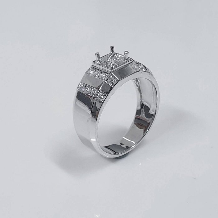 全新品 天然鑽石男戒空台 適用0.50~0.80克拉 線條簡單款 14K金戒台 配鑽約0.46ct 國際圍15.5號 面寬1cm 重2.08錢 精美盒裝 店保卡