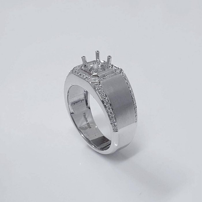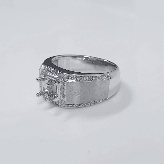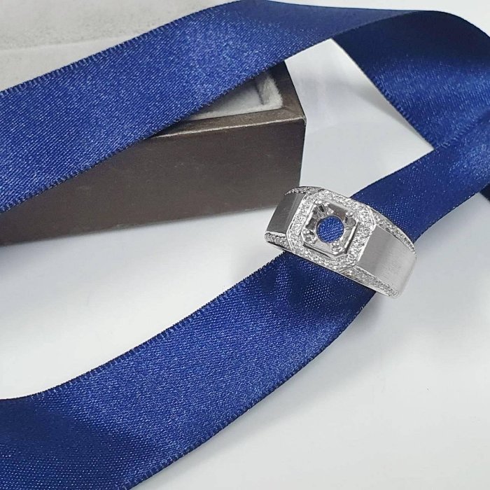 14K金戒台 / 國際圍16.5號 / 面寬1.1cm / 重2.6錢 / 配鑽約0.32ct |