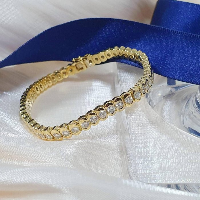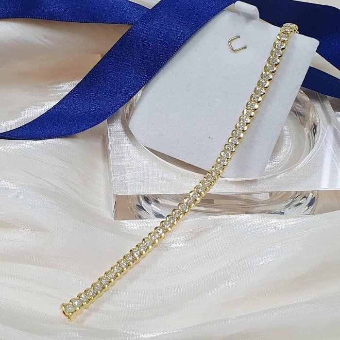 全新品 天然鑽石手鍊 18K金鑽帶 顯白奢華款 鑽石52顆共5.03ct 750K金台 長16.5cm 寬0.5cm 總重6.18錢 附精美盒裝 店保卡