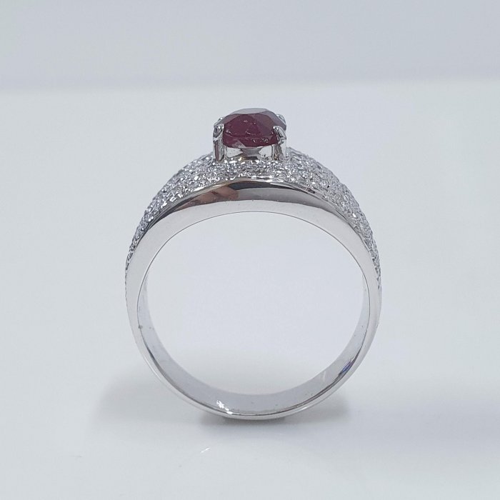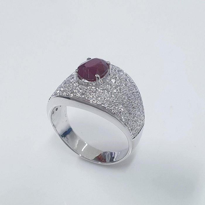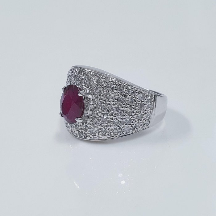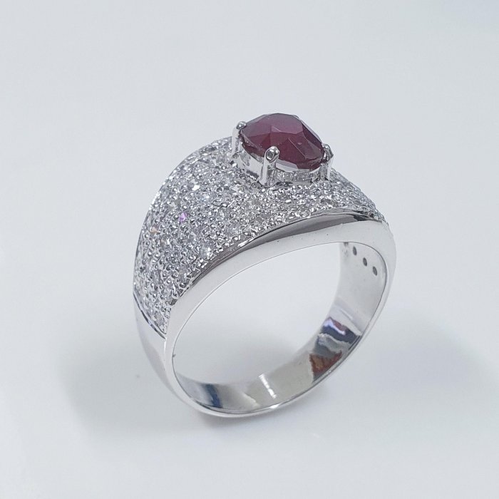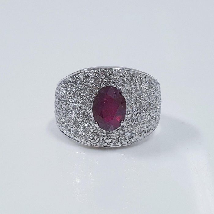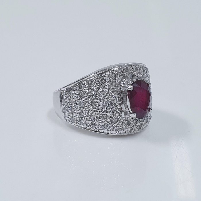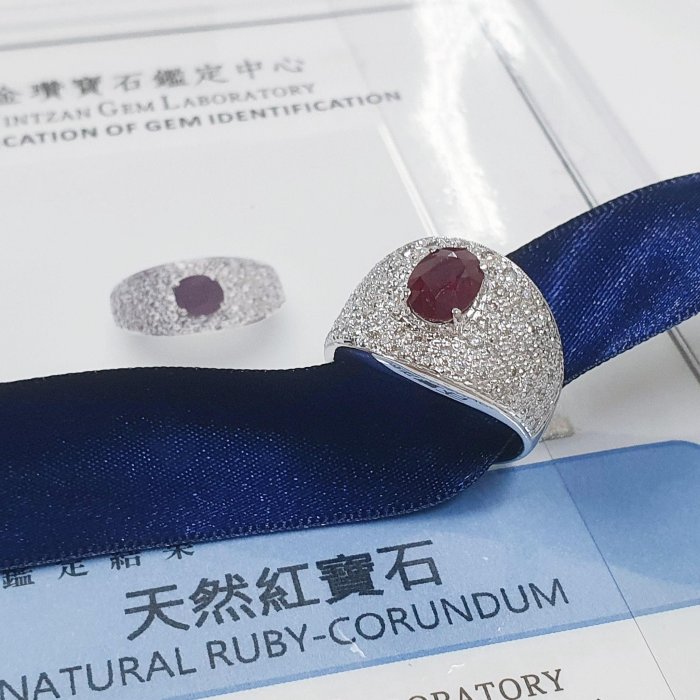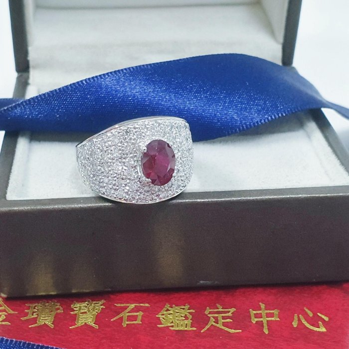 天然紅寶石戒指 豪華造型 紅寶2.01克拉 585K金鑽石台 配鑽約0.60ct 國際圍17.5號 面寬1.5cm 總重3.06錢 附證書 精美盒裝 店保卡