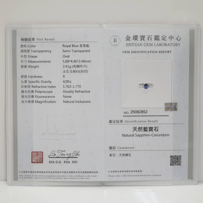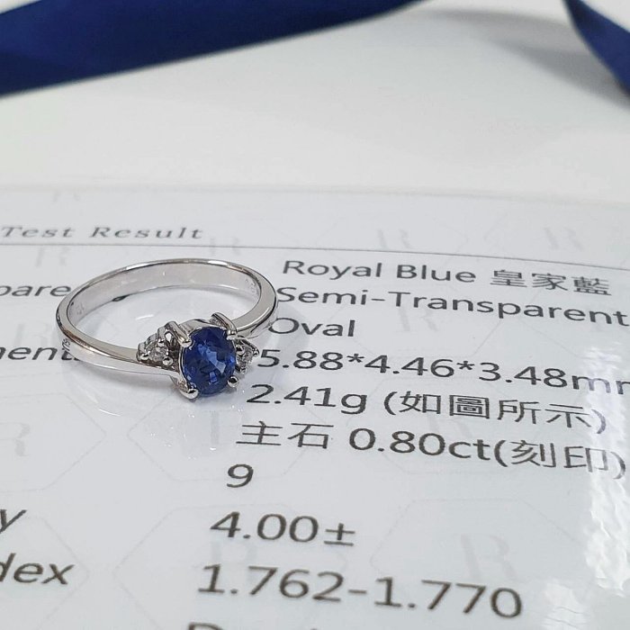 天然藍寶石戒指 Vivid Blue皇家藍 顏色飽滿 主石80分 18K金戒台 國際圍11號 面寬0.6cm 0.66錢 證書 精美盒裝 店保卡