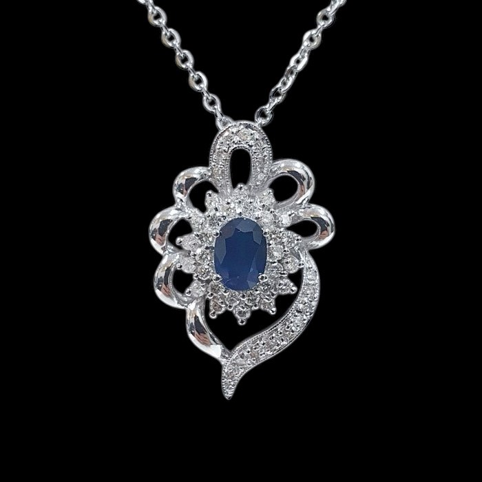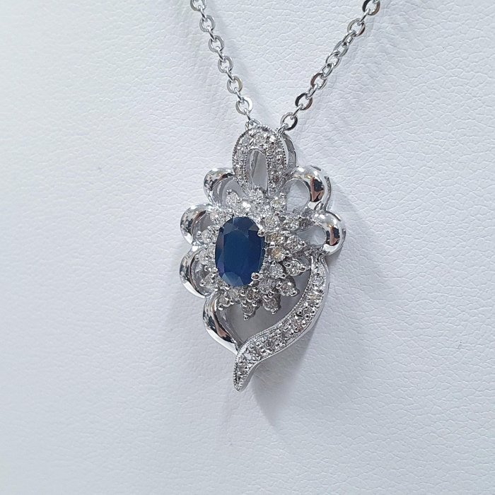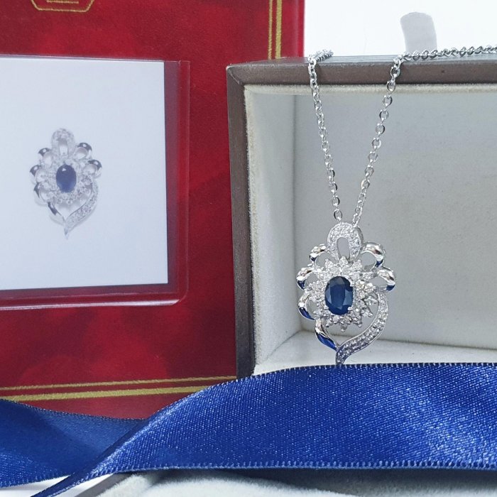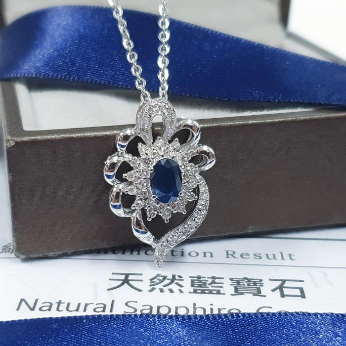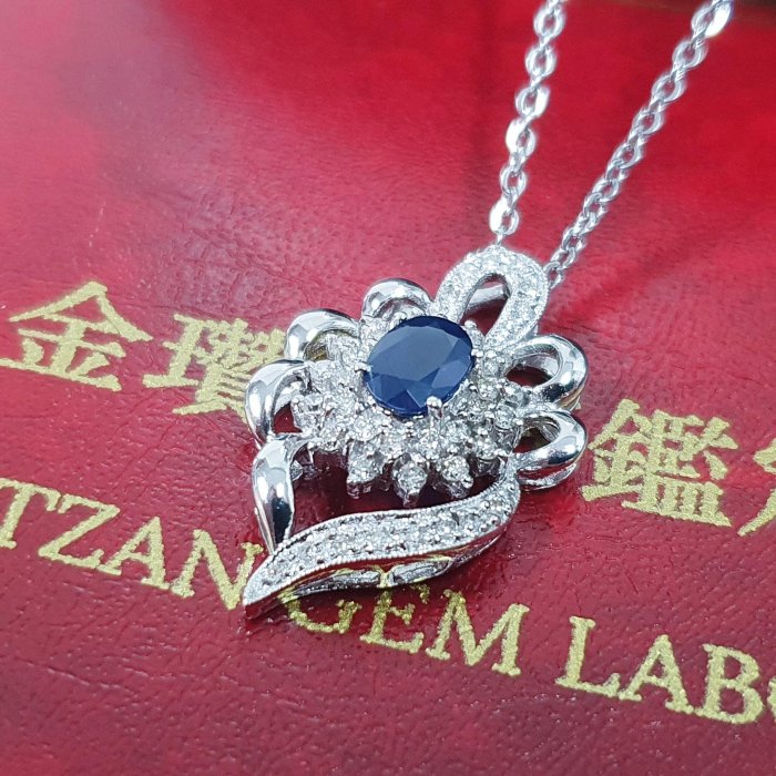 天然藍寶石項鍊 顏色飽滿 藍寶1.03克拉 585K金墜台 配鑽約0.66ct 墜2.75x1.8mm 附鋼鍊 證書 精美盒裝
