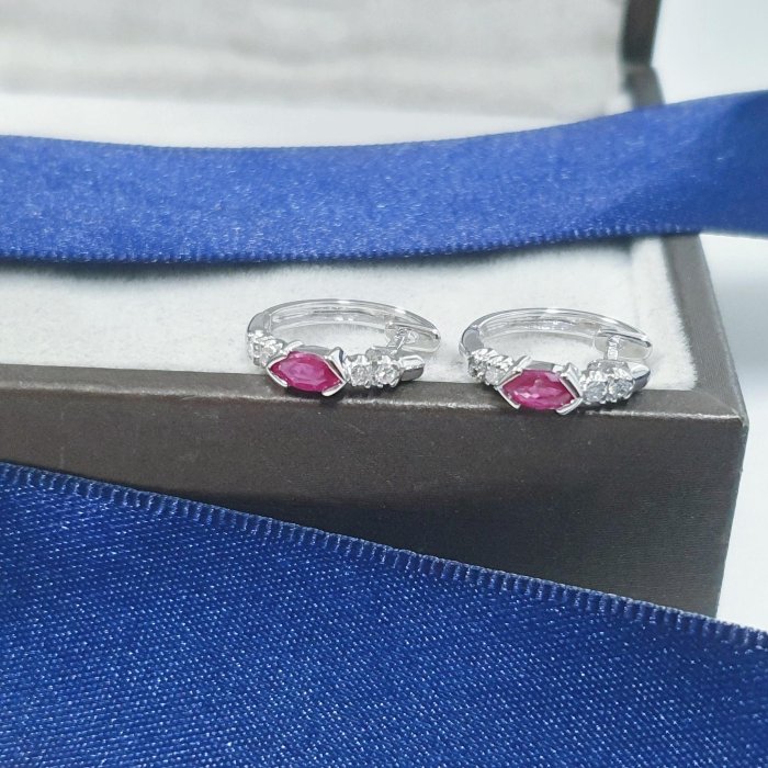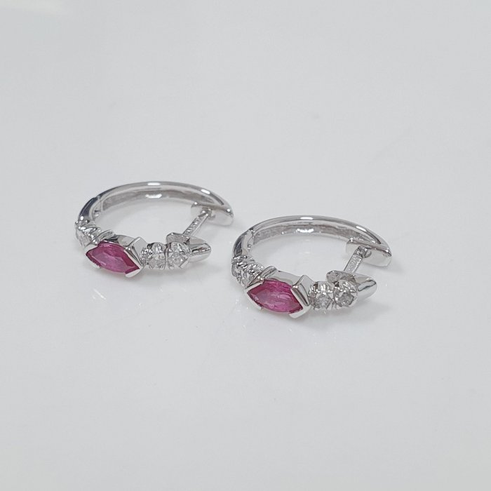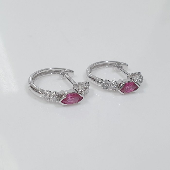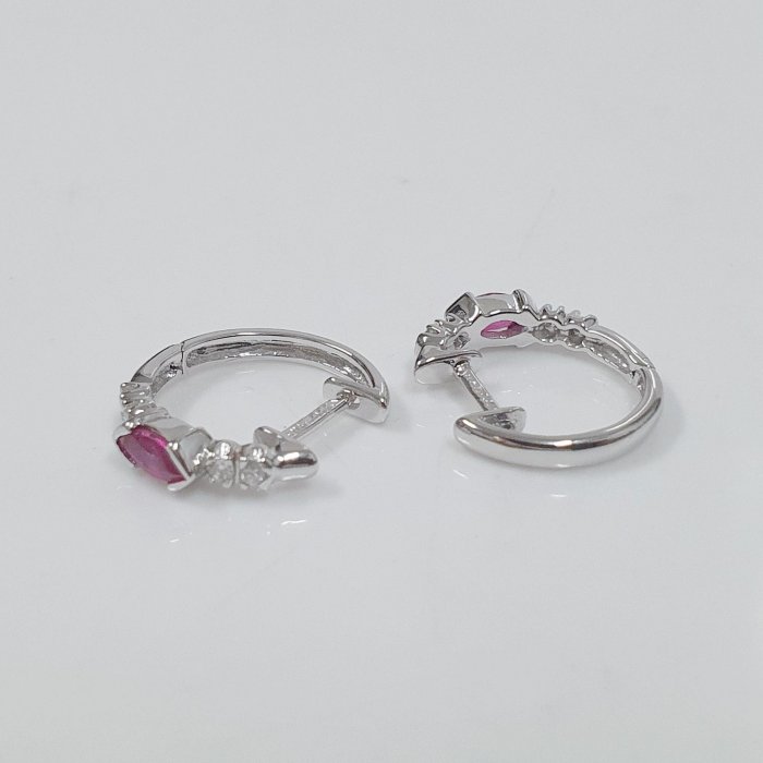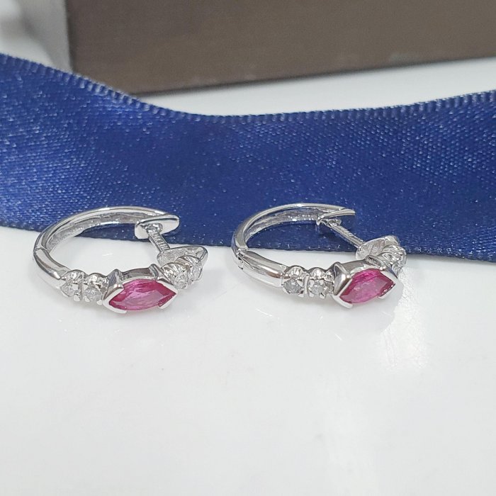 天然紅寶石耳環 優雅造型 紅寶各23分 配鑽0.05ct 白K金材質 寬0.32cm 總重共0.67錢 附精美盒裝 店保卡