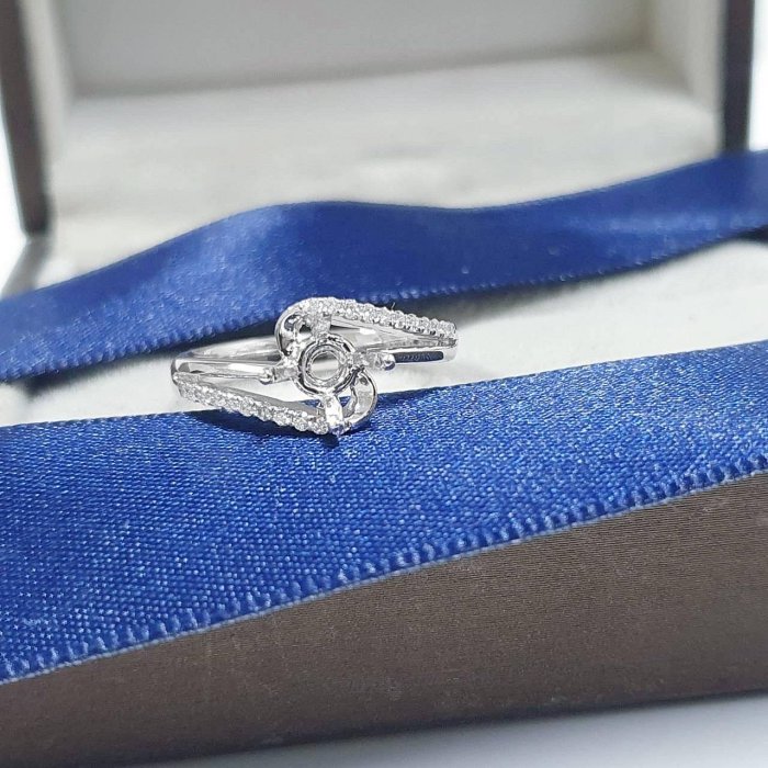 款式: 天然鑽石女戒空台 線條修飾排鑽造型