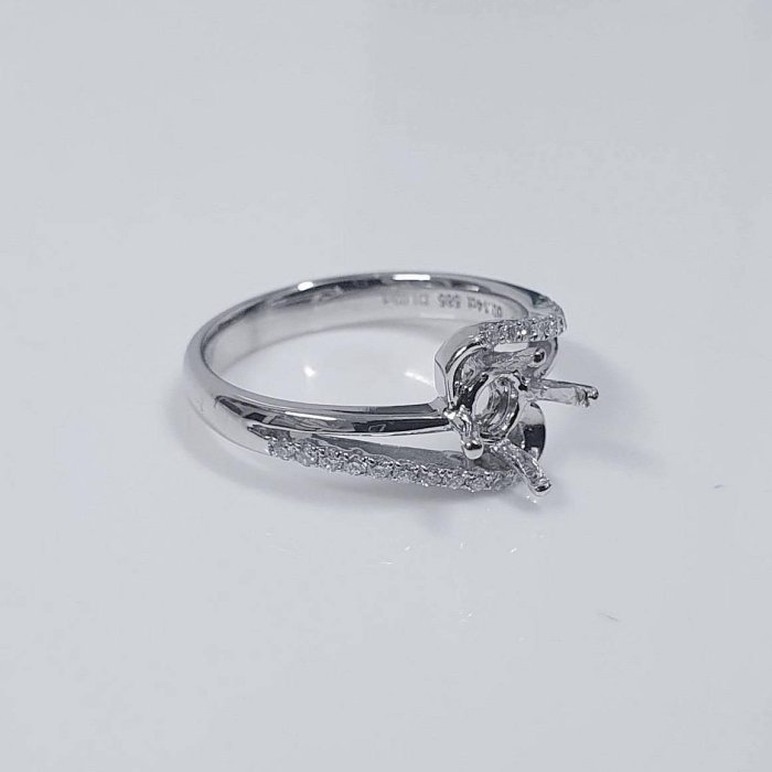 全新品 天然鑽石女戒空台 適用1~1.3克拉 線條修飾排鑽 14K金戒台 配鑽約0.14ct 國際圍11.5號 面寬0.9cm 重0.88錢 精美盒裝 店保卡