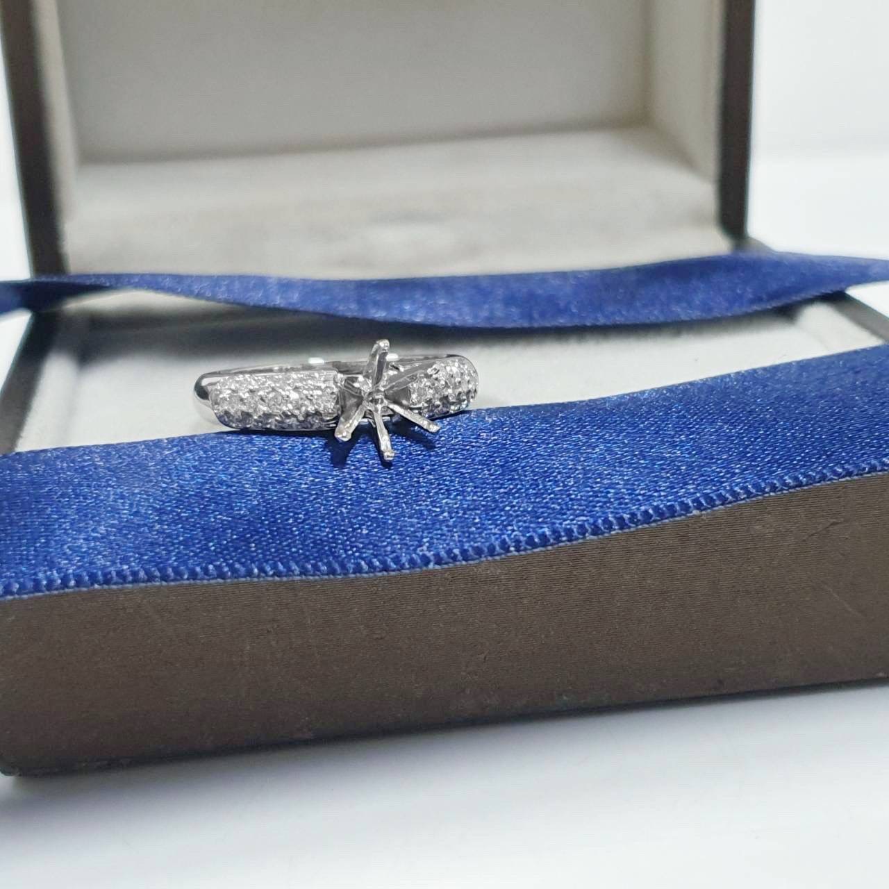 全新品 天然鑽石女戒空台 適用0.8~1.2克拉 豪華滿鑽 18K金戒台 配鑽約0.26ct 國際圍11號 面寬0.8cm 重1.1錢 精美盒裝 店保卡
