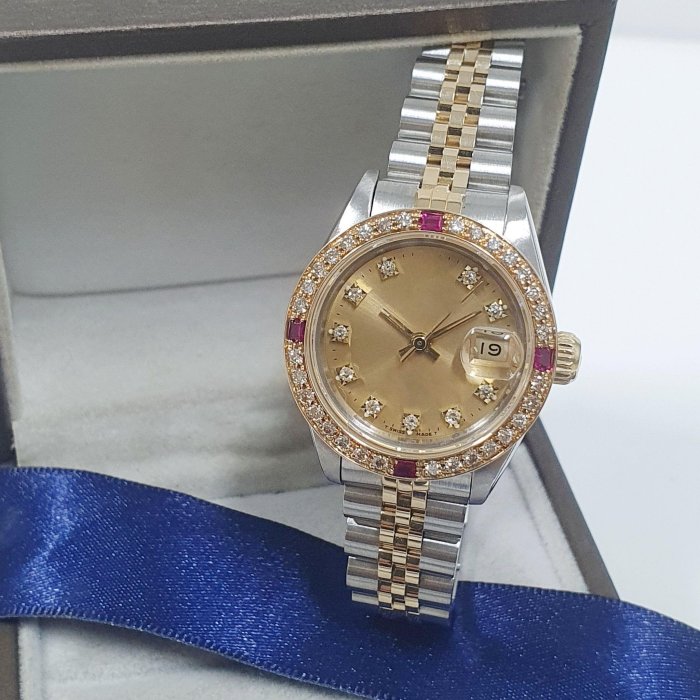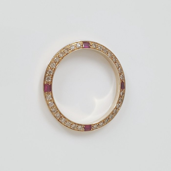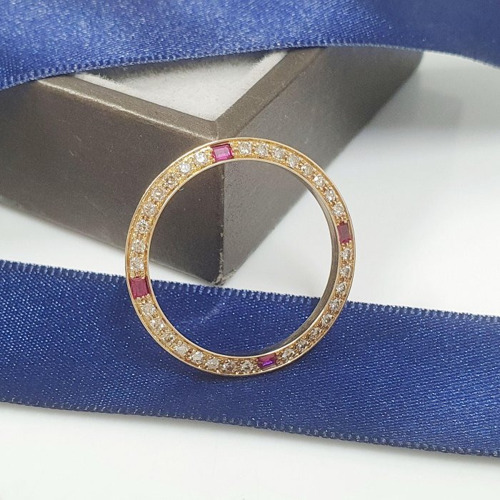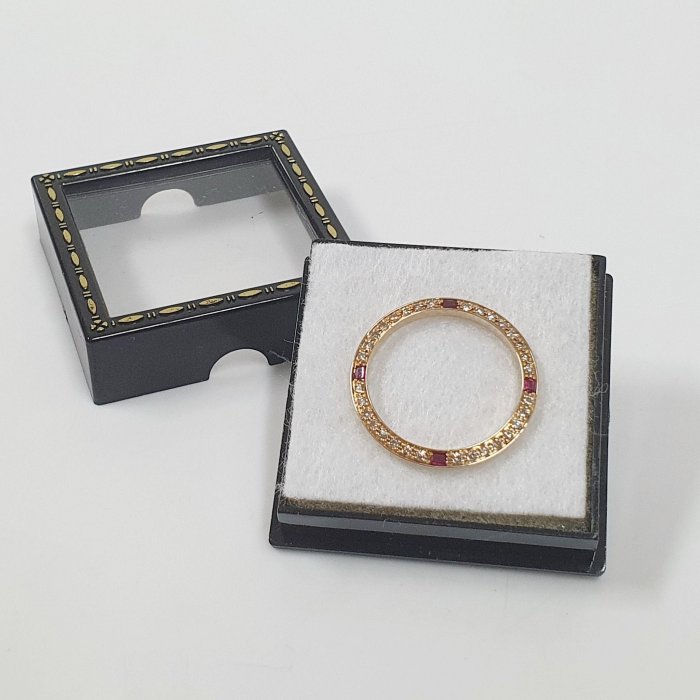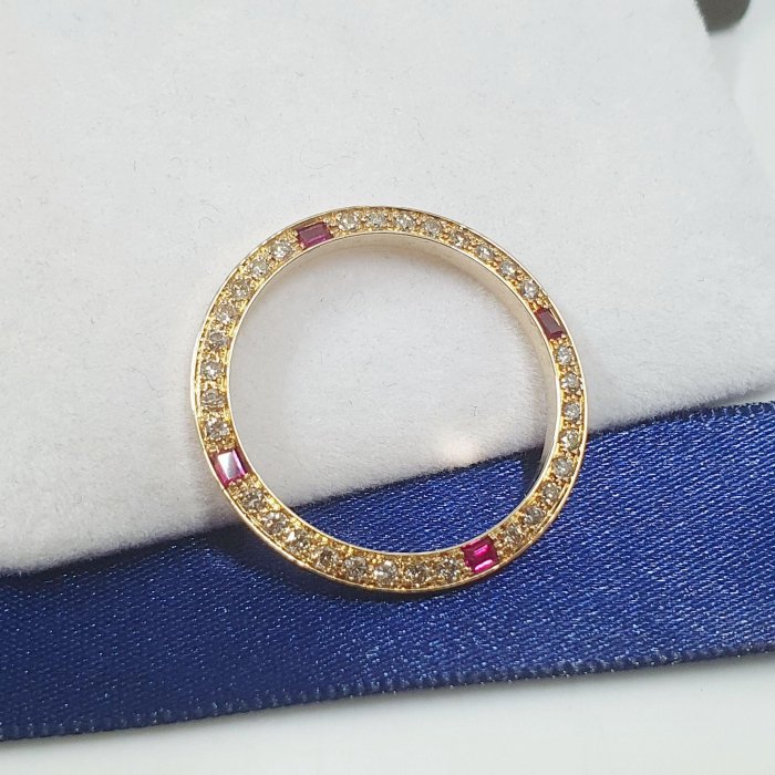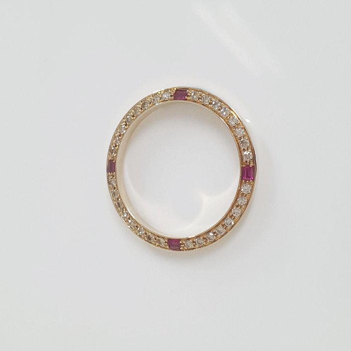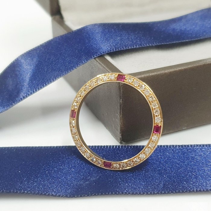 16233 18238 男用 精鑲天然紅寶石鑽圈 鑽石32顆 每顆2分 共約0.64克拉 黃K金材質 總重0.89錢 精美盒裝 店保卡