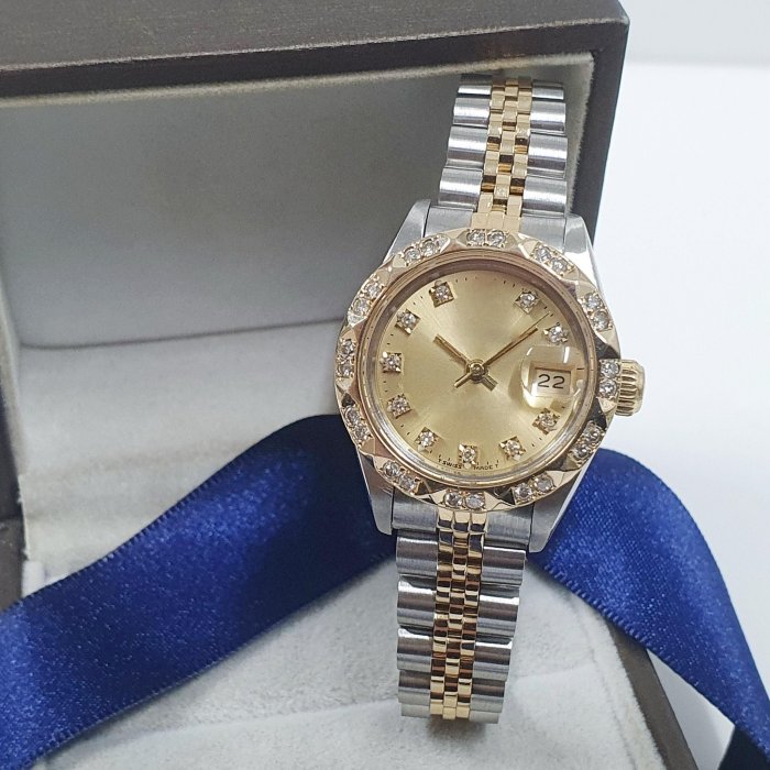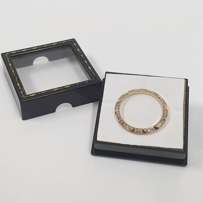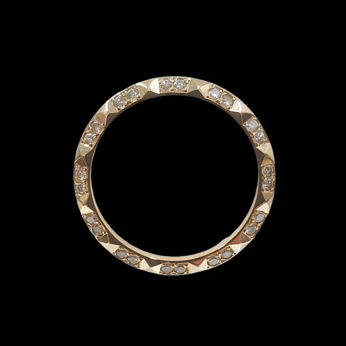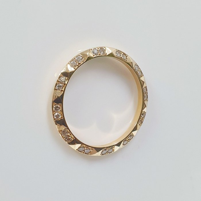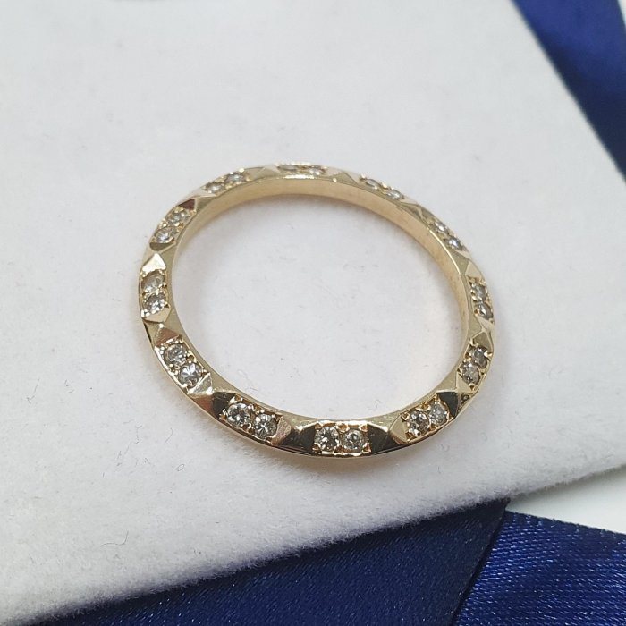 69178 69173 女用 精鑲天然金字塔鑽圈 鑽石24顆 每顆2分 共約0.48克拉 黃K金材質 總重0.9錢 精美盒裝 店保卡