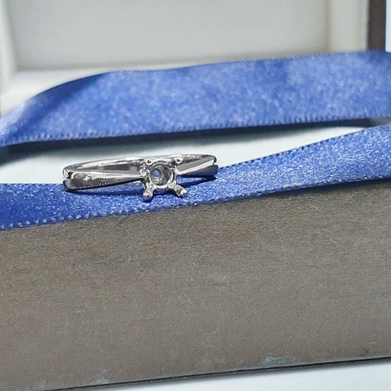 全新品 天然鑽石女戒空台 適用0.30~0.50克拉 曲線四爪 18K金戒台 國際圍9號 面寬0.45cm 重0.67錢 精美盒裝 店保卡