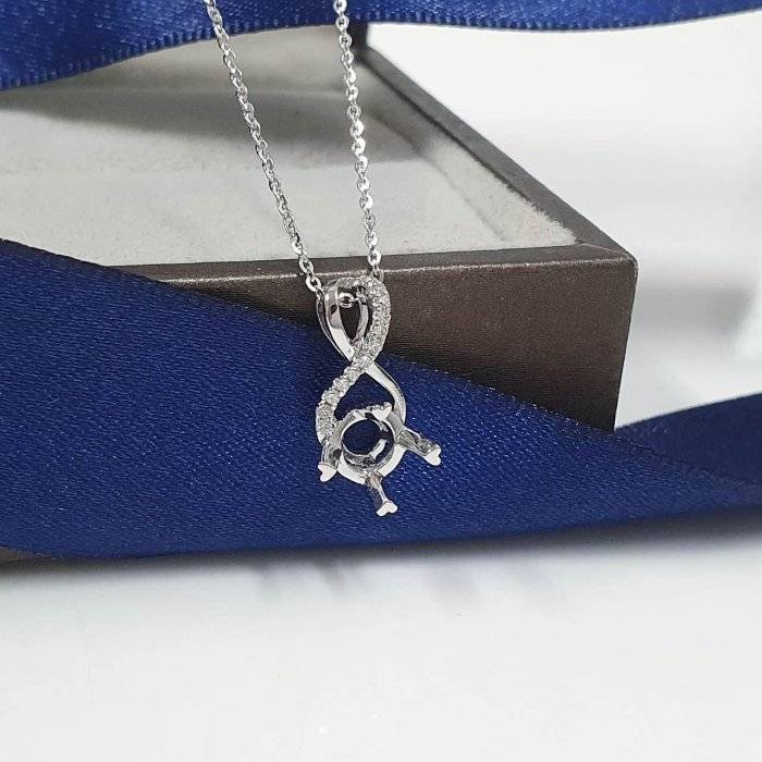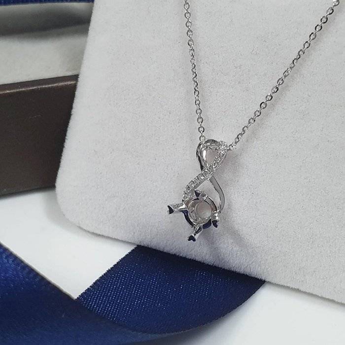 全新品 天然墜飾空台 適用1~1.3克拉 簡單修飾款 有色寶石皆可使用 750K金墜台 配鑽約0.07ct 墜1.65x0.8cm 重0.32錢 不含鍊 精美盒裝 店保卡