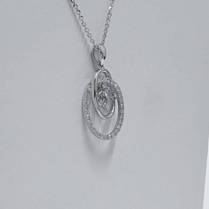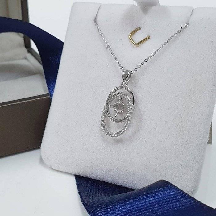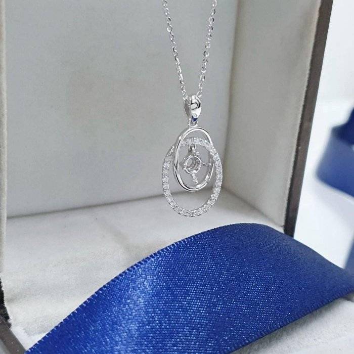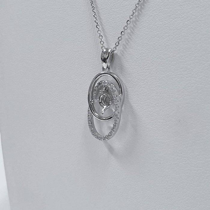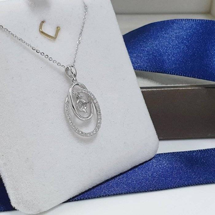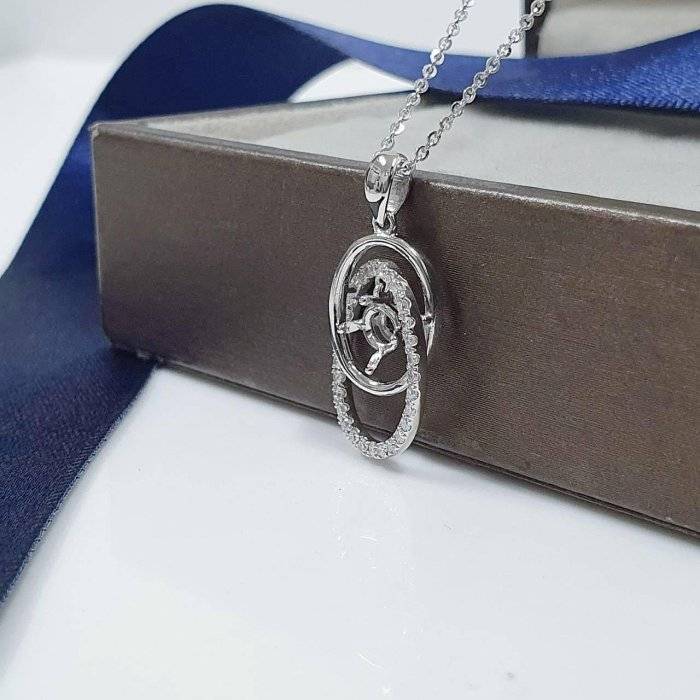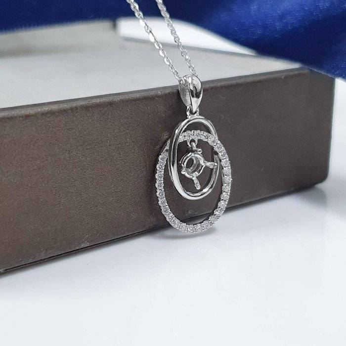 全新品 天然墜飾空台 適用50~80分 雙環橢圓造型 有色寶石皆可使用 750K金墜台 墜2.2x1.2cm 配鑽約0.28ct 重0.48錢 不含鍊 精美盒裝 店保卡