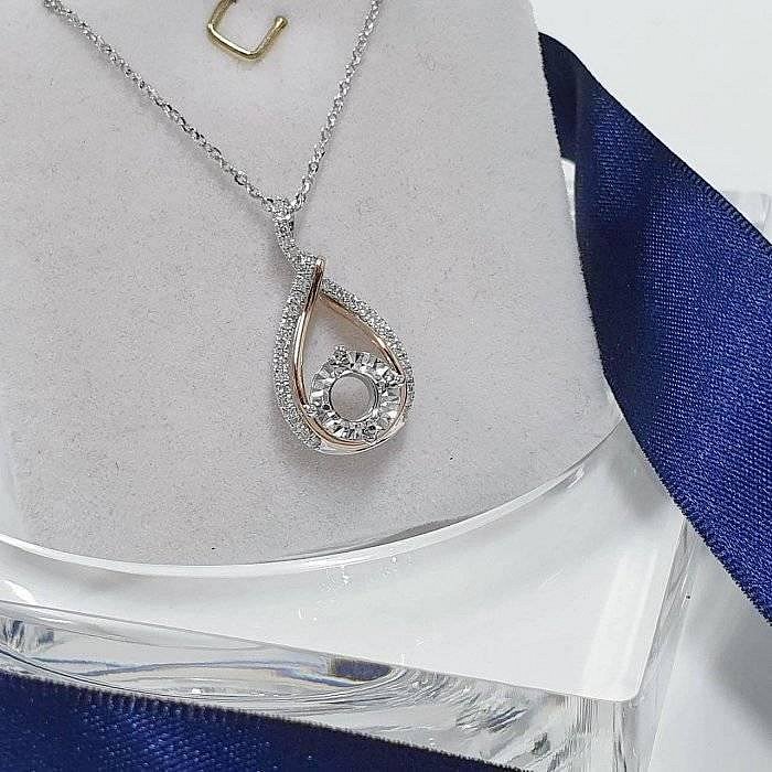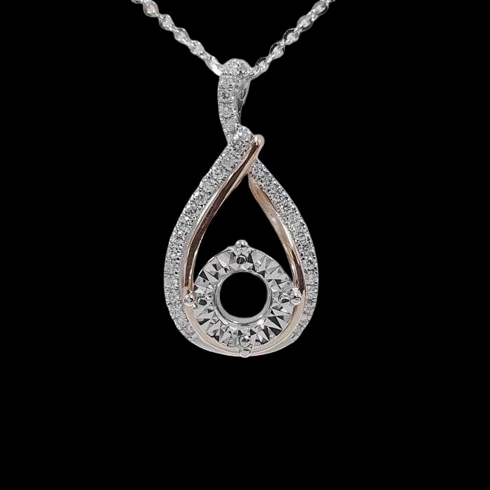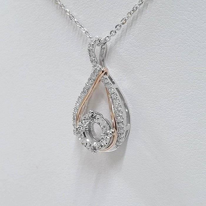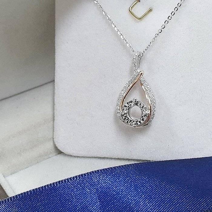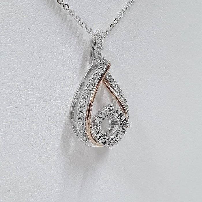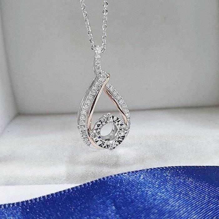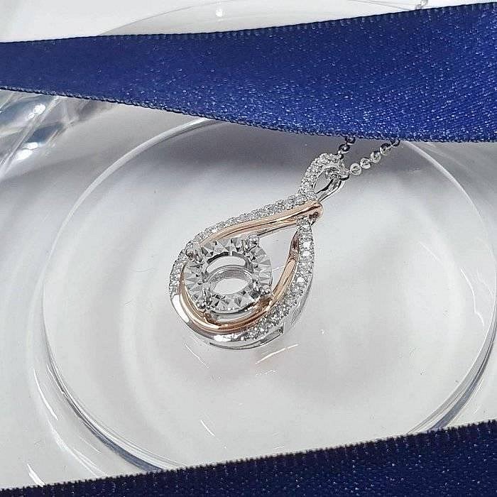 全新品 天然墜飾空台 1~1.3克拉 雙色水滴造型 放大台 有色寶石皆可使用 750K 白&玫瑰金墜台 配鑽約0.25ct 墜2.5x1.3cm 重0.86錢 不含鍊 精美盒裝 店保卡