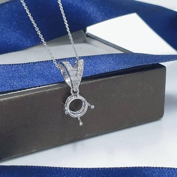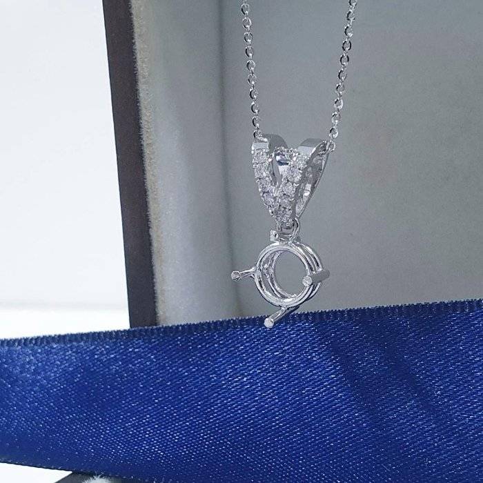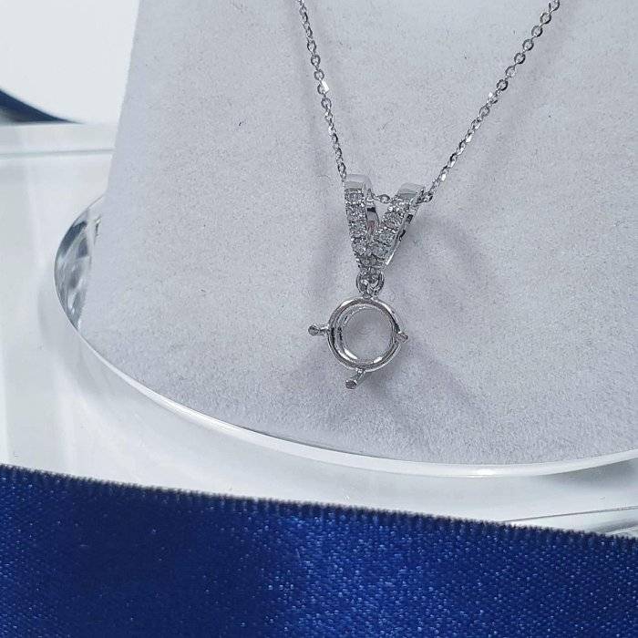 全新品 天然鑽石墜飾空台 適用2克拉 V型4爪 有色寶石皆可使用 750K金墜台 配鑽0.15ct 墜1.9x1cm 重0.81錢 不含鍊 精美盒裝 店保卡