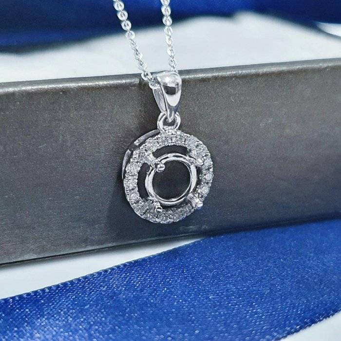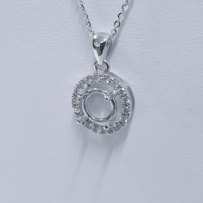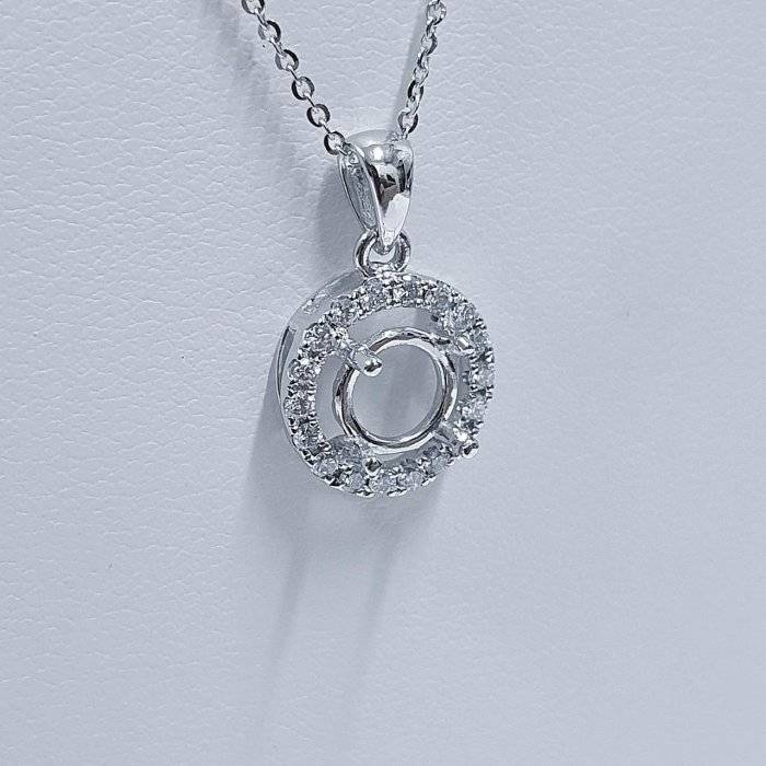 全新品 天然鑽石墜飾空台 適用1~1.3克拉 哈尚鑽圈 有色寶石皆可使用 750K金墜台 配鑽0.28ct 墜1.6x1.1cm 重0.43錢 不含鍊 精美盒裝 店保卡