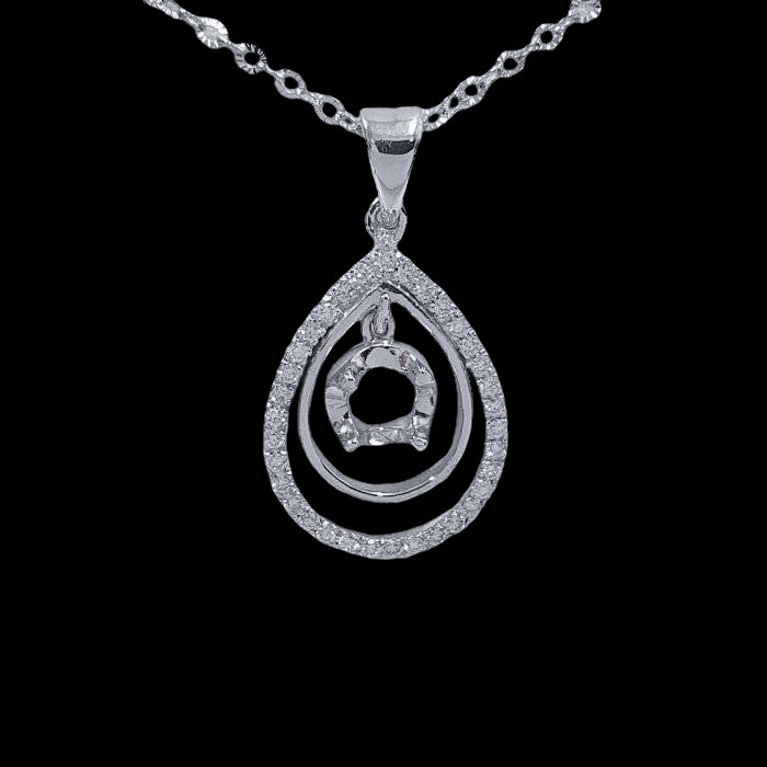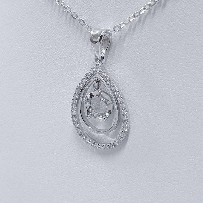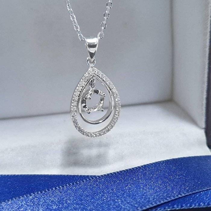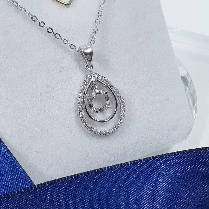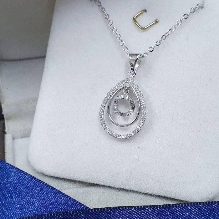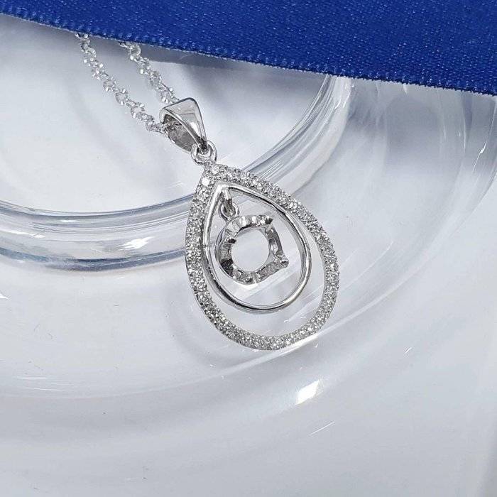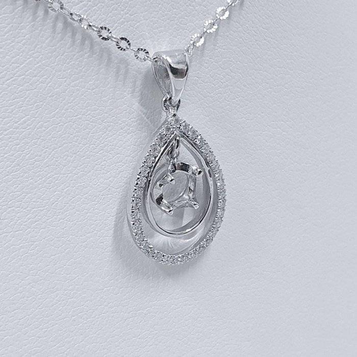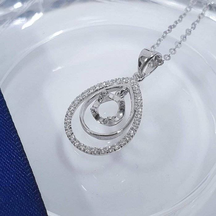 全新品 天然墜飾空台 適用50~80分 橢圓雙繞鑽款 有色寶石皆可使用 585K金墜台 配鑽0.25ct 墜2.5x1.4cm 重0.49錢 不含鍊 精美盒裝 店保卡
