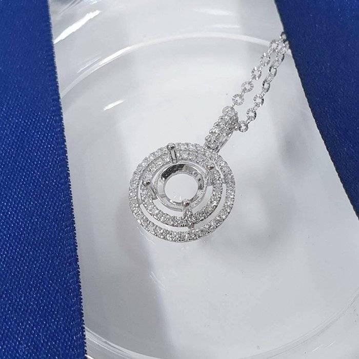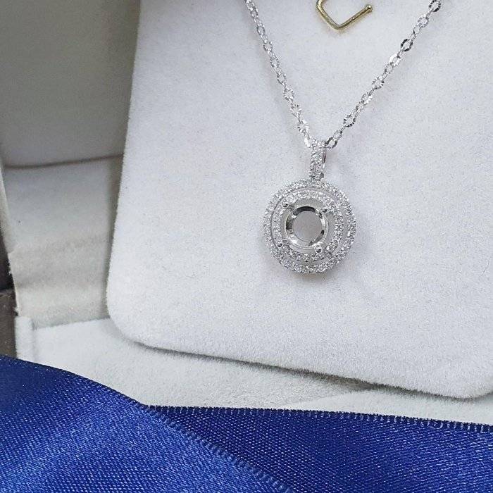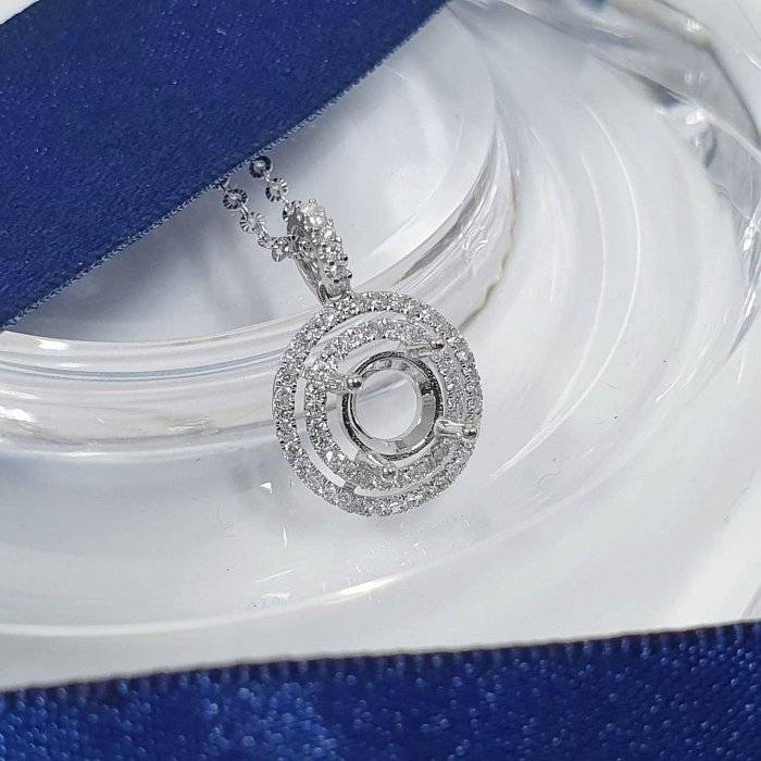 全新品 天然墜飾空台 1~1.3克拉 雙鑽環放大效果 有色寶石皆可使用 750K金墜台 墜1.9x1.3cm 配鑽約0.30ct 重0.42錢 不含鍊 精美盒裝 店保卡