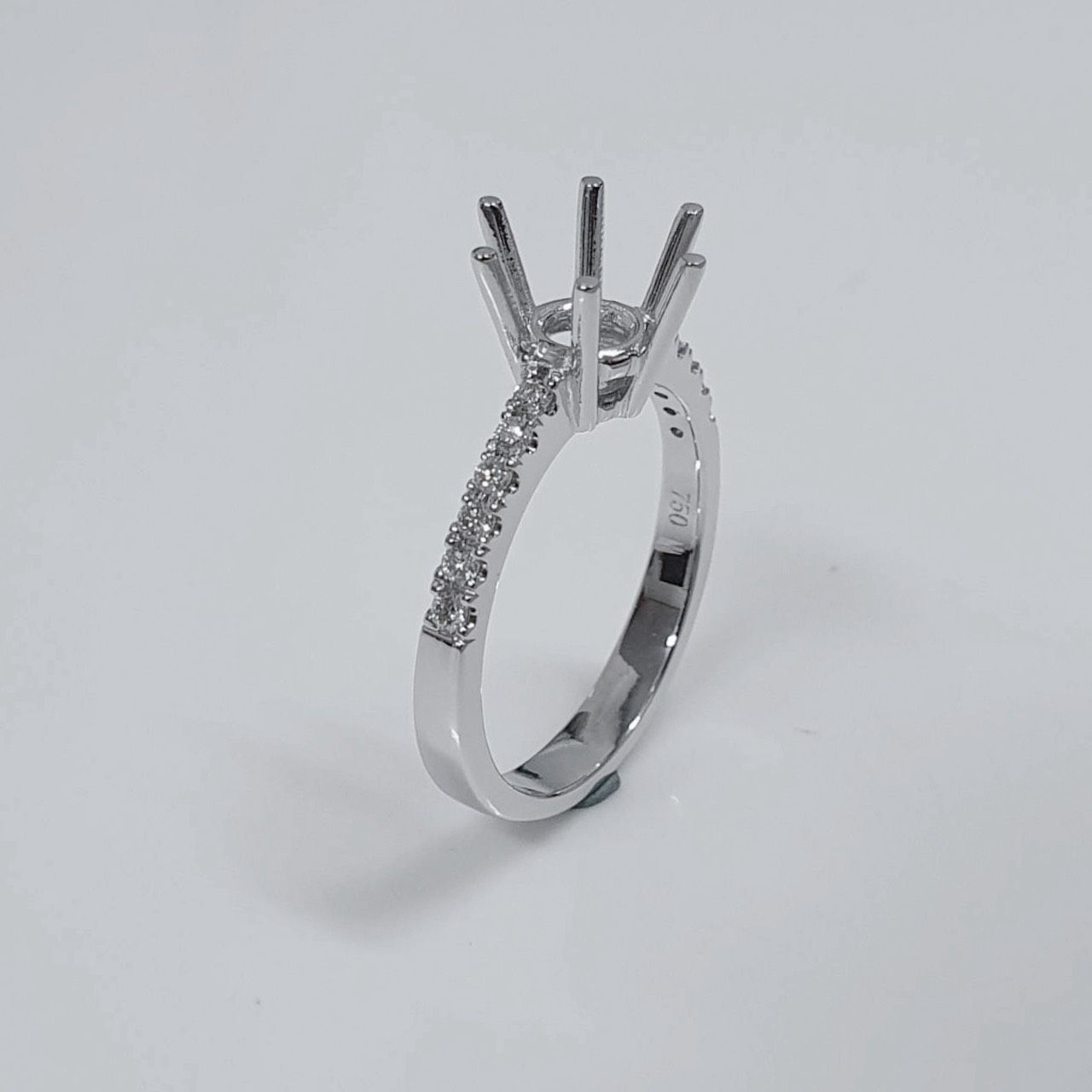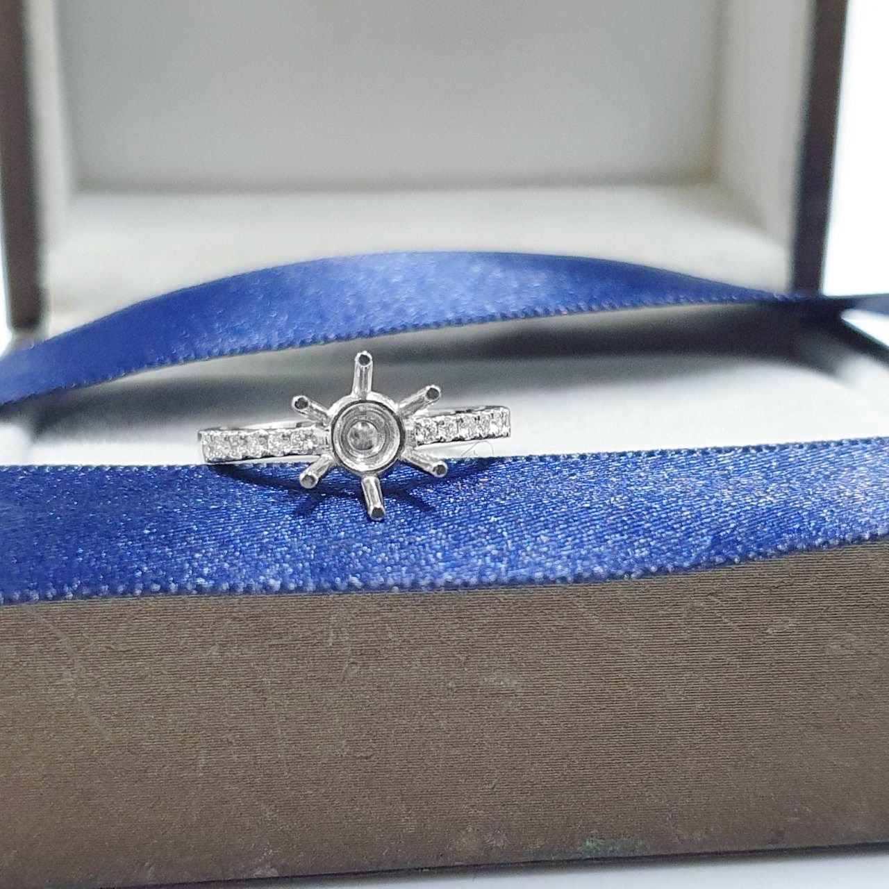 全新品 天然鑽石女戒空台 適用1~1.5克拉 六爪排鑽 18K金戒台 配鑽約0.18ct 國際圍11.5號 面寬0.95cm 重0.95錢 精美盒裝 店保卡