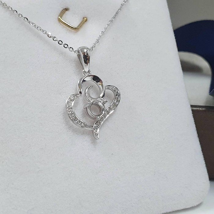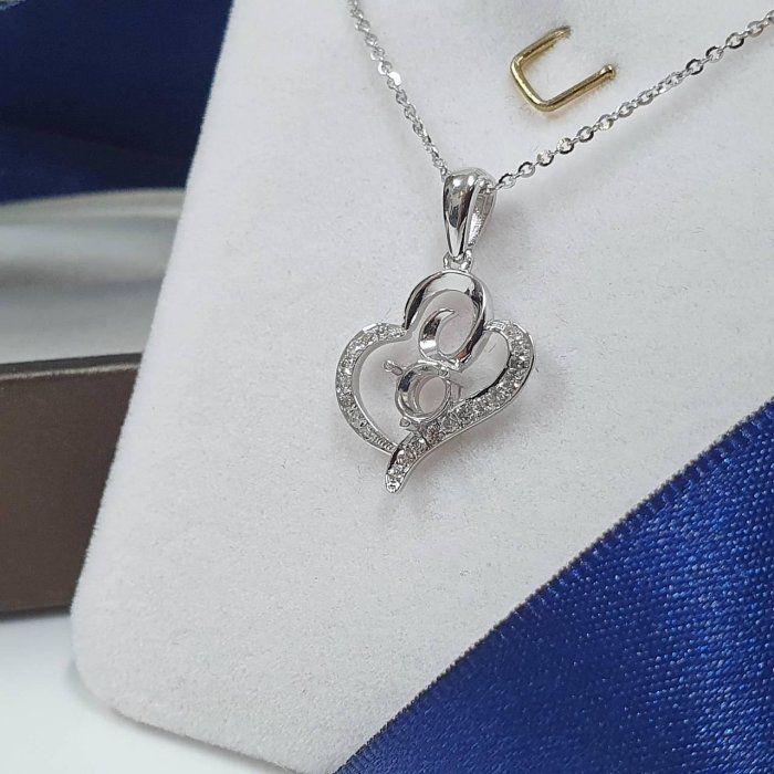全新品 天然墜飾空台 適用30~40分 不規則愛心款 有色寶石皆可使用 750K金墜台 墜2.3x1.5cm 配鑽約0.30ct 重0.47錢 不含鍊 精美盒裝 店保卡