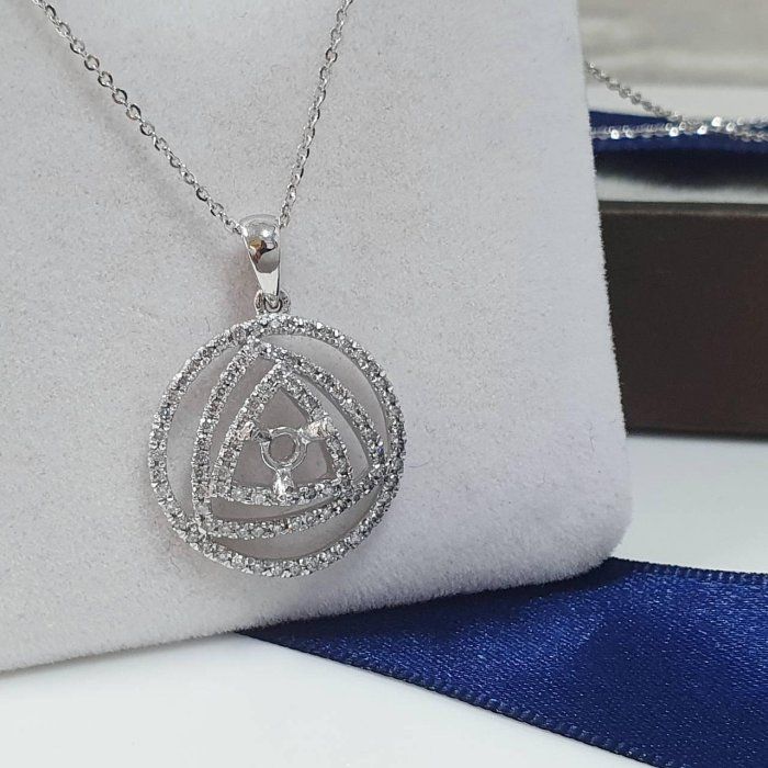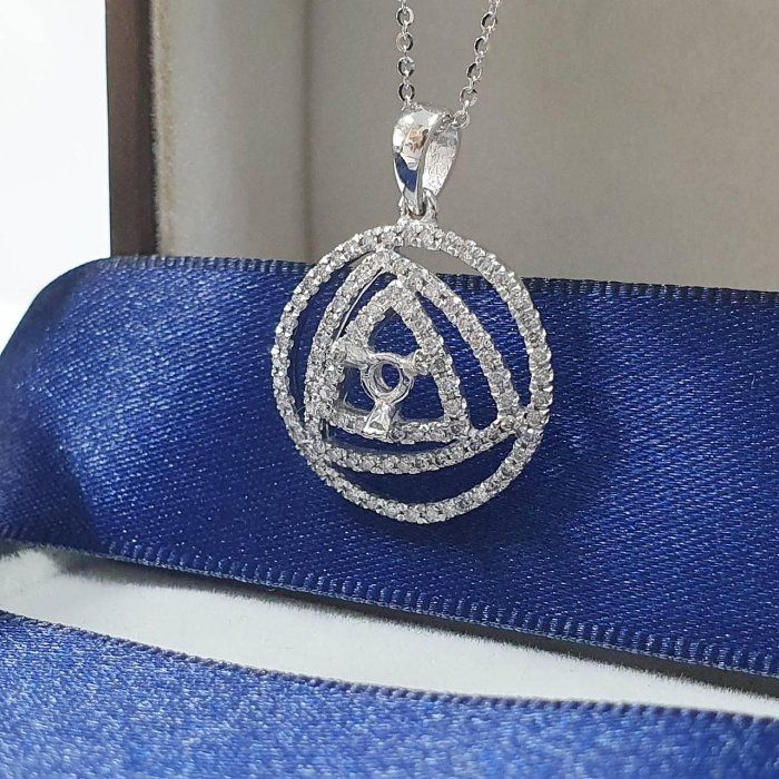 全新品 天然墜飾空台 適用50~80分 不規則鑽圈款 有色寶石皆可使用 PT950鉑金 配鑽約0.18ct 墜2.5x1.9cm 重1.44錢 不含鍊 精美盒裝 店保卡