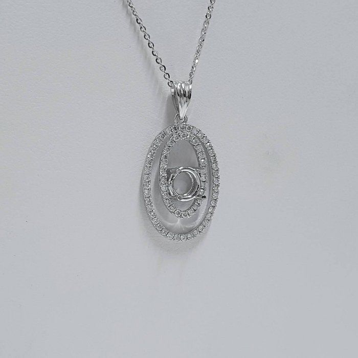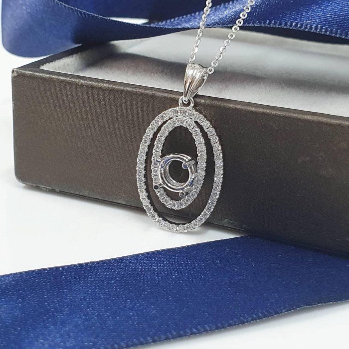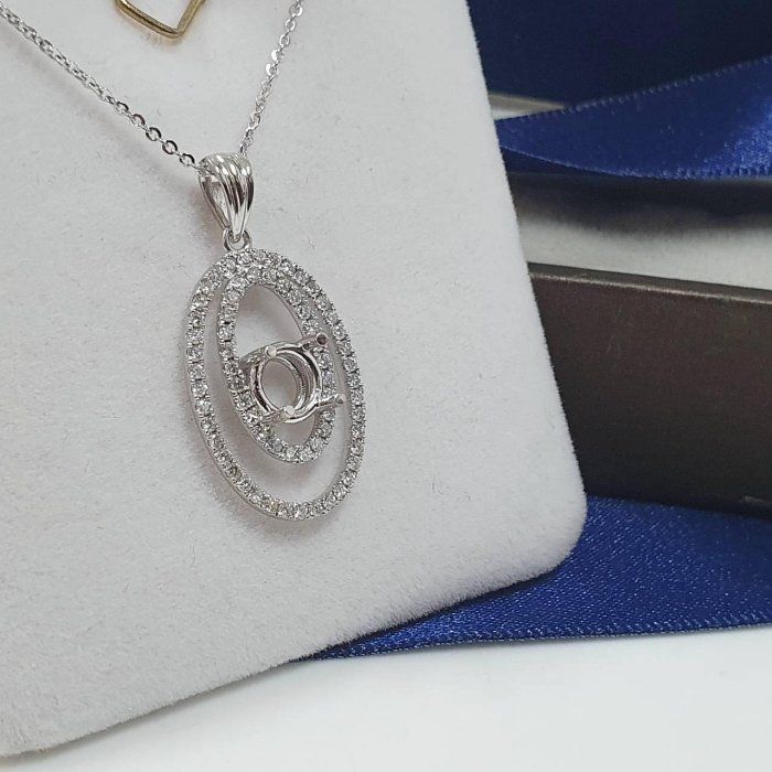 全新品 天然墜飾空台 適用1~1.3克拉 璀璨雙環款 有色寶石皆可使用 750K金墜台 配鑽約0.46ct 墜2.8x1.4cm 重0.73錢 不含鍊 精美盒裝 店保卡