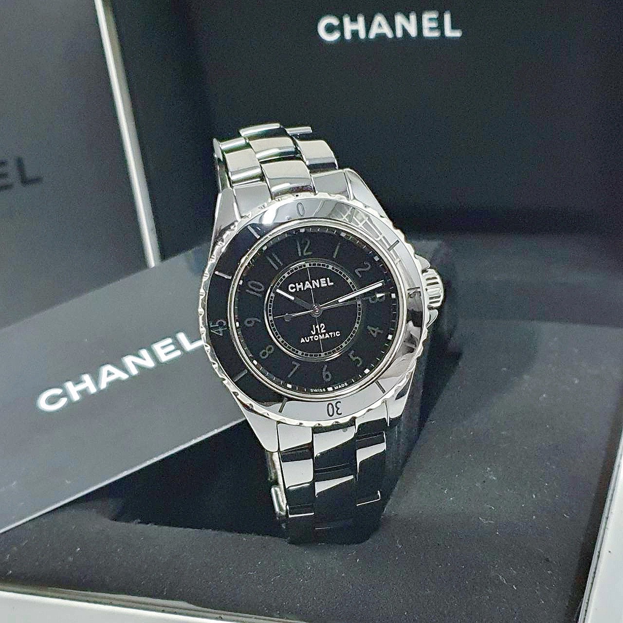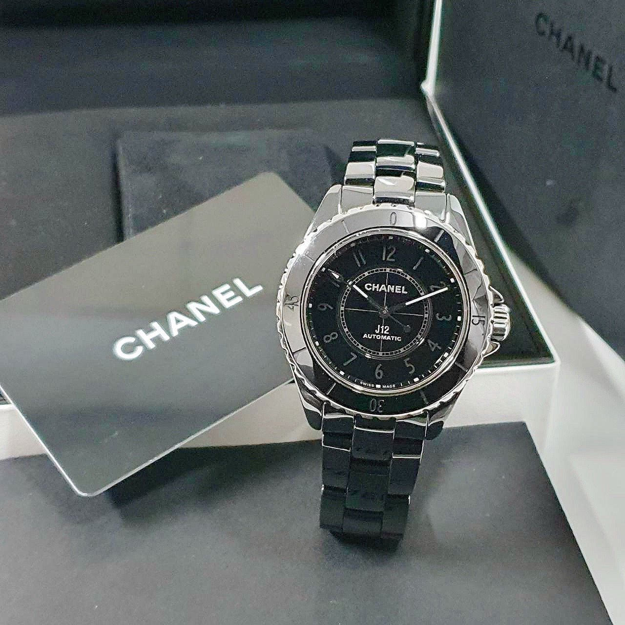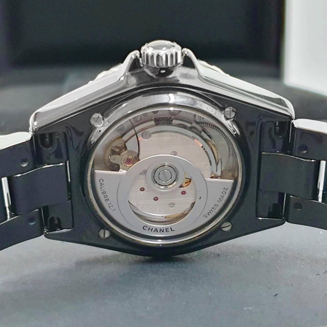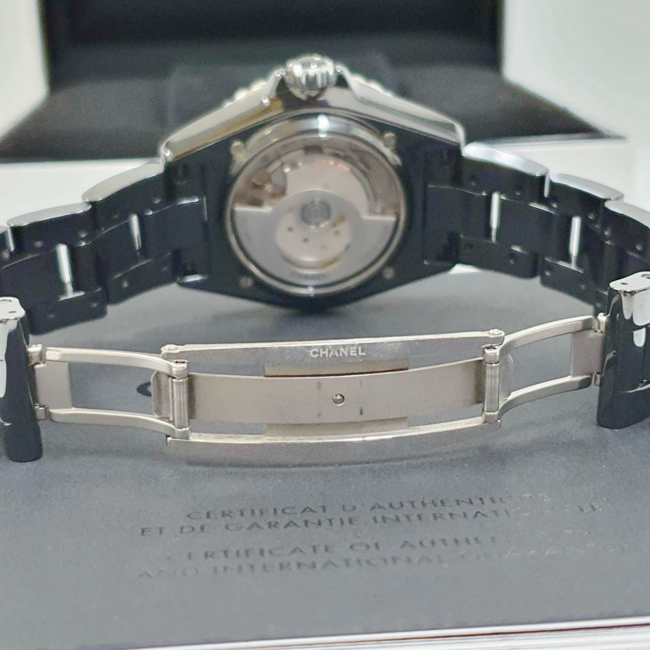 CHANEL香奈兒 J12系列 H6185 黑陶瓷 黑色數字面盤 2022/04 底蓋裸空 摺疊扣 錶徑38mm 自動上鍊 黑陶瓷材質 防水200米 原廠盒單齊全
