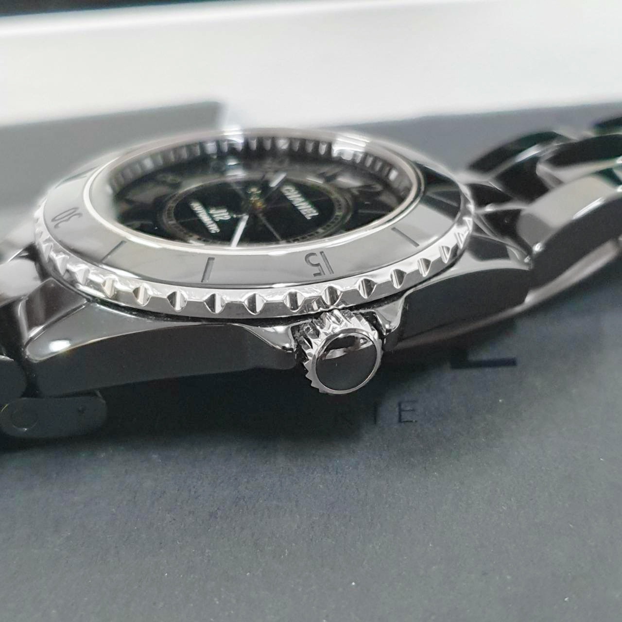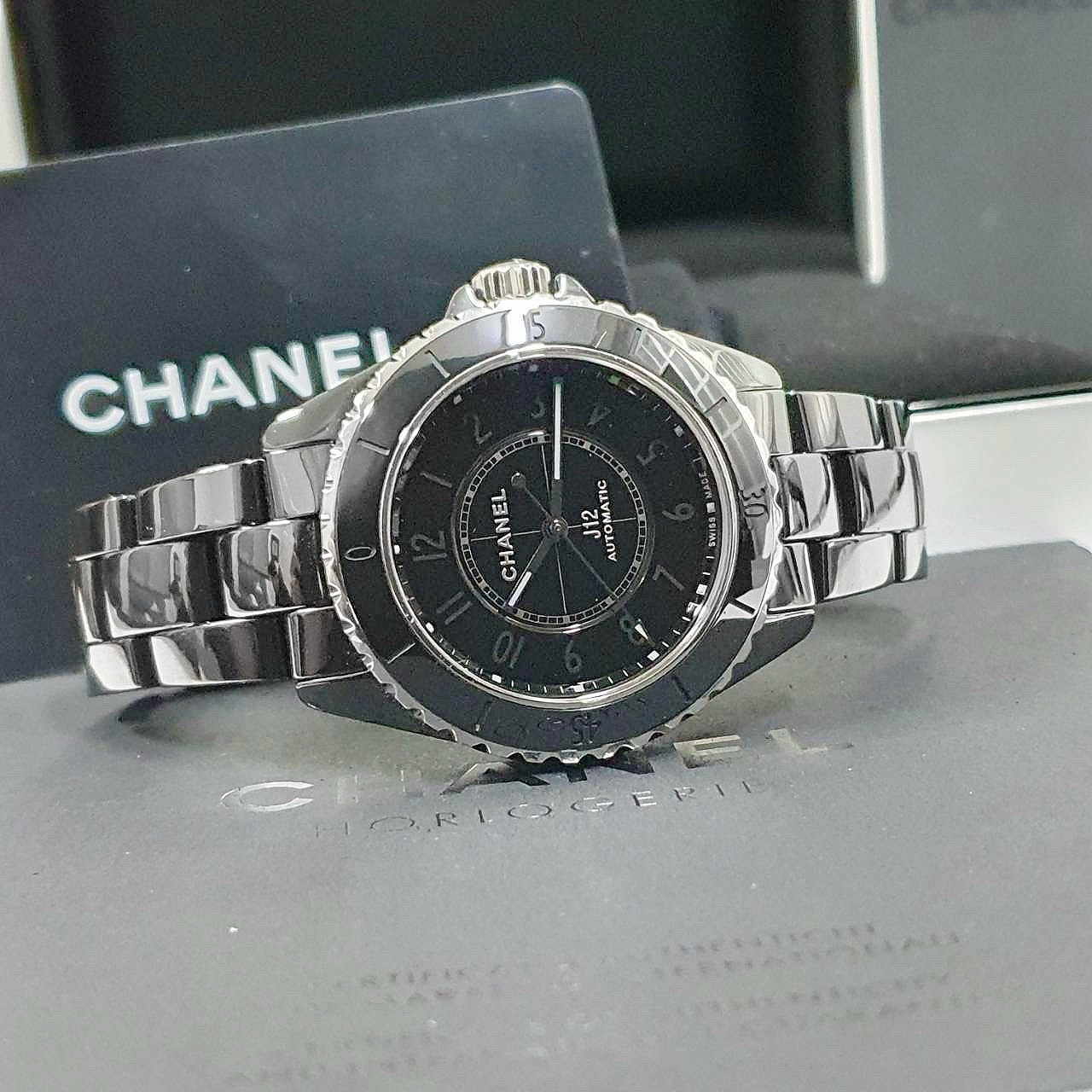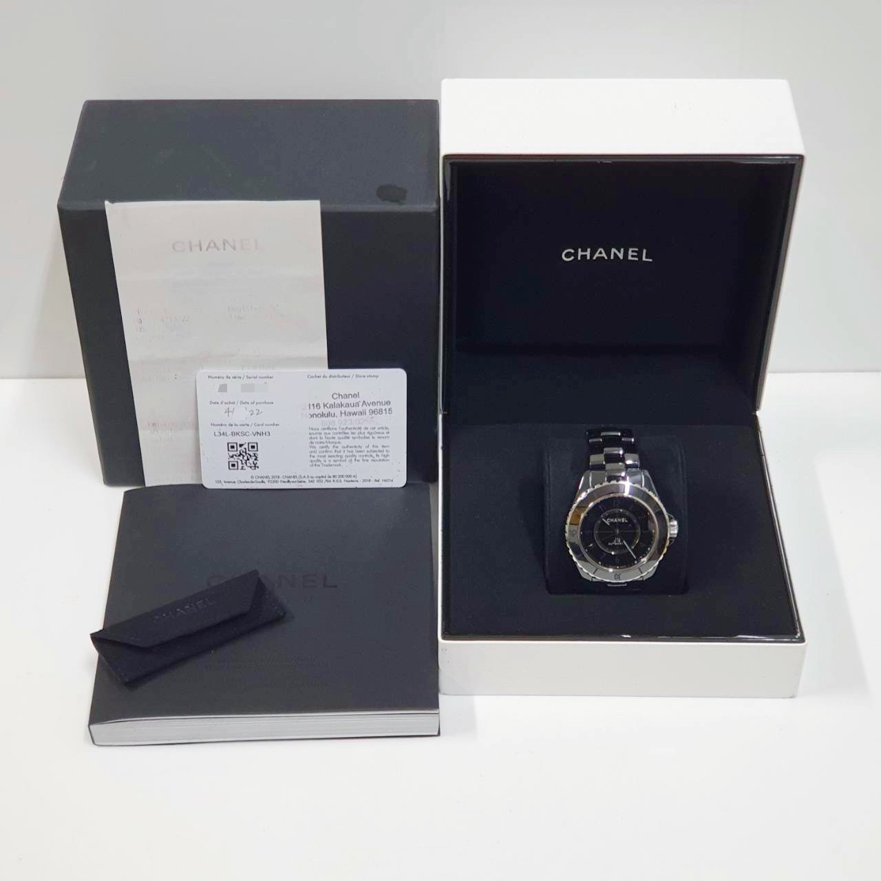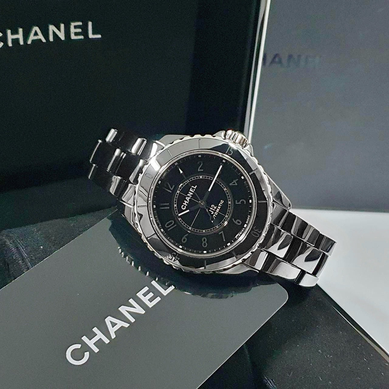 CHANEL香奈兒 J12系列 H6185 黑陶瓷 黑色數字面盤 2022/04 底蓋裸空 摺疊扣 錶徑38mm 自動上鍊 黑陶瓷材質 防水200米 原廠盒單齊全