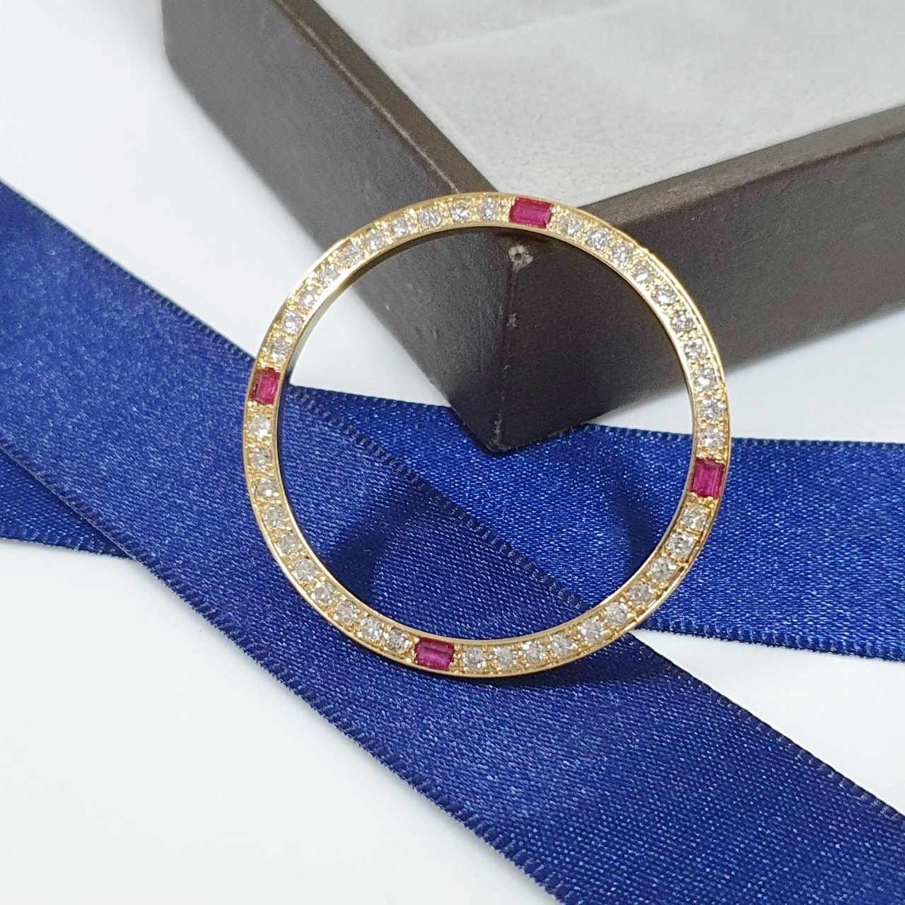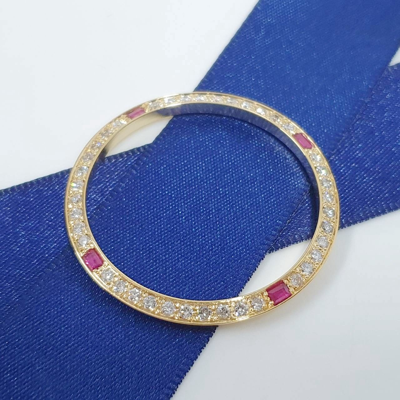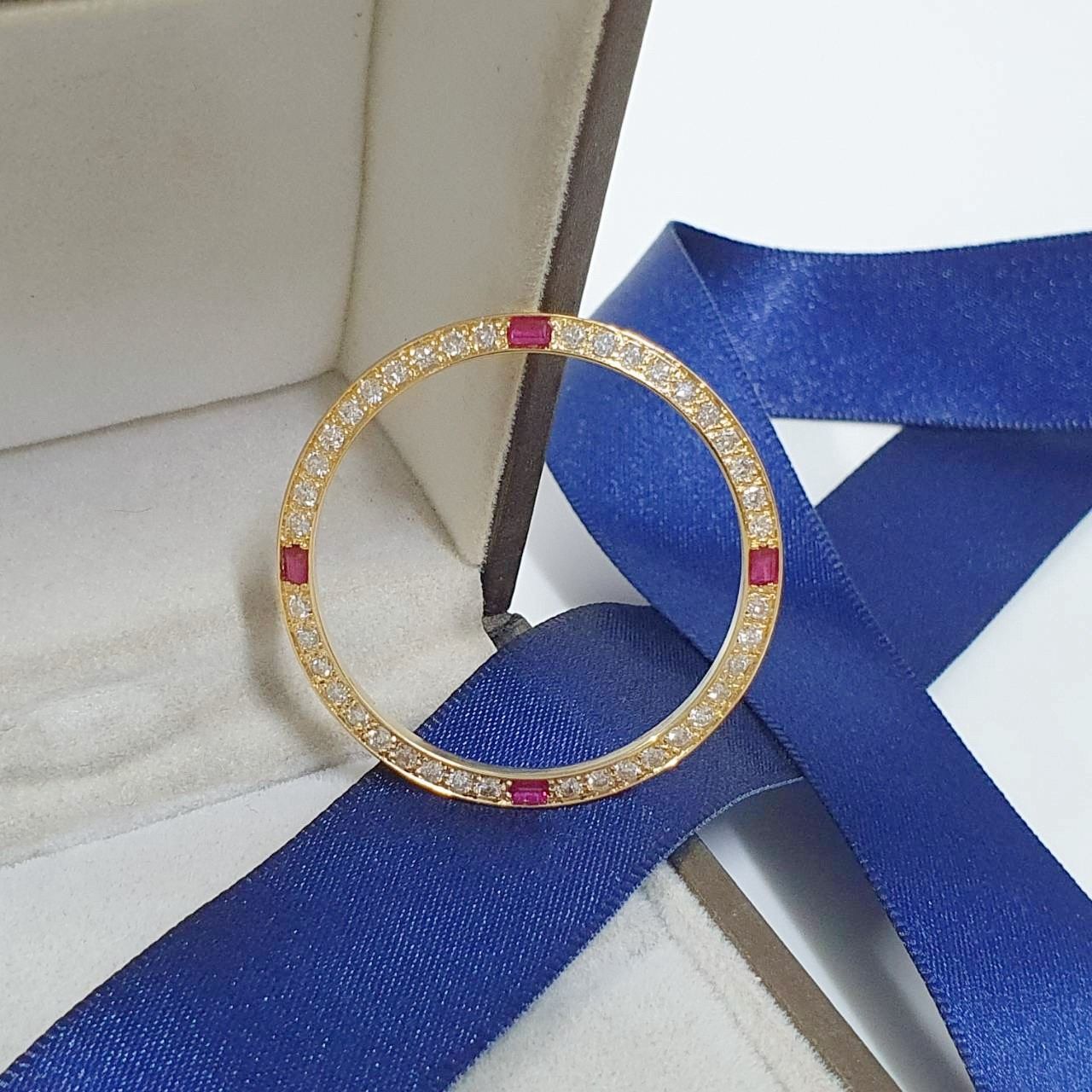 16233 18238 男用 精鑲天然鑽石鑽圈 紅寶 鑽石40顆 每顆約3分 共約1.2克拉 黃K金材質 總重1.56錢 精美盒裝 店保卡