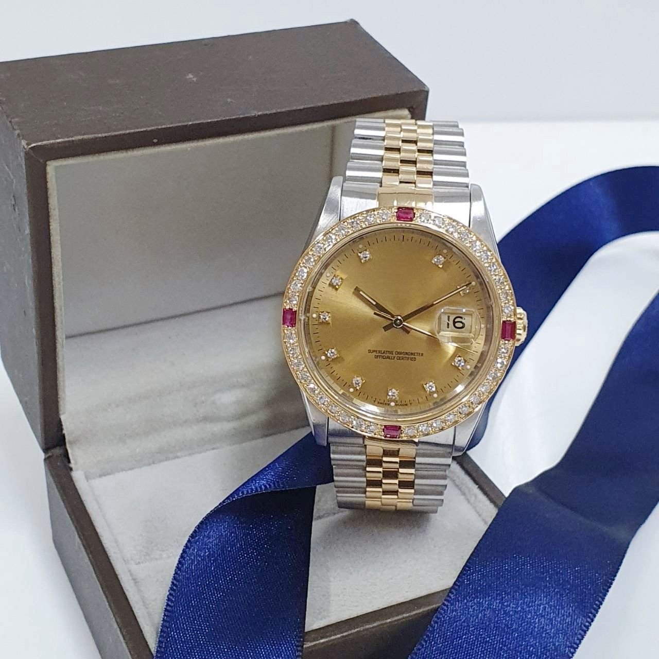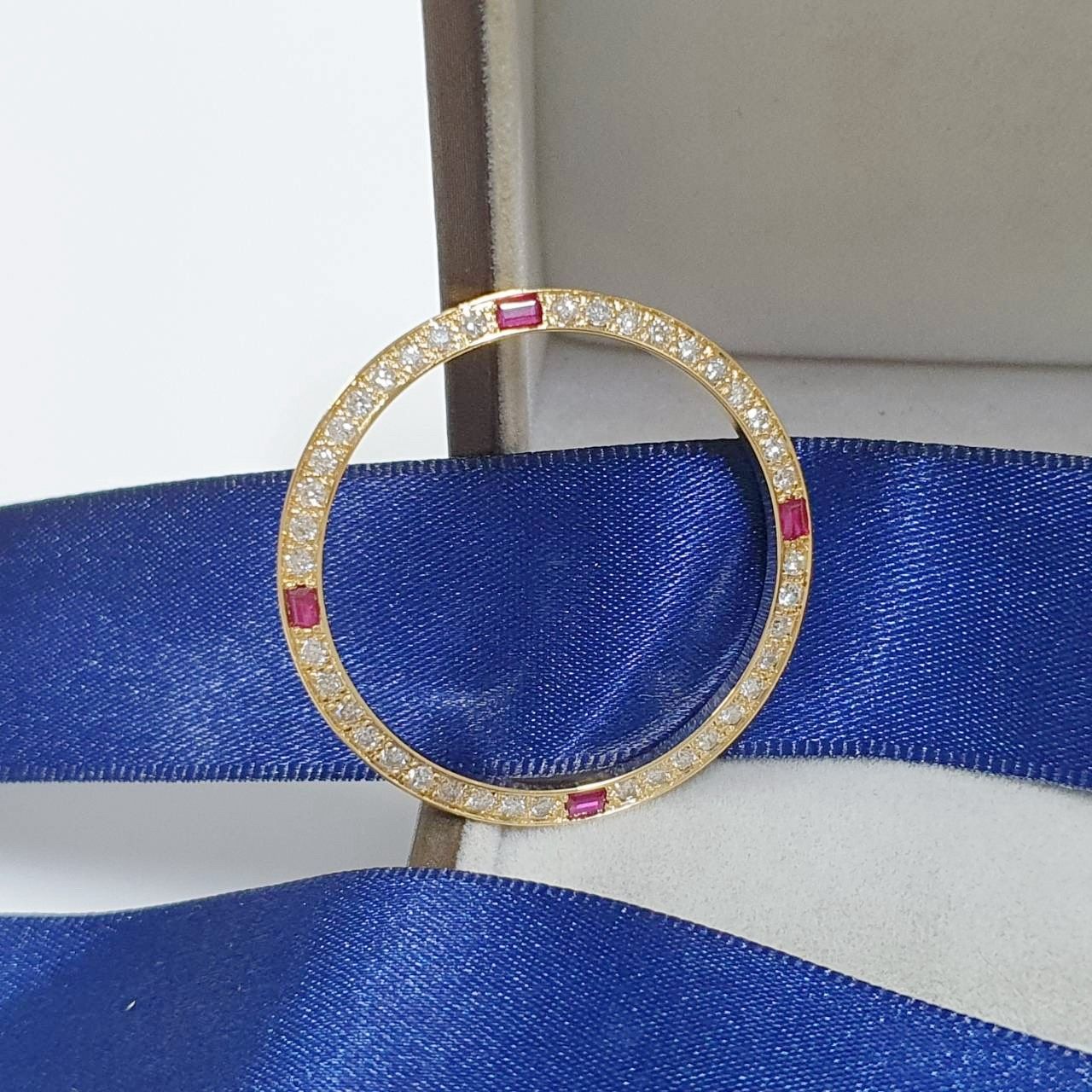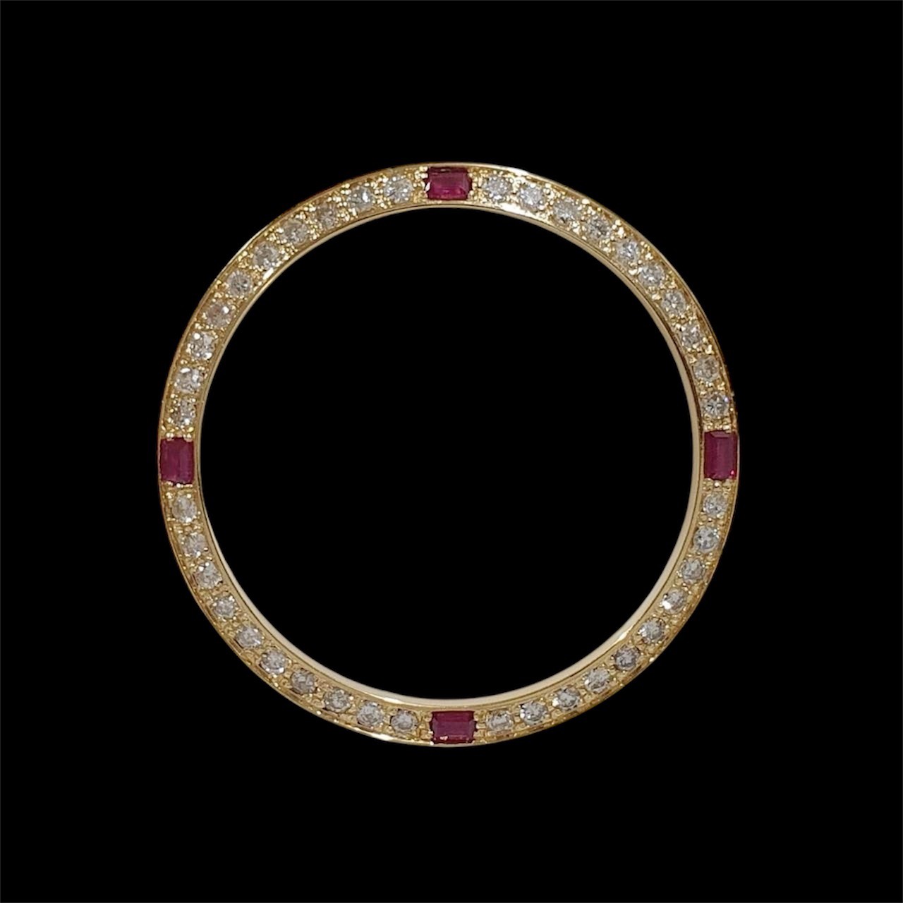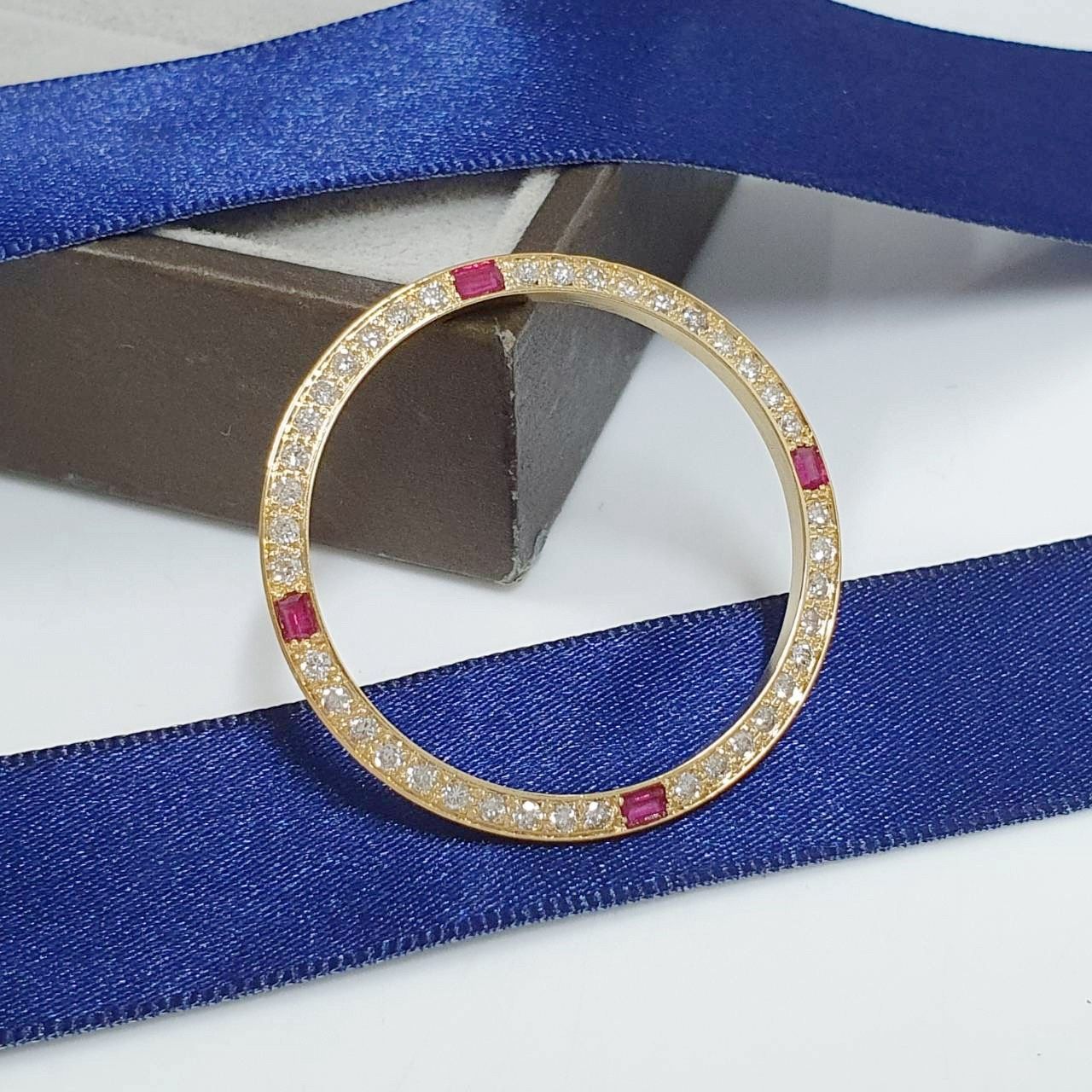 16233 18238 男用 精鑲天然鑽石鑽圈 紅寶 鑽石40顆 每顆約3分 共約1.2克拉 黃K金材質 總重1.56錢 精美盒裝 店保卡