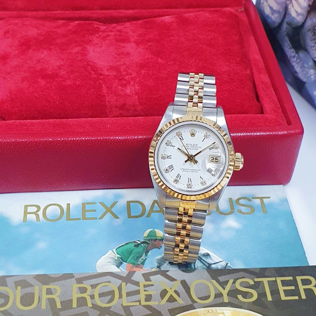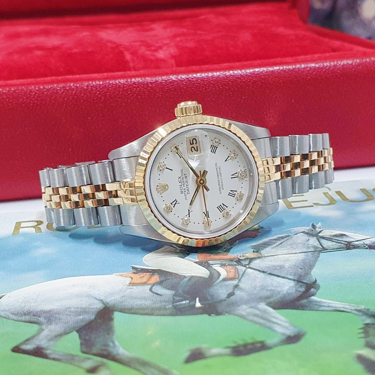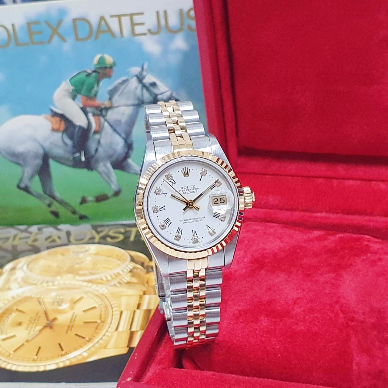 ROLEX 勞力士 69173 Datejust 蠔式女錶 經典款 白瓷羅馬鑽石面盤 錶徑26mm 自動上鍊 18K金及不鏽鋼 防水100米 R字頭 原廠盒裝 店保卡 保養完成