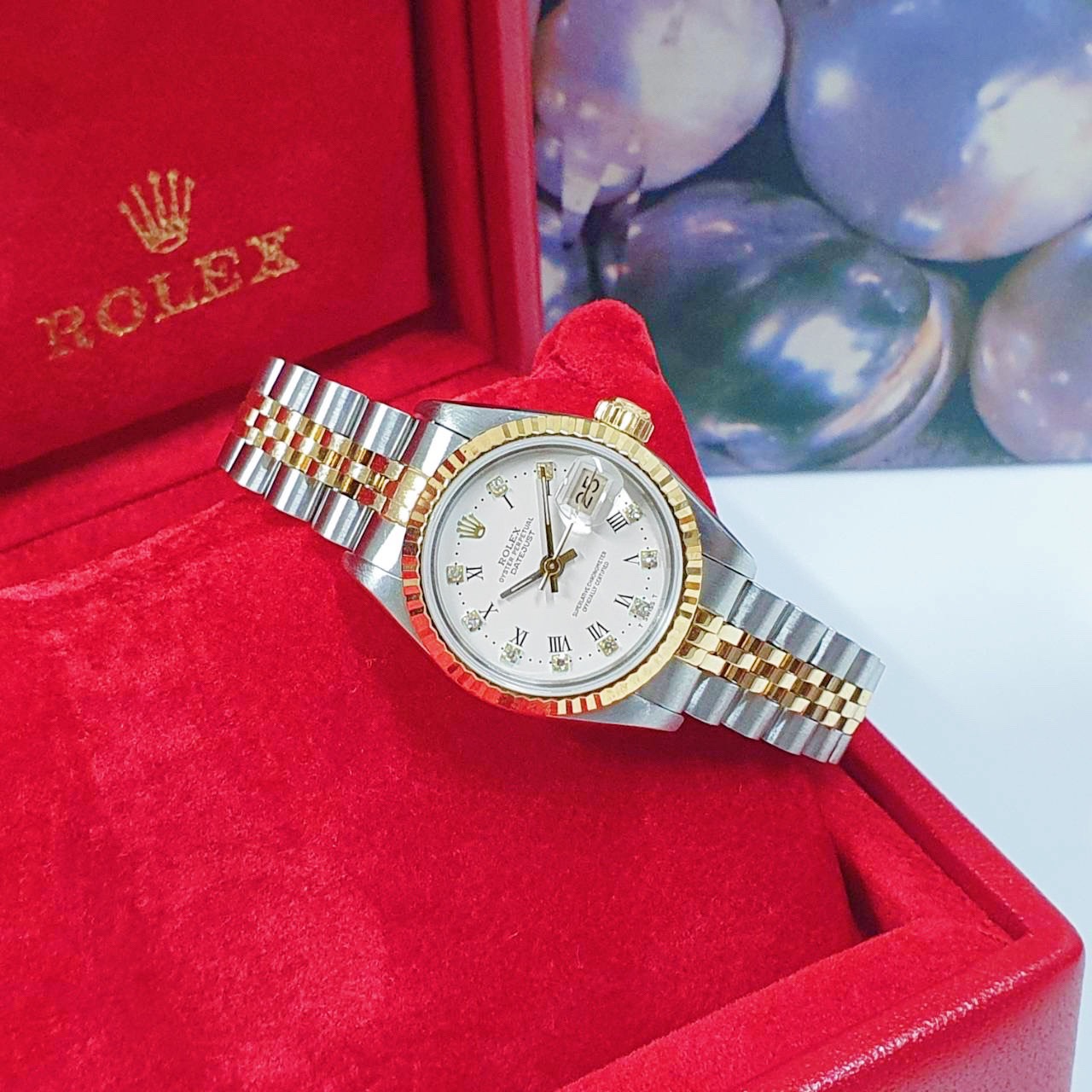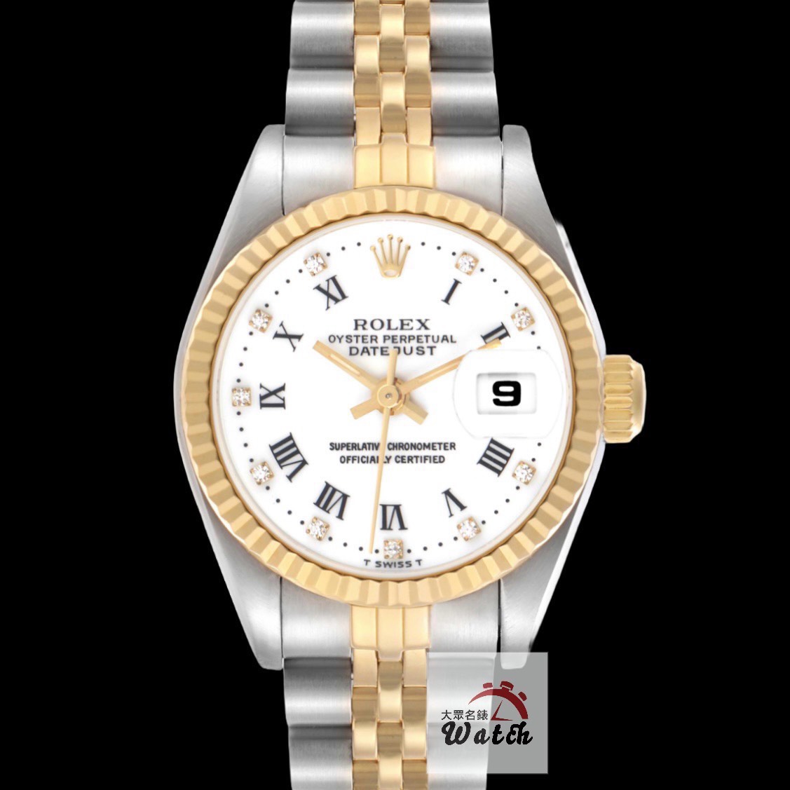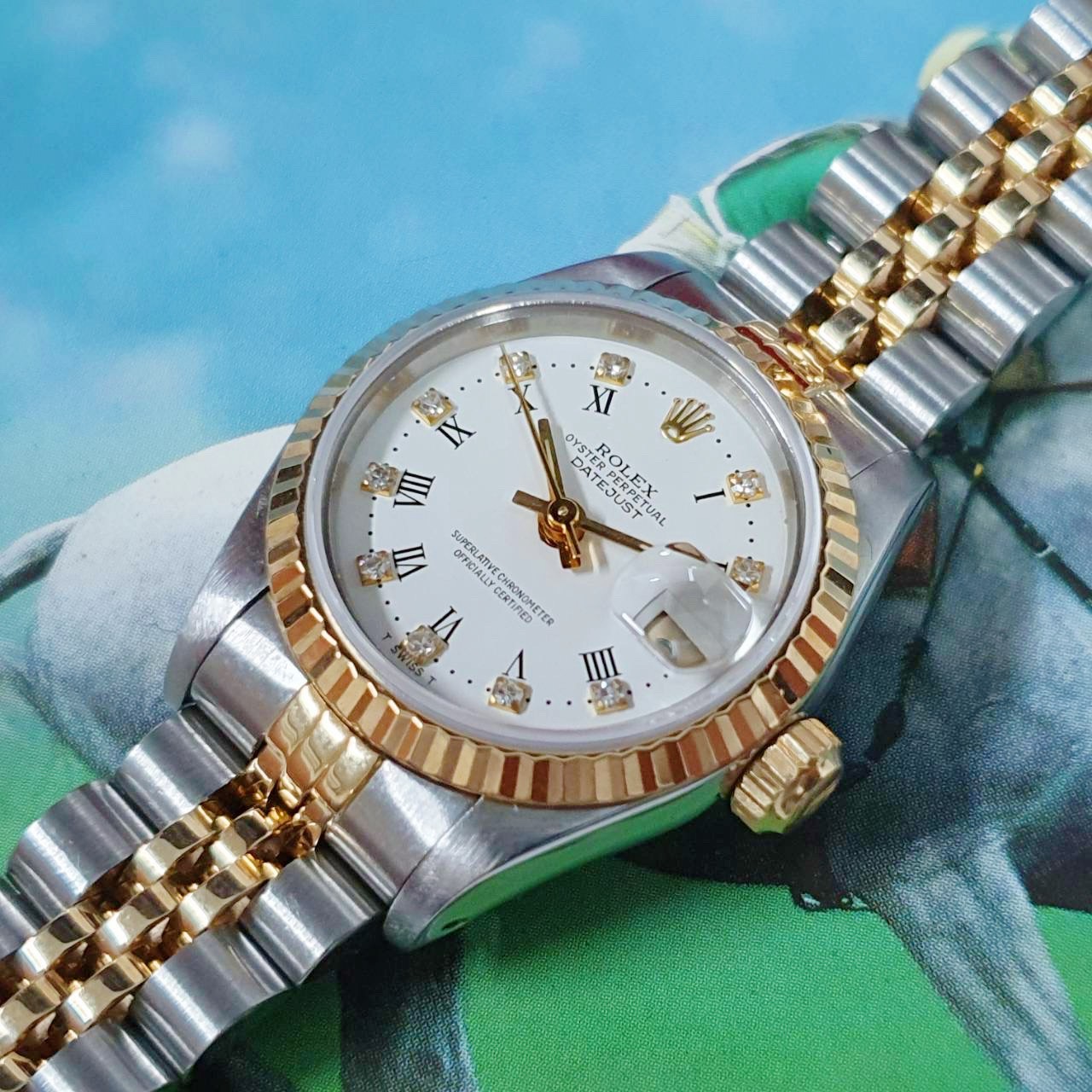 ROLEX 勞力士 69173 Datejust 蠔式女錶 經典款 白瓷羅馬鑽石面盤 錶徑26mm 自動上鍊 18K金及不鏽鋼 防水100米 R字頭 原廠盒裝 店保卡 保養完成