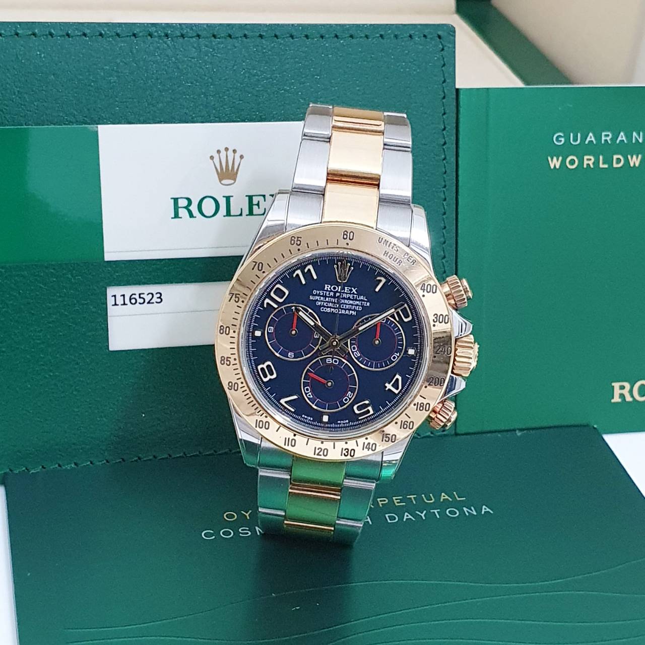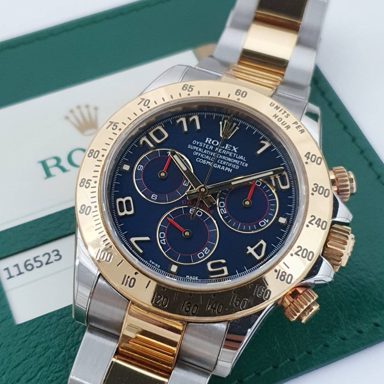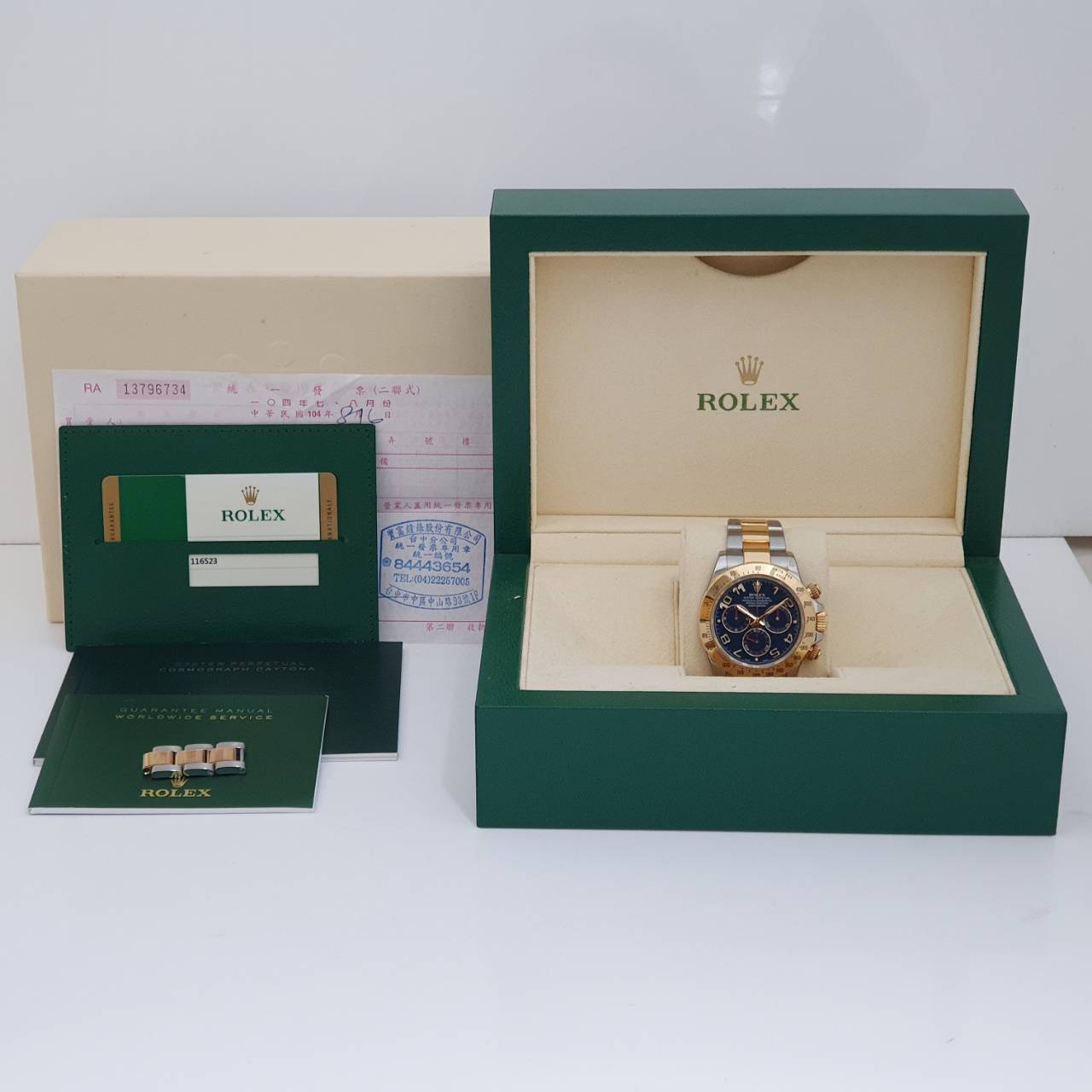 ROLEX 勞力士 116523 Daytona 2015/08 市場少有 藍色賽車面盤 藍色夜光 計時碼錶 錶徑40mm 自動上鍊 18K金及不鏽鋼 防水100米 原廠盒單齊全 保養完成