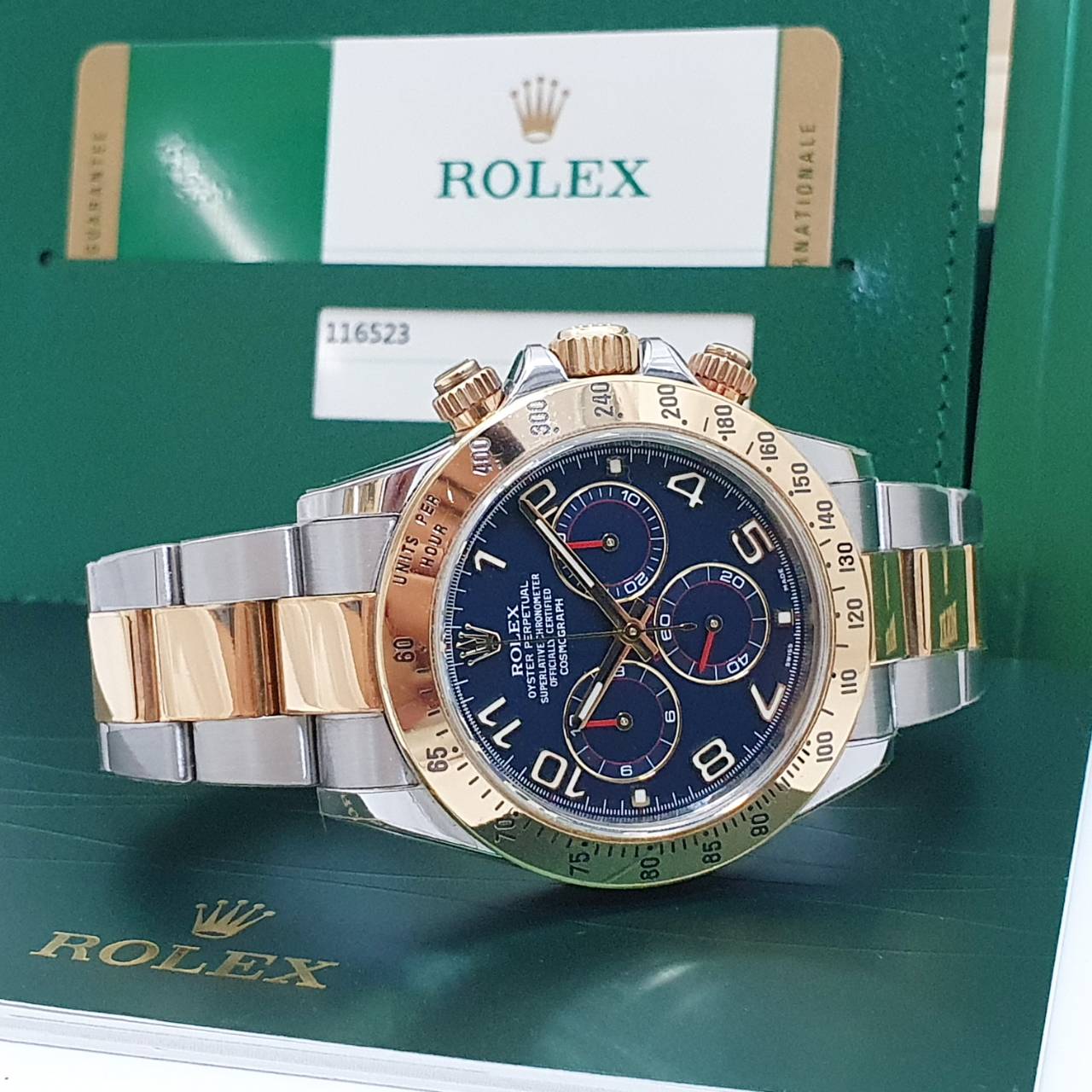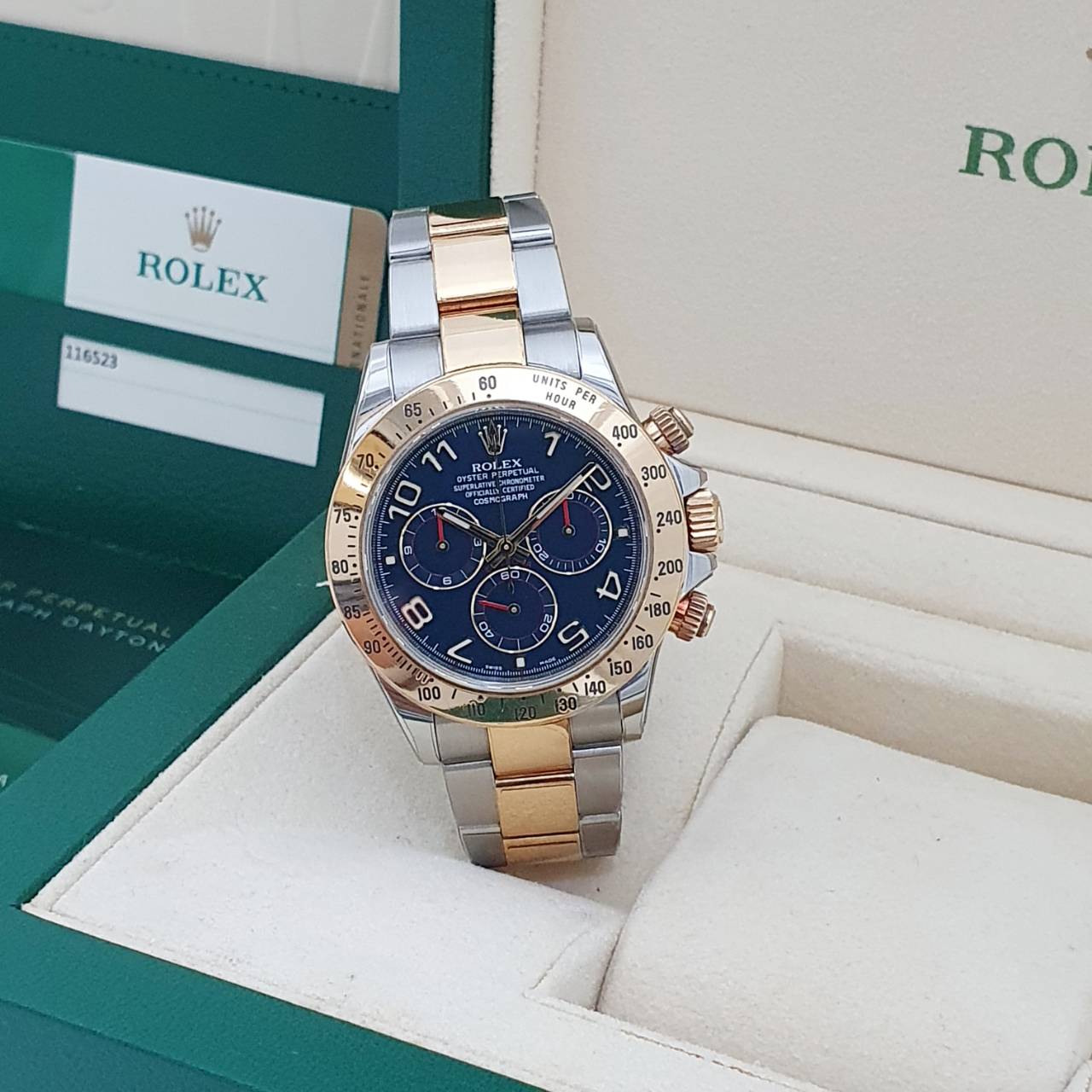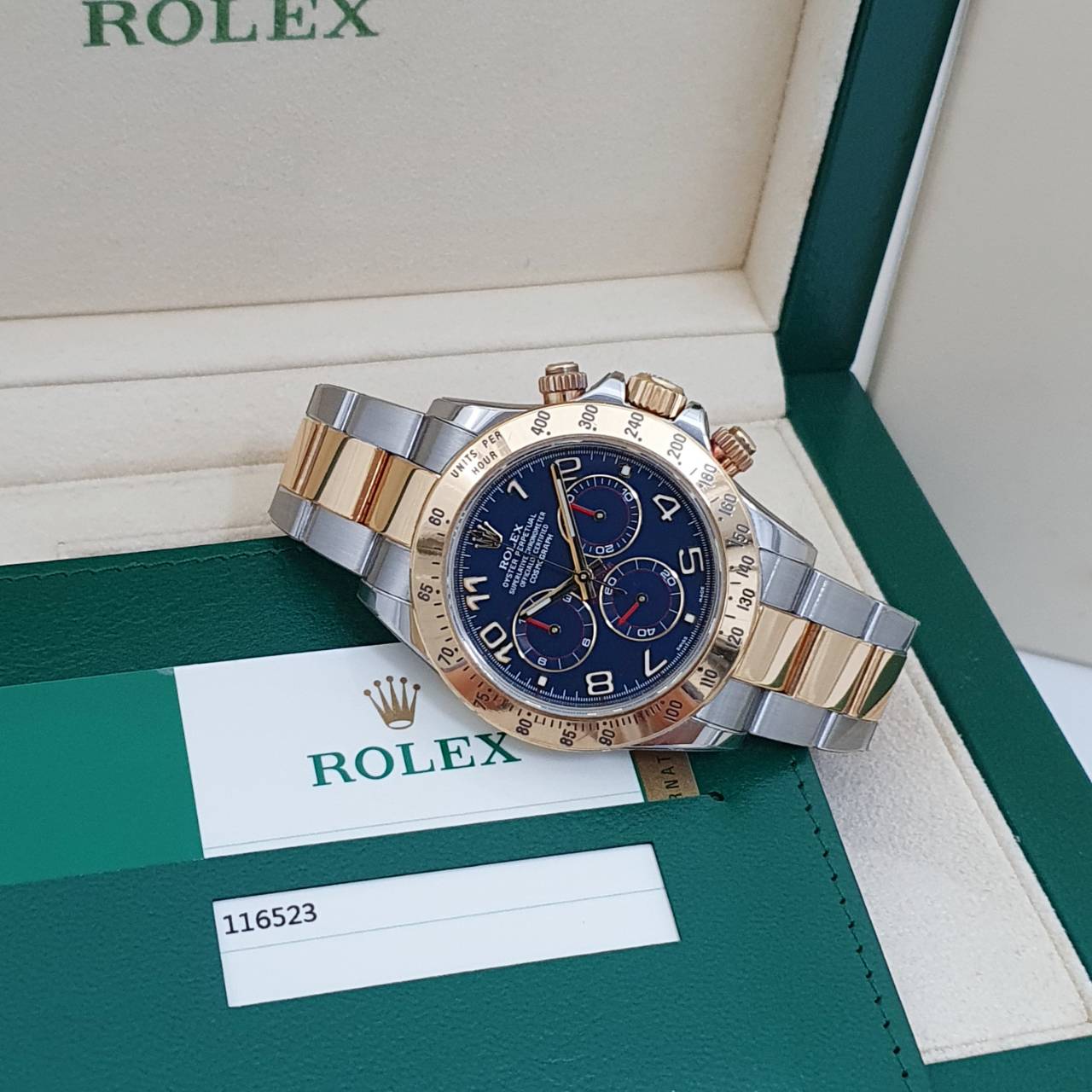 ROLEX 勞力士 116523 Daytona 2015/08 市場少有 藍色賽車面盤 藍色夜光 計時碼錶 錶徑40mm 自動上鍊 18K金及不鏽鋼 防水100米 原廠盒單齊全 保養完成