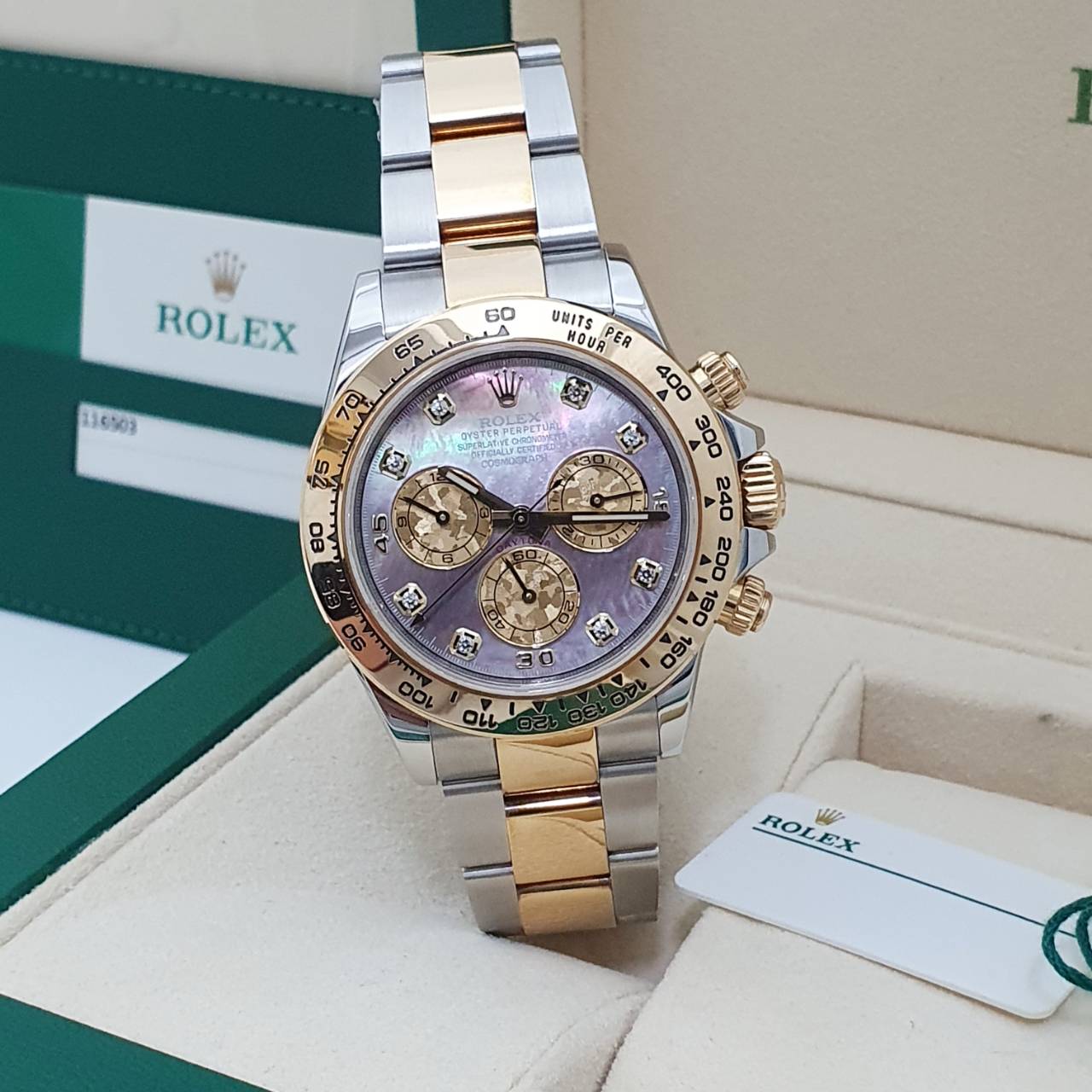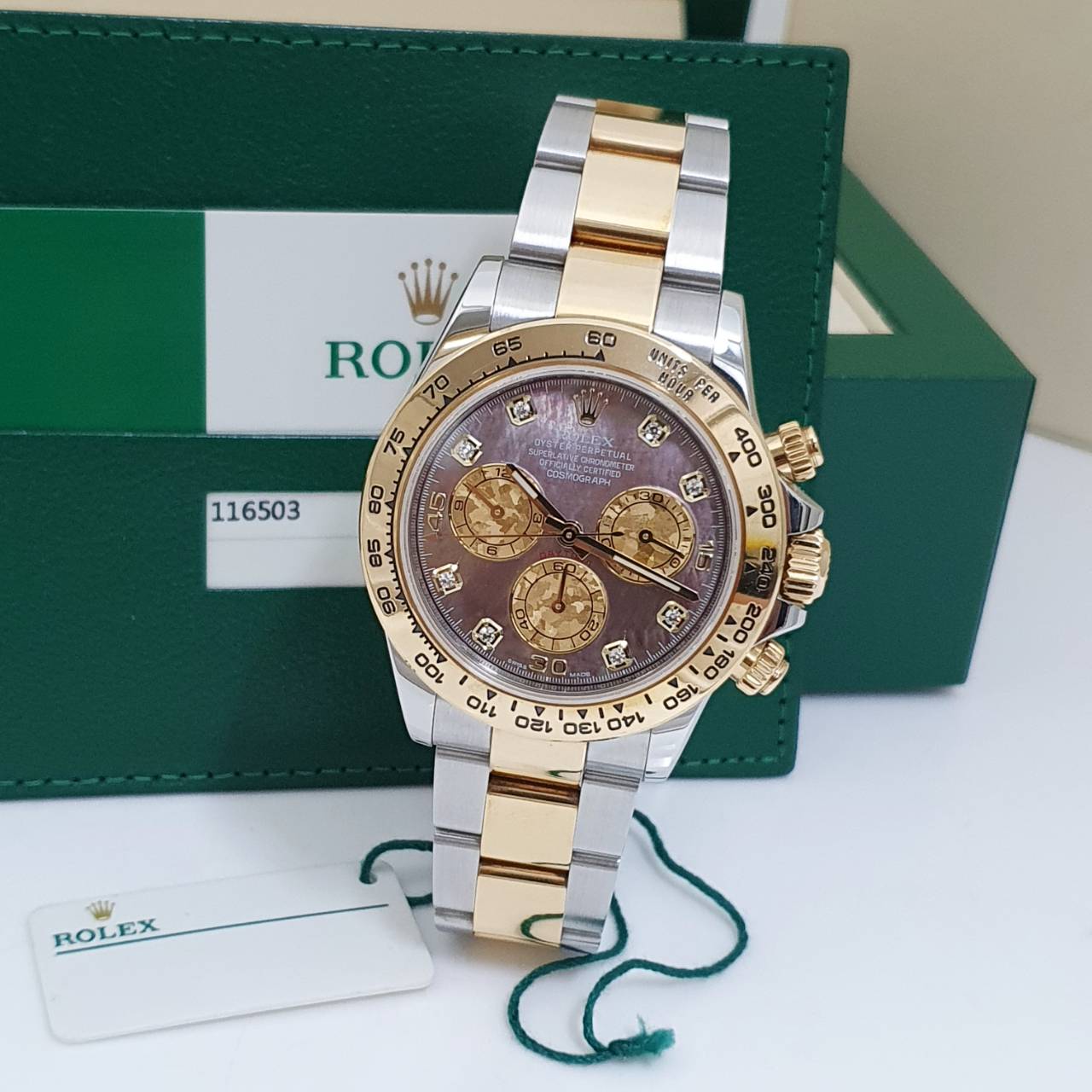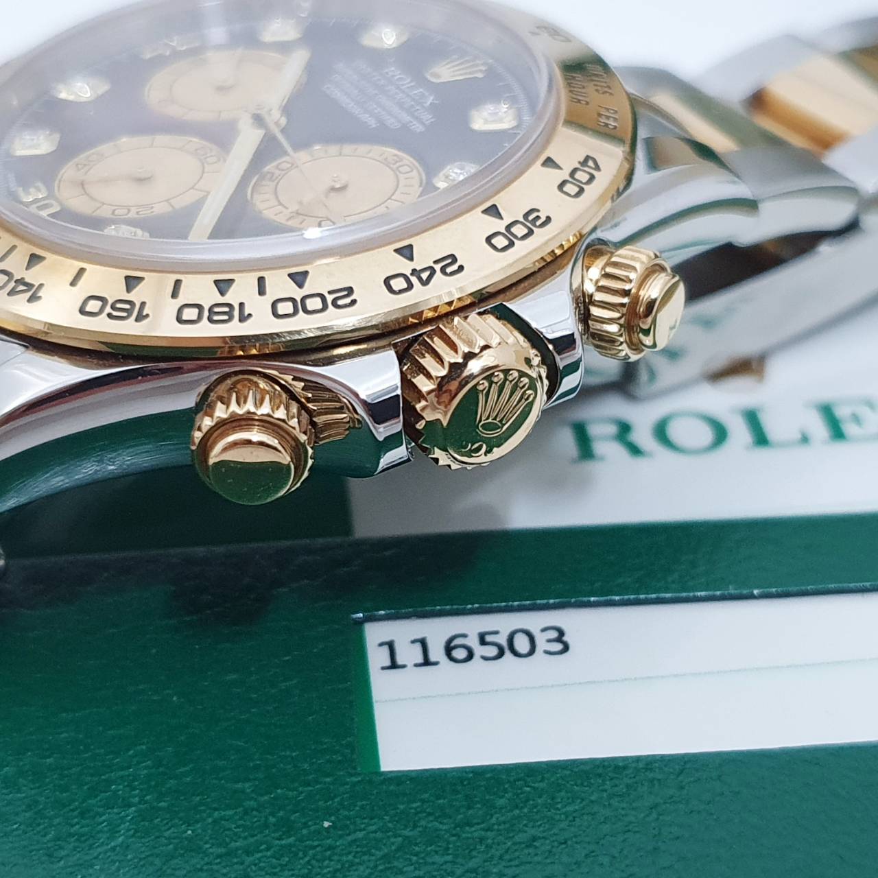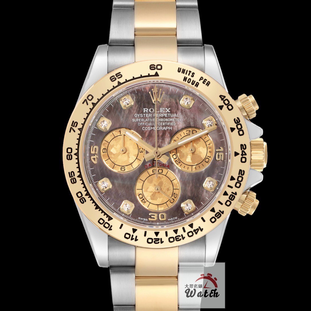 ROLEX 勞力士 116503 Daytona 半金迪通拿 2017/10 停產款 黑色貝殼8鑽面盤 不同角度視覺美 錶徑40mm 自動上鍊 18K金及不鏽鋼 防水100米 原廠盒單齊全 保養完成