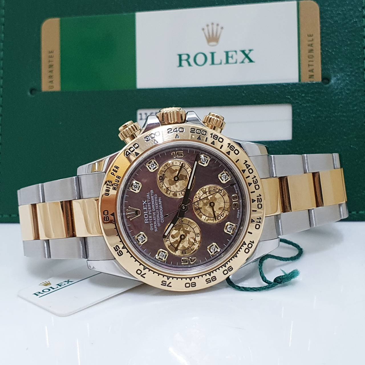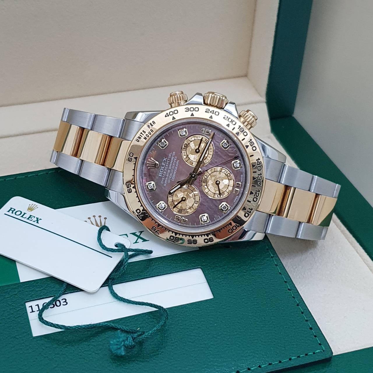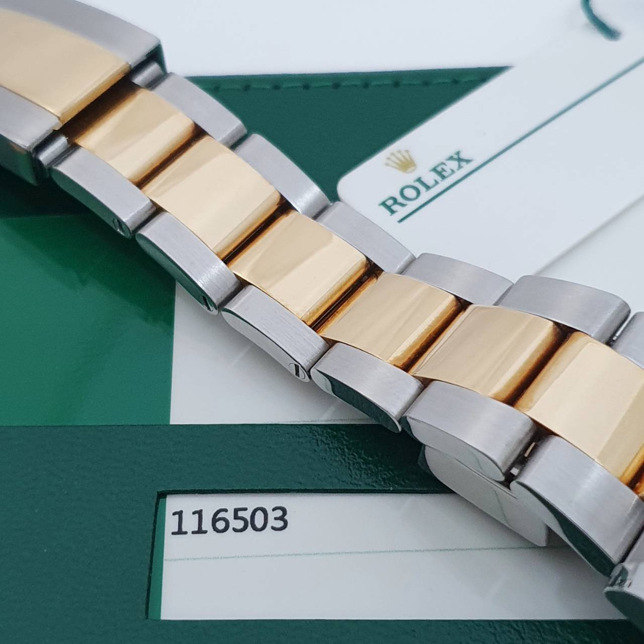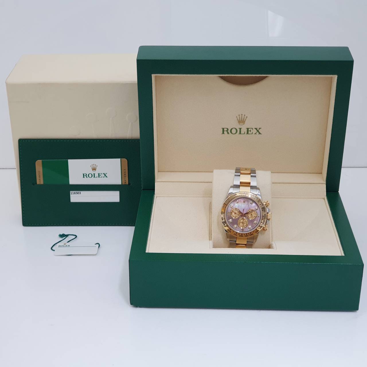 ROLEX 勞力士 116503 Daytona 半金迪通拿 2017/10 停產款 黑色貝殼8鑽面盤 不同角度視覺美 錶徑40mm 自動上鍊 18K金及不鏽鋼 防水100米 原廠盒單齊全 保養完成