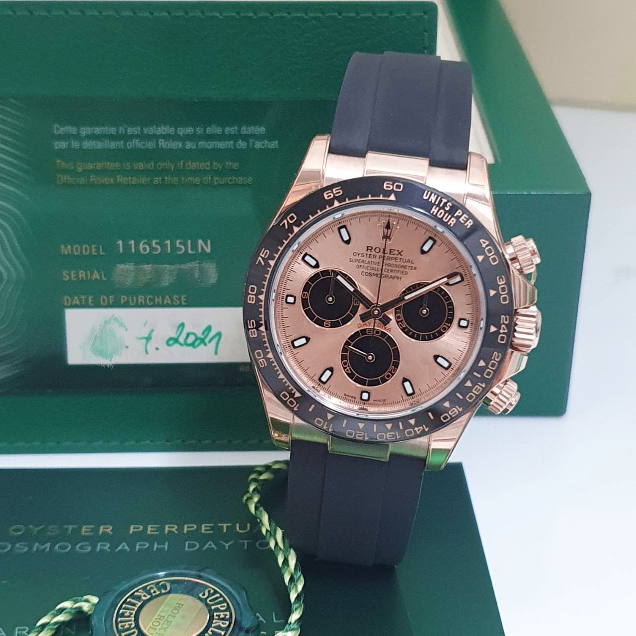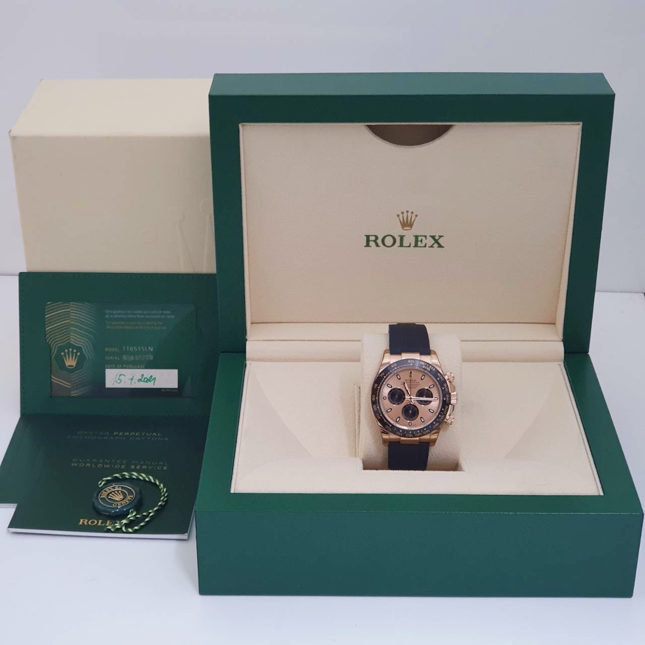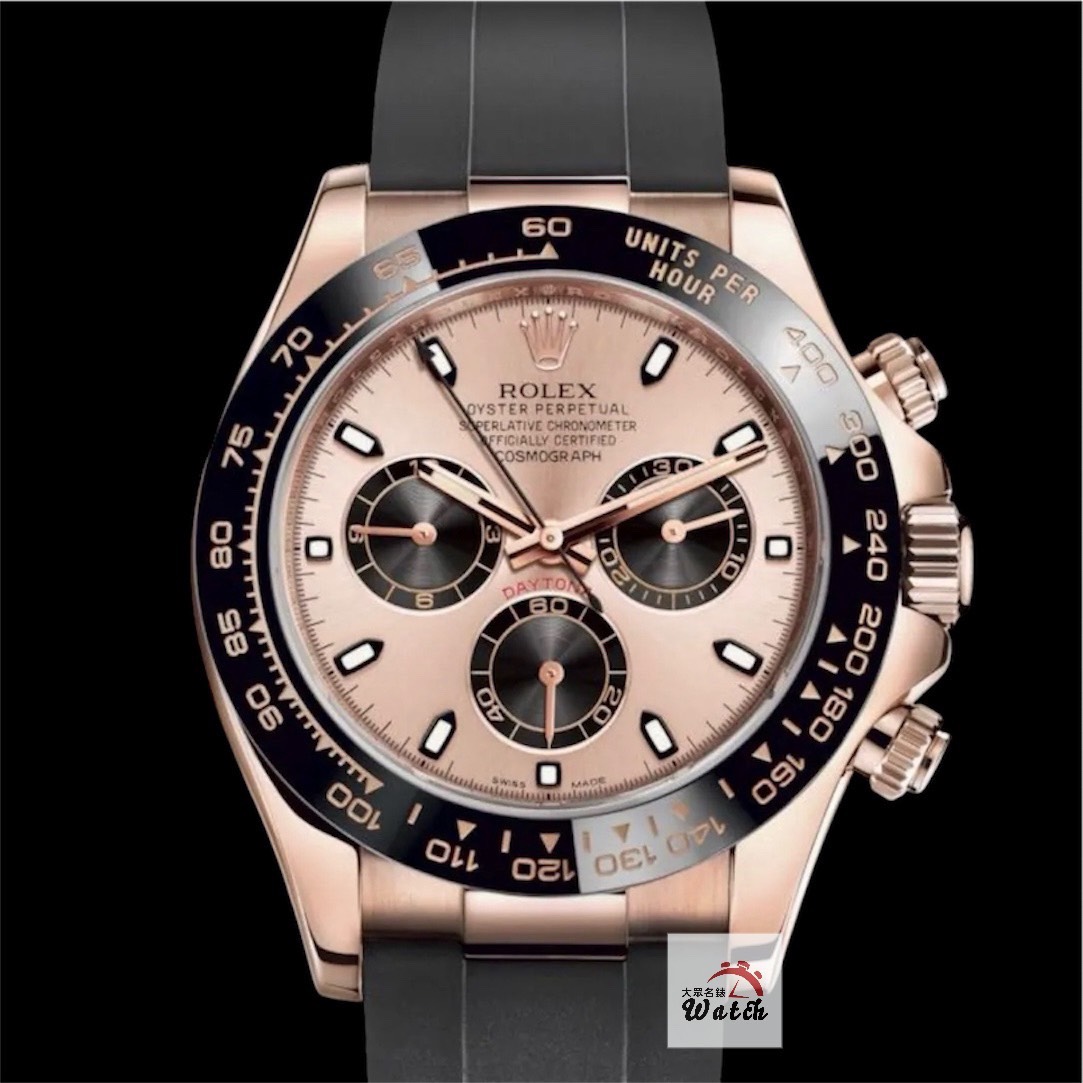 ROLEX 勞力士 116515LN Daytona 18K玫瑰金 2021/04綠卡 粉色面盤 陶瓷圈 膠帶尺寸E-F 錶扣原廠膠膜 錶徑40mm 自動上鍊 18K玫瑰金材質 防水100米 原廠盒單齊全