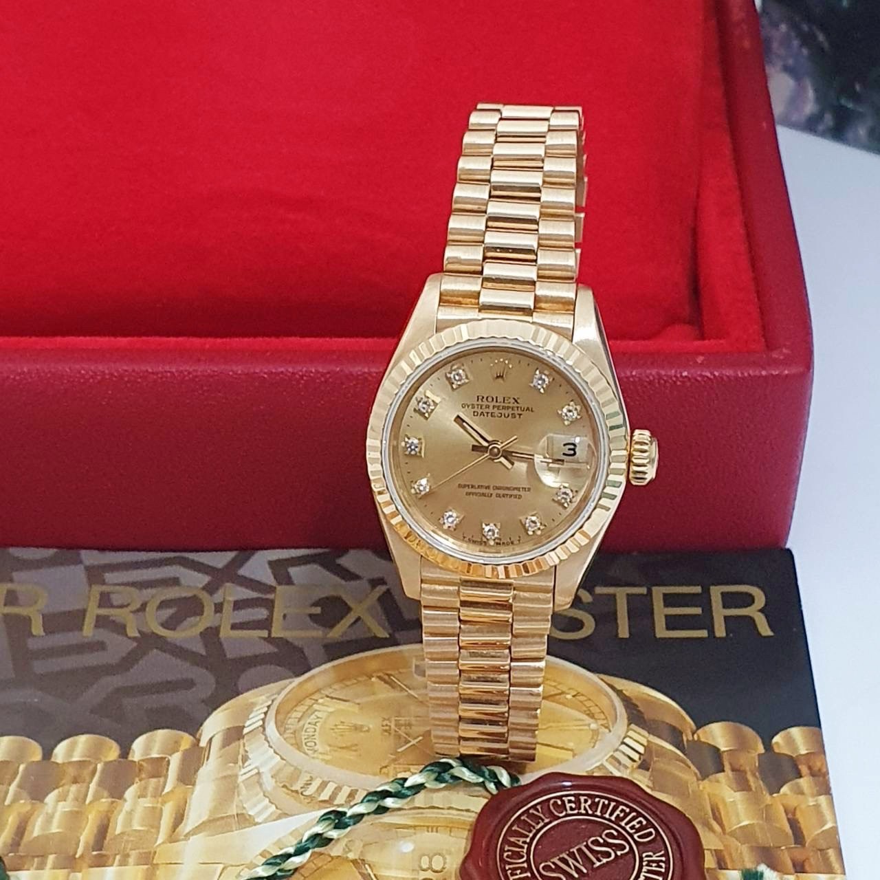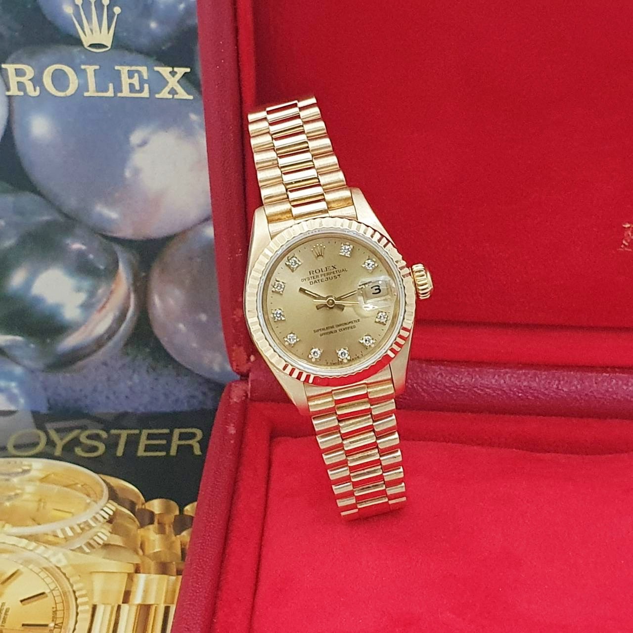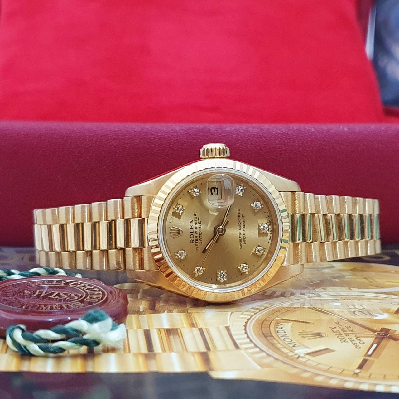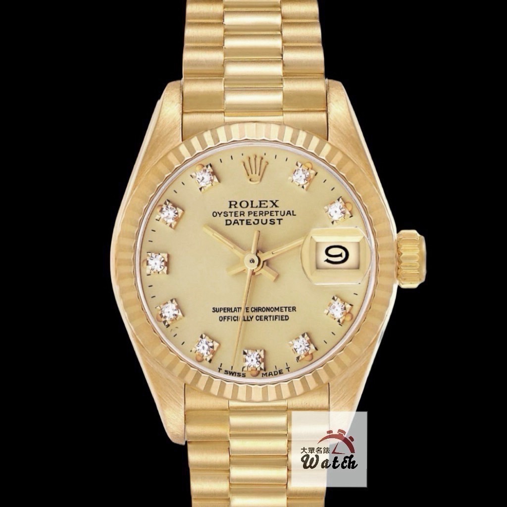 ROLEX 勞力士 69178 Datejust 蠔式女錶 18K金 金十鑽面盤 原帶 錶徑26mm 自動上鍊 18K金材質 防水100米 R字頭 缺證書 原廠盒裝 店保卡 保養完成 (已售出)