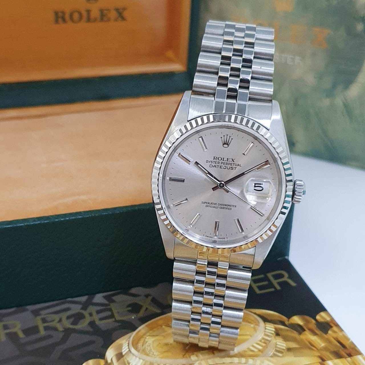 ROLEX 勞力士 16234 Datejust 經典不敗 太陽圈 銀色T柱面盤 錶徑36mm 自動上鍊 不鏽鋼材質 防水100米 E字頭 缺證書 原廠盒裝 保養完成