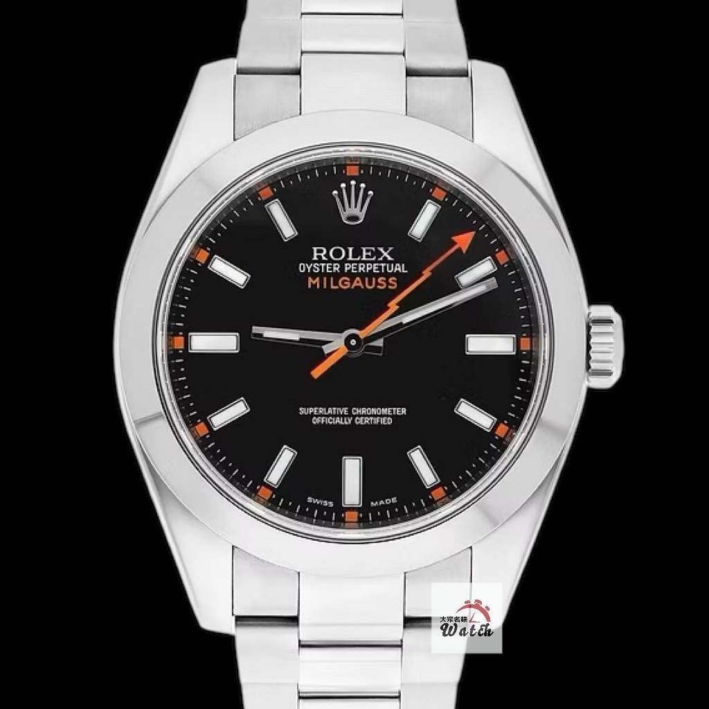 ROLEX 勞力士 116400 Milgauss 黑面 閃電橘針 抗磁 停產款 錶徑40mm 自動上鍊 不銹鋼材質 防水100米 2008年 缺證書 原廠盒裝 店保卡 保養完成