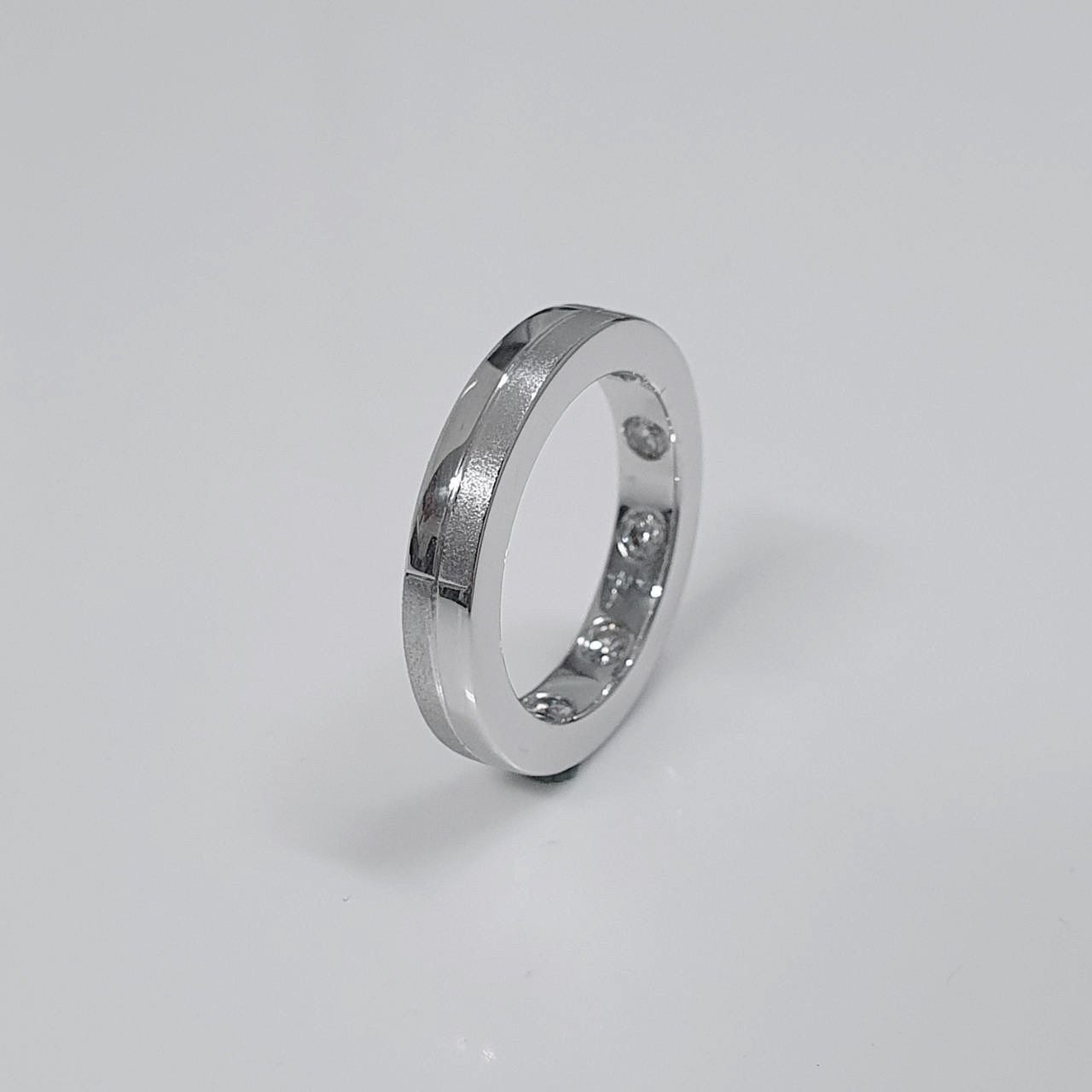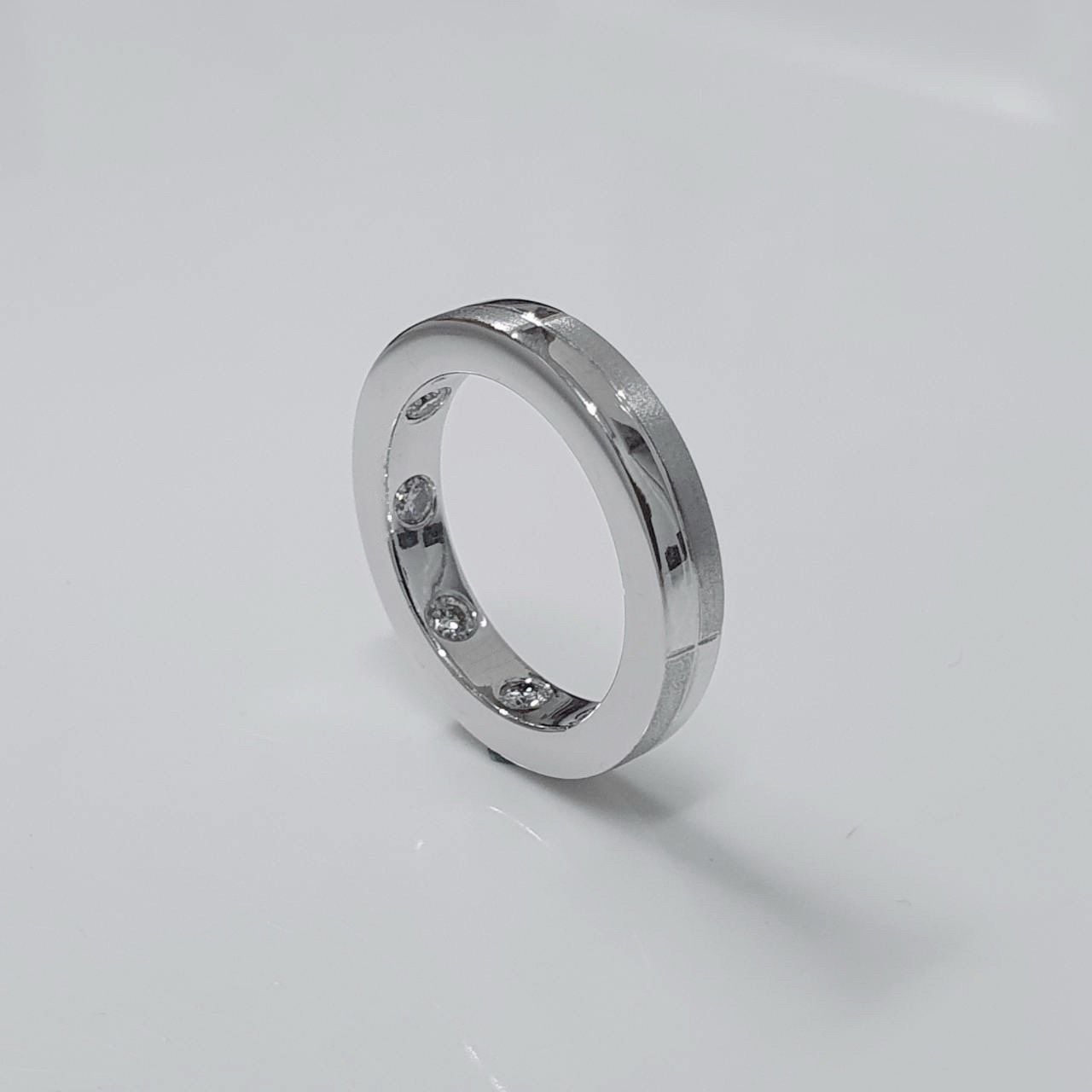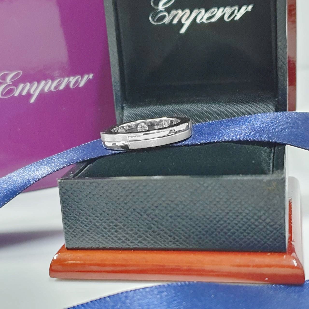 全新品天然鑽石線戒 低調藏鑽造型 鑽石9顆共約0.45克拉 每顆約5分 京華鑽石 18K金戒台 國際圍11號 面寬0.4cm 厚0.3cm 重2.56錢 精美盒裝 店保卡