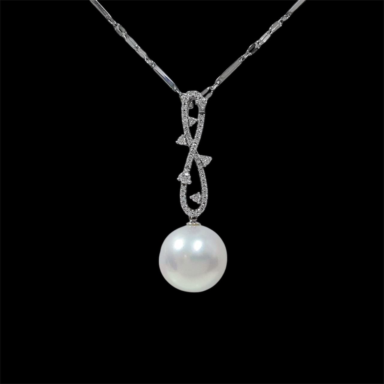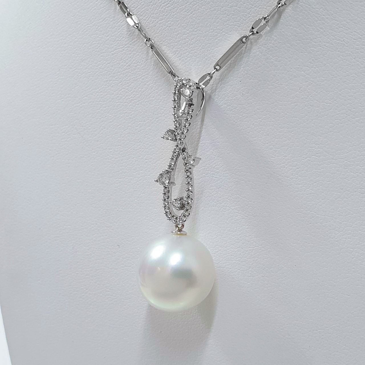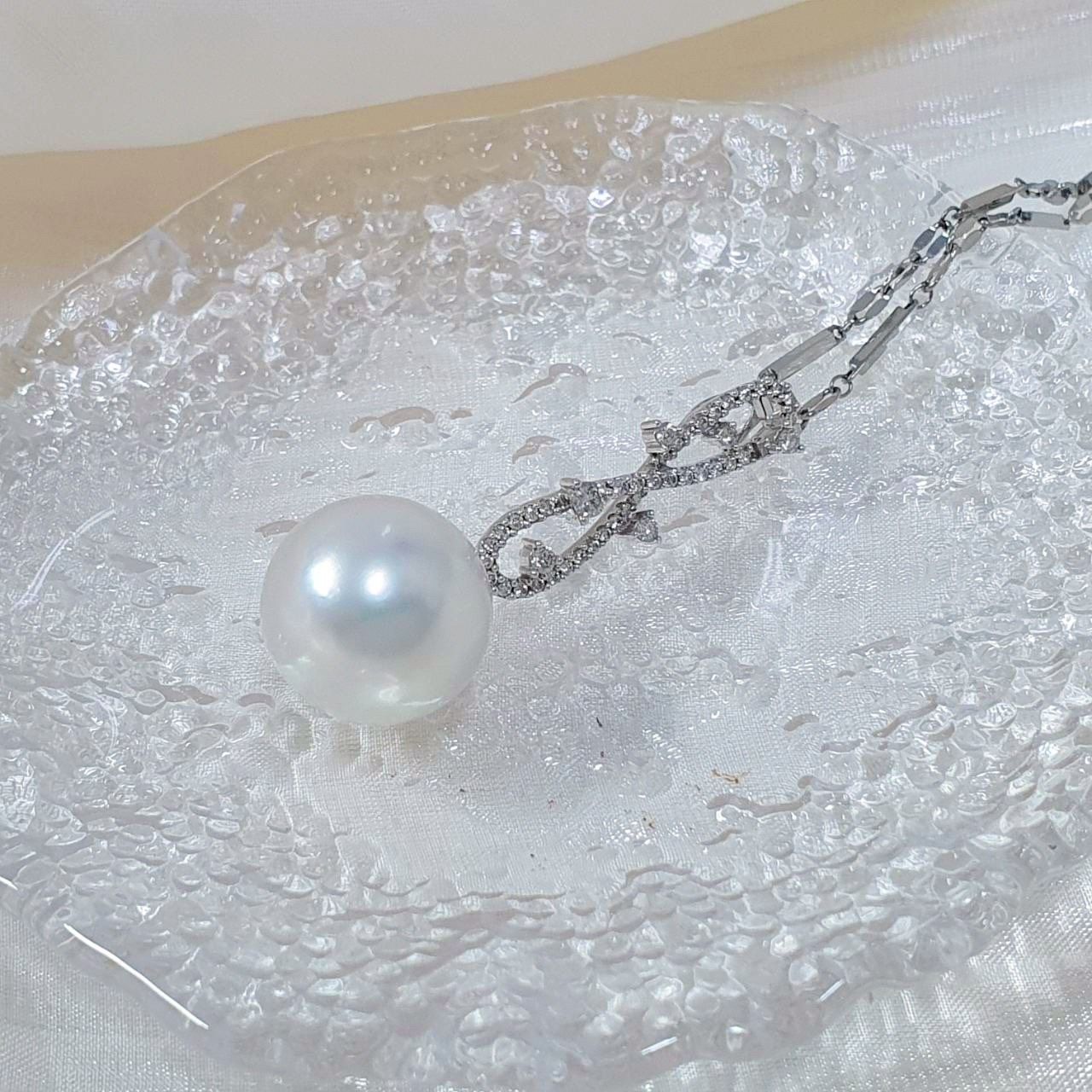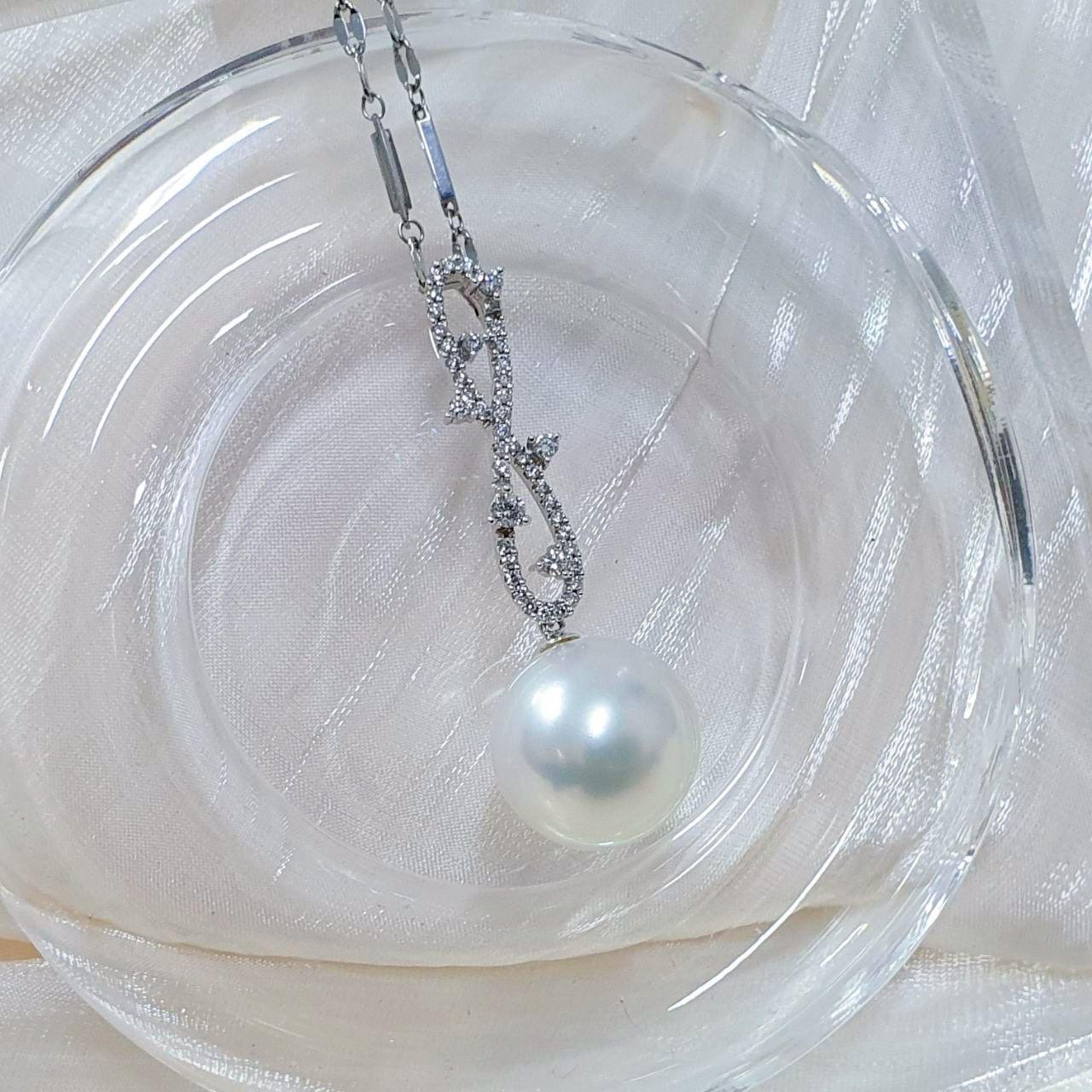 全新品 天然珍珠項鍊 珍珠15mm 偏粉色 配鑽約0.37ct 墜4.3x0.6cm 18K金墜台 墜重1.83錢 附不鏽鋼鍊 證書 精美盒裝