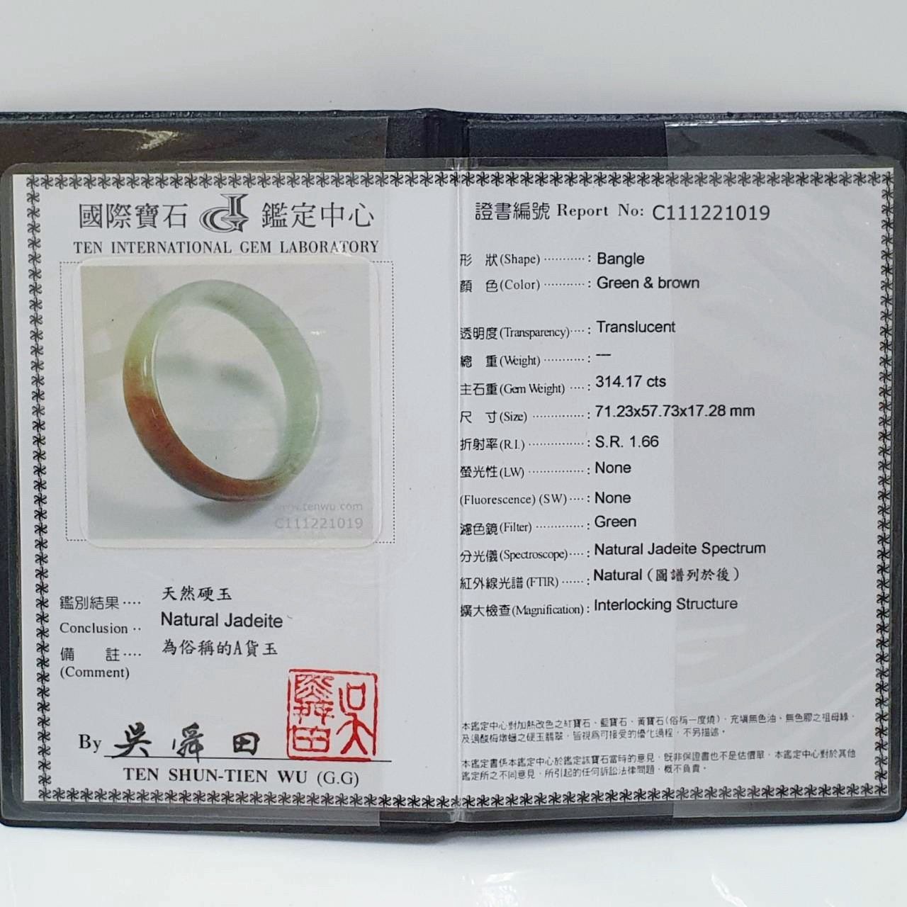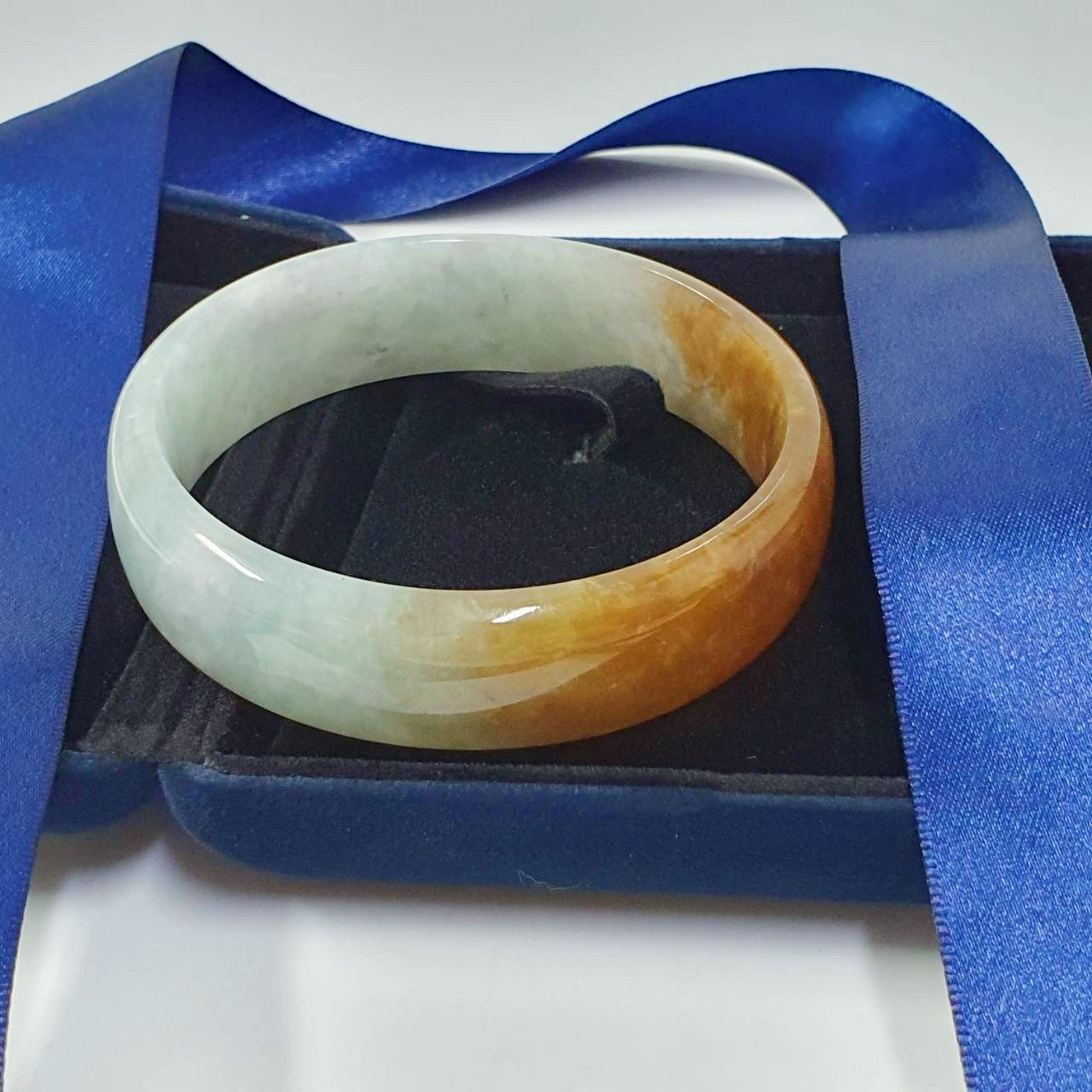 全新品 天然翡翠A貨 蜜糖黃玉鐲 7.1x5.7x1.7cm 手圍18.5號 附證書 精美盒裝