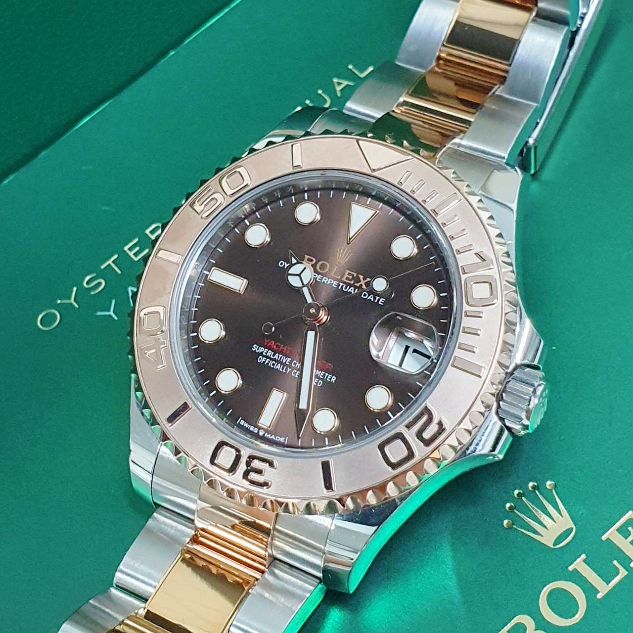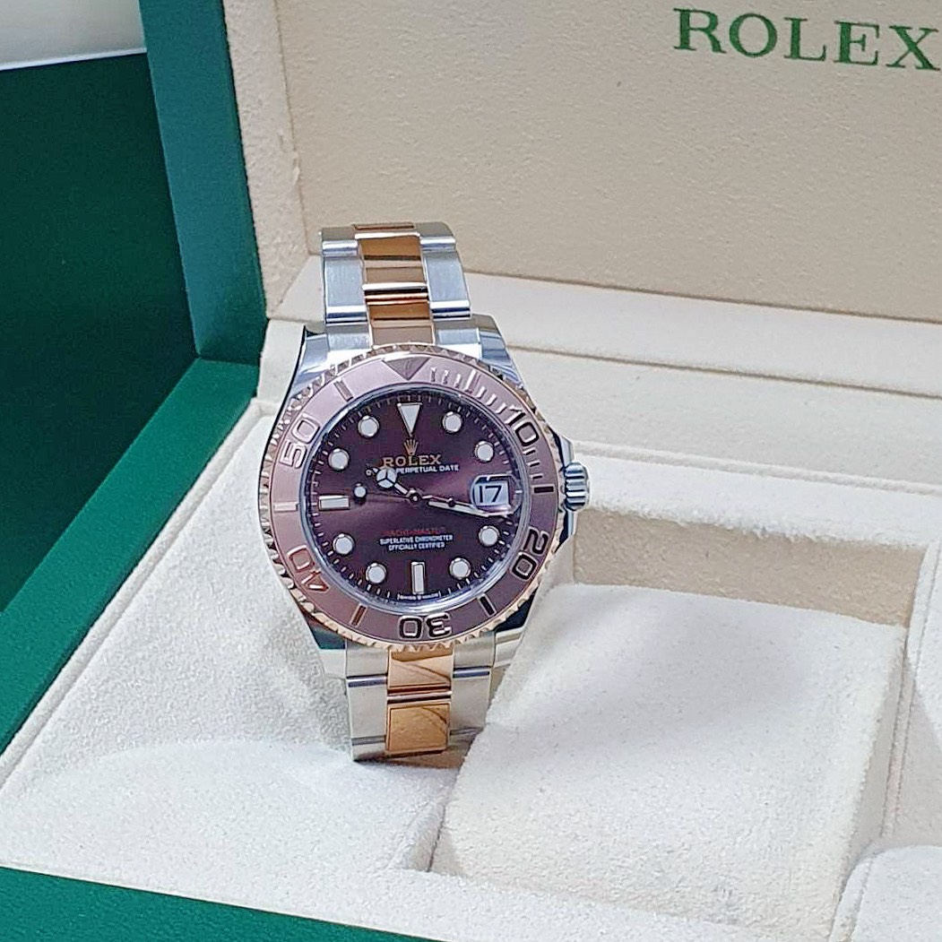 ROLEX 勞力士 268621 Yacht-Master 18K玫瑰半金 巧克力面盤 中型遊艇 部分已貼膜 錶徑37mm 自動上鍊 18K玫瑰金及不鏽鋼 防水100米 缺證書 原廠盒裝 店保卡 保養完成