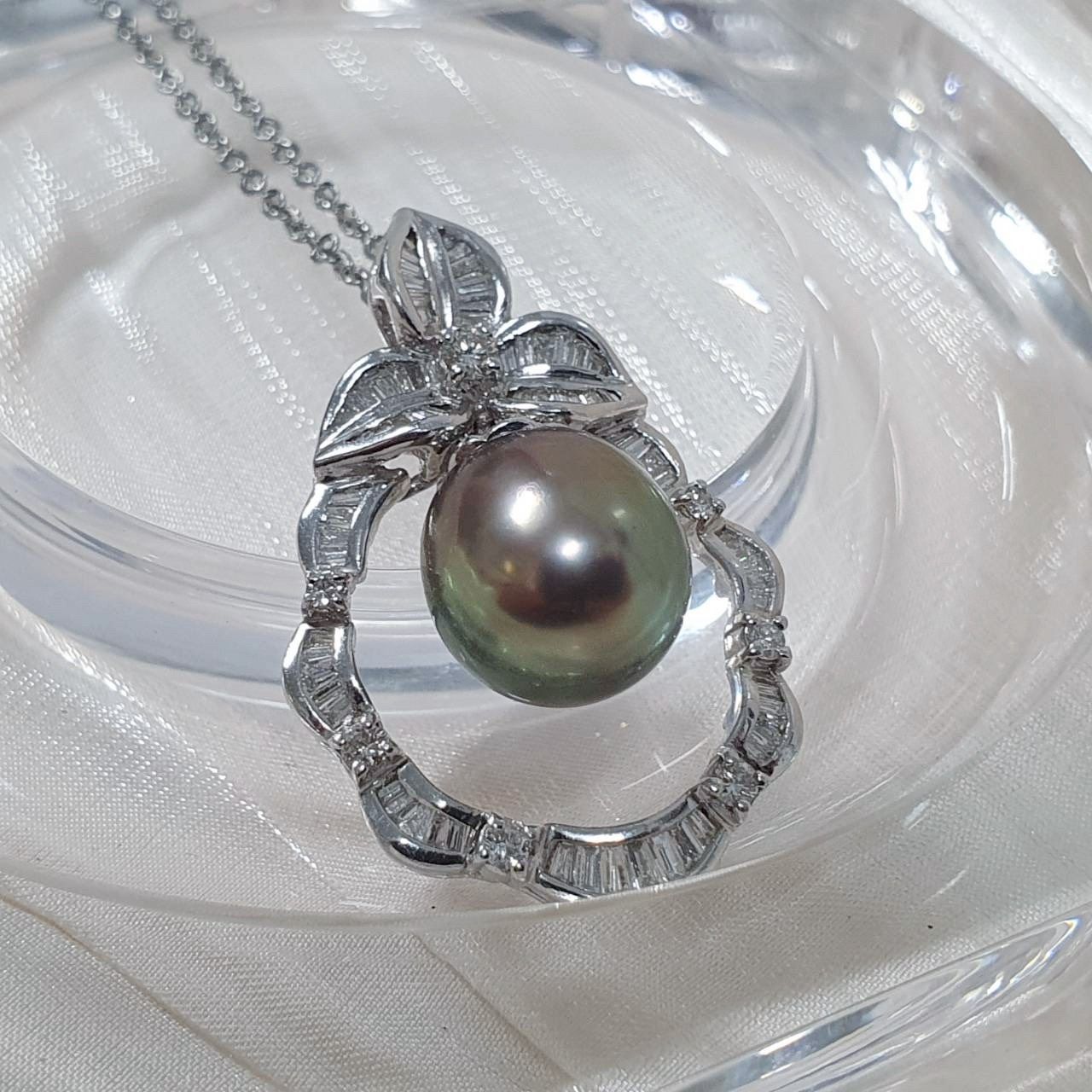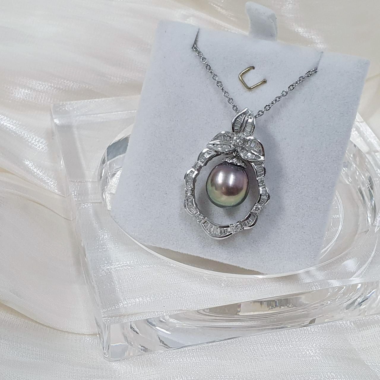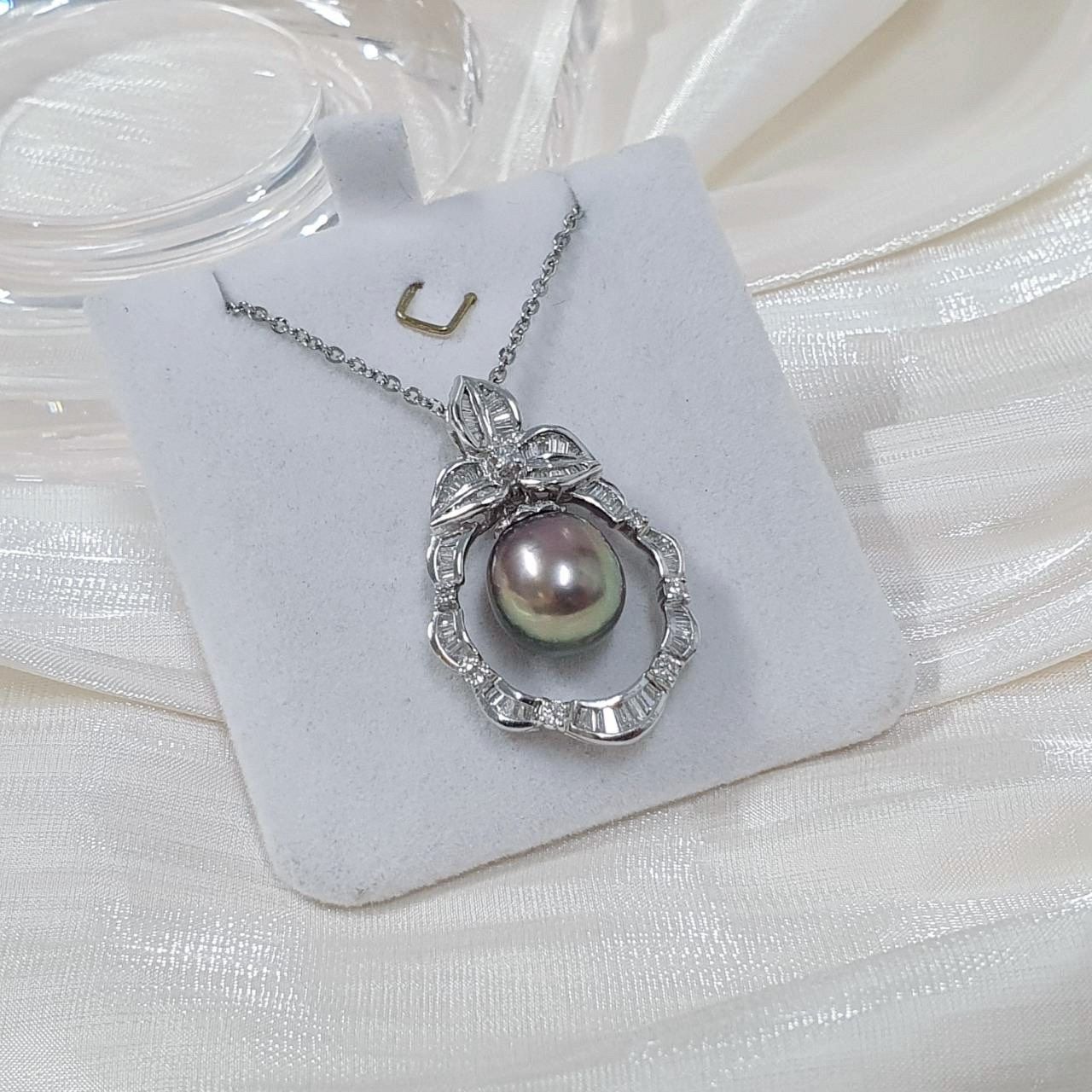 全新品 天然南洋珍珠墜 孔雀綠12mm 寬3.6x2.4cm 18K金墜台 墜重2.57錢 附不鏽鋼鍊 精美盒裝