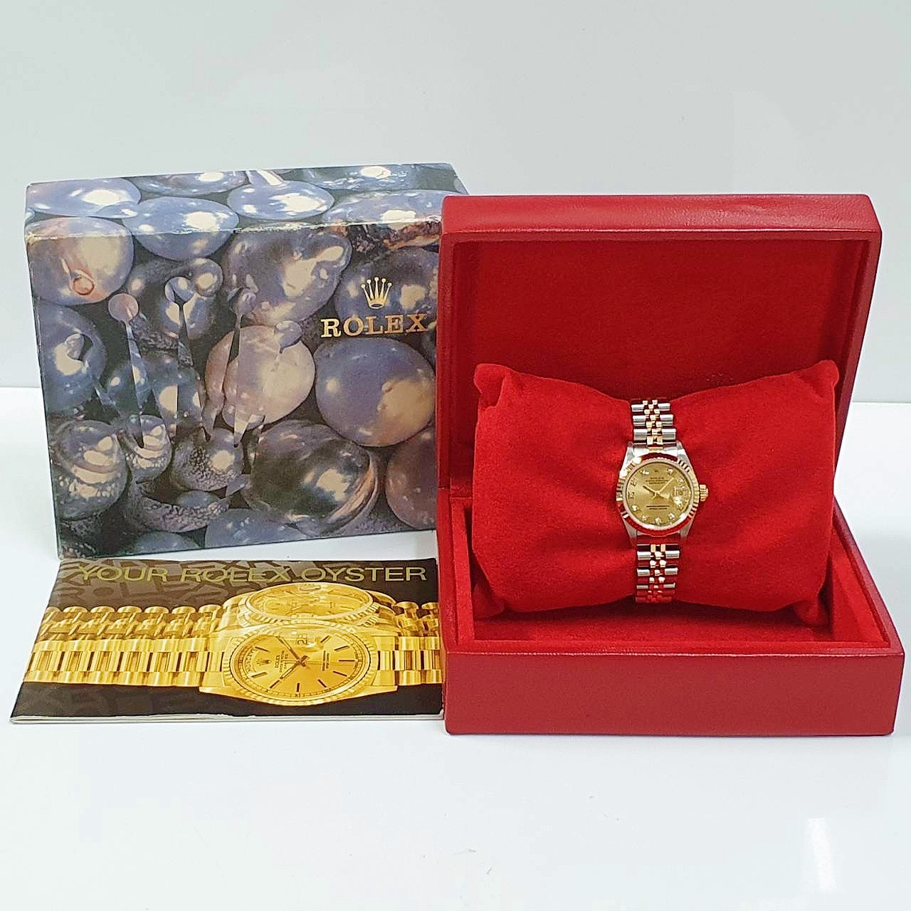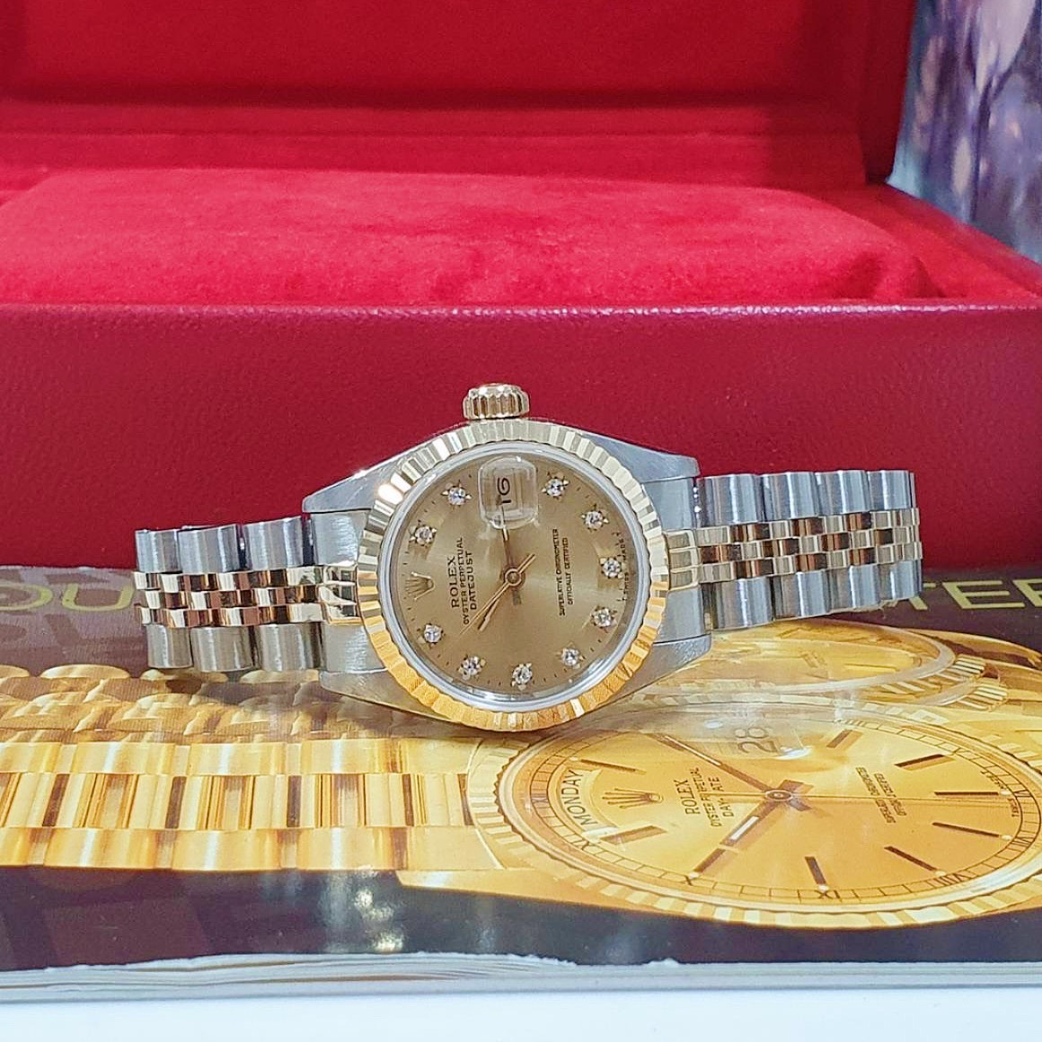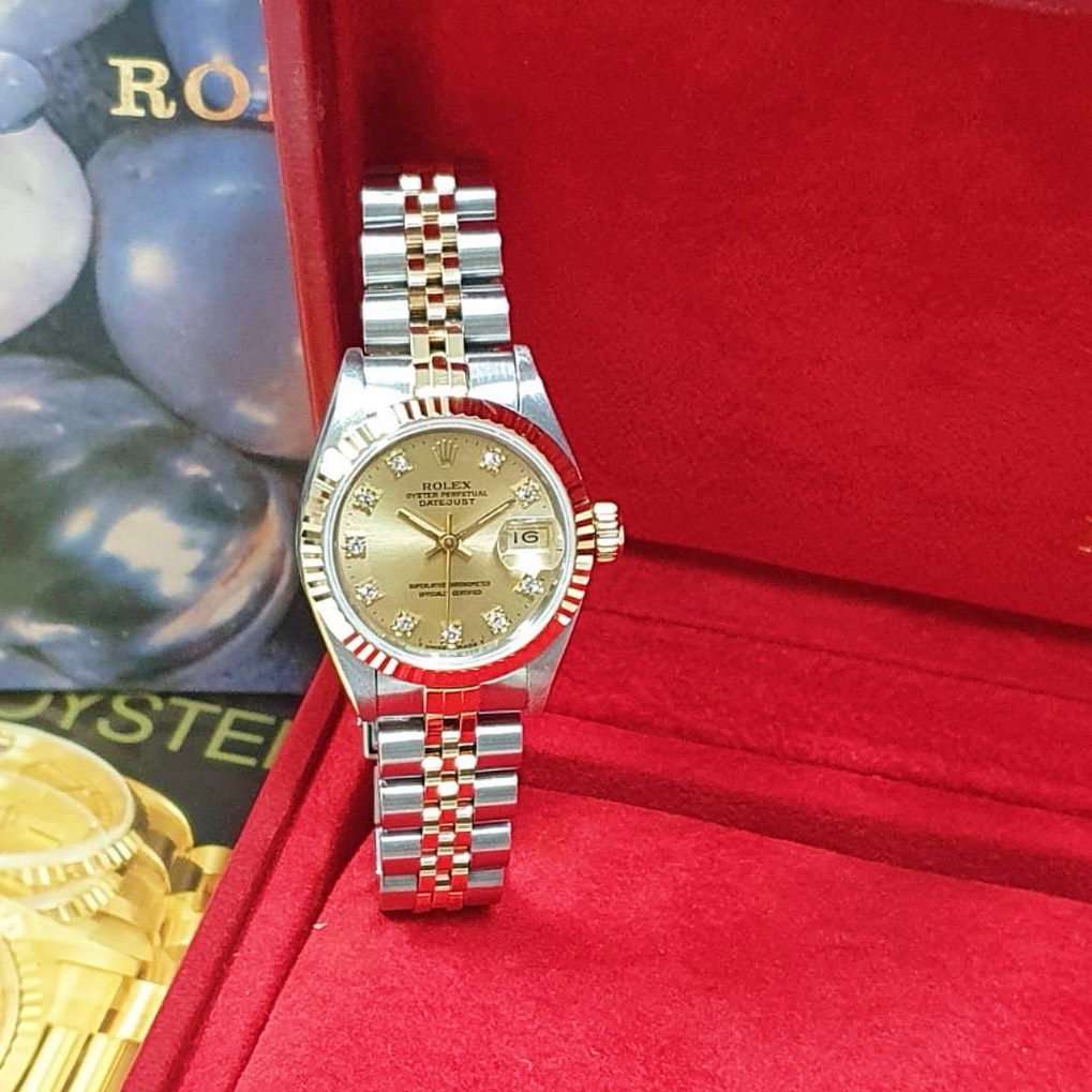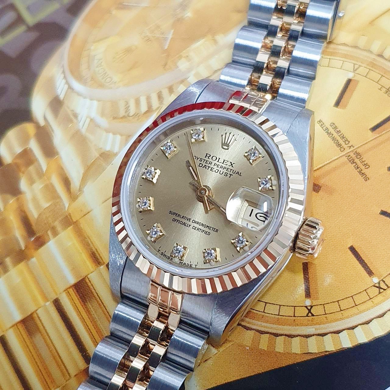 ROLEX 勞力士 69173 Datejust 半金女錶 金十鑽面盤 錶徑26mm 自動上鍊 18K金及不鏽鋼 防水100米 X字頭 缺證書 原廠盒裝 保養完成