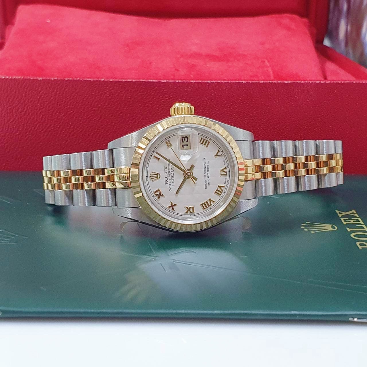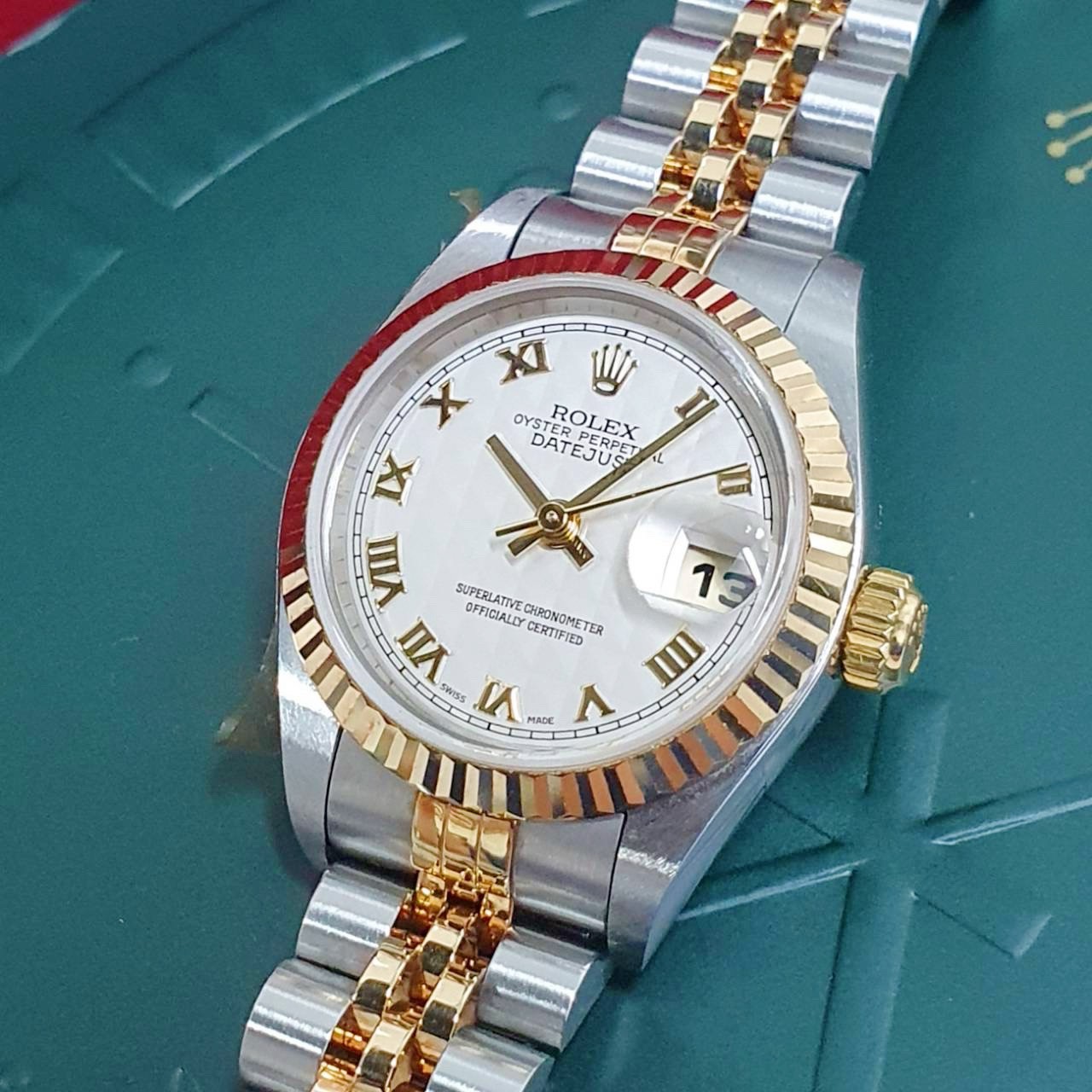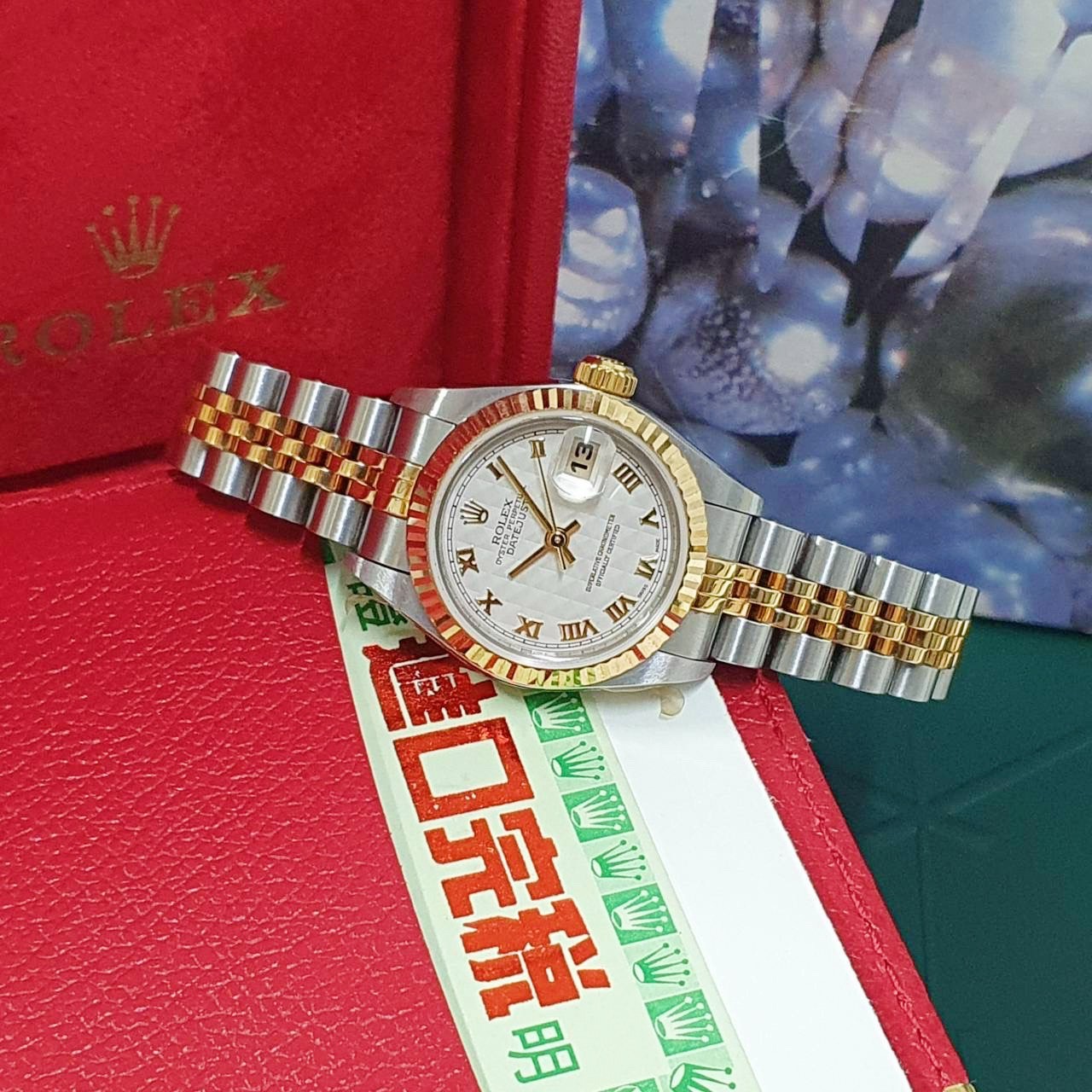 ROLEX 勞力士 79173 Datejust 蠔式日誌 女錶半金款 白菱格紋面 羅馬時標 2002/12全配件 台灣AD 錶頭原廠膠膜 錶帶原況未整理 原廠底蓋貼紙 錶徑26mm 自動上鍊 18K金及不銹鋼 防水100米 原廠全配件 保養完成