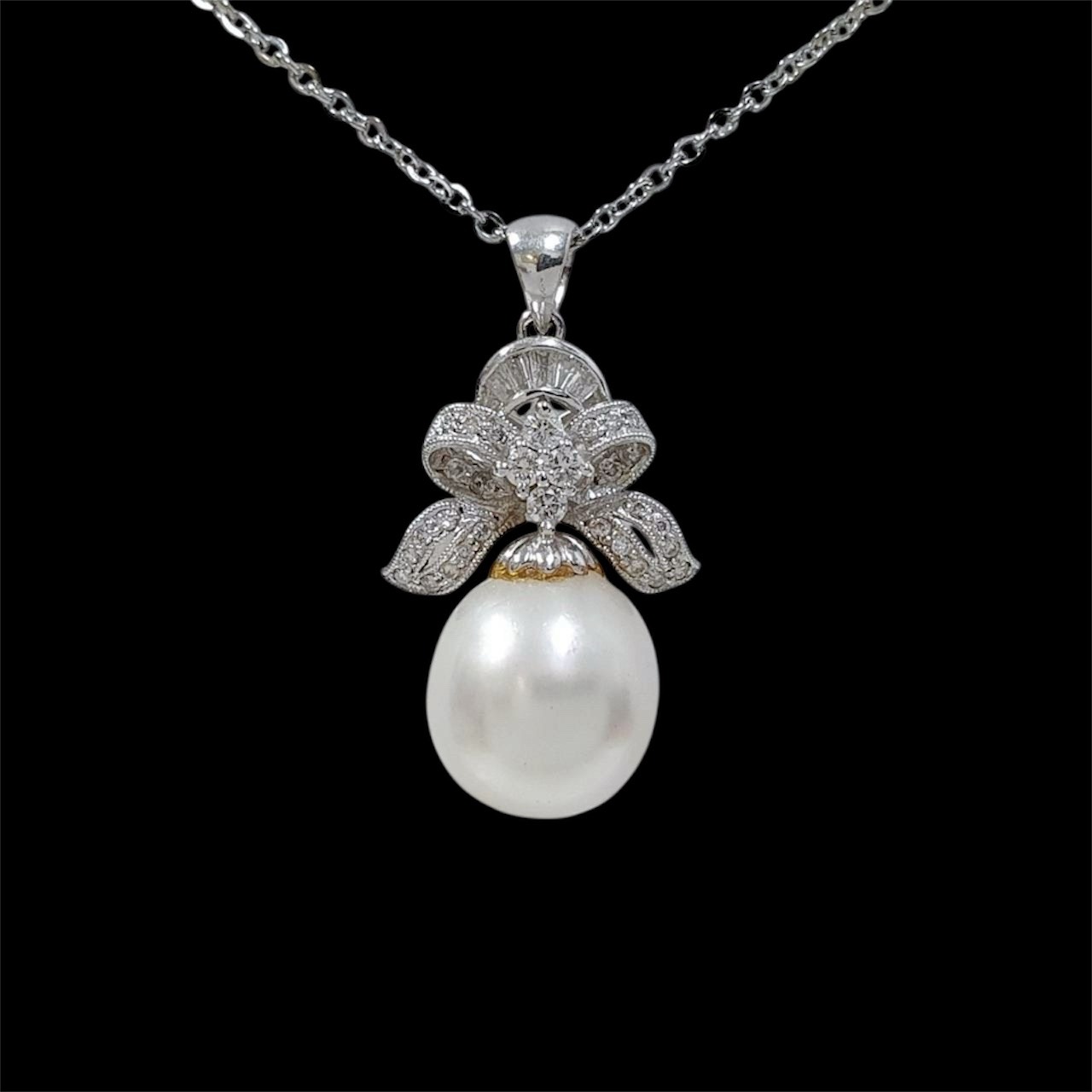 款式: 全新品 天然南洋珍珠墜 蝴蝶結造型
