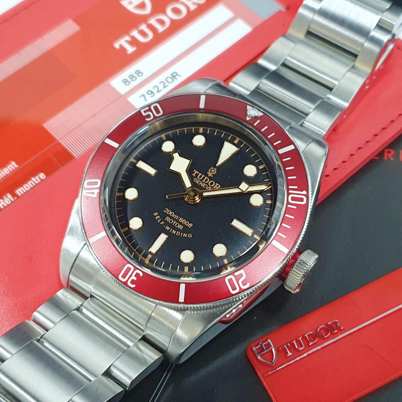 TUDOR帝舵 BLACK BAY系列 79220R 2014/04 黑面紅圈 玫瑰花logo 錶徑41mm 自動上鍊 不鏽鋼材質 防水200米 原廠盒單齊全 保養完成