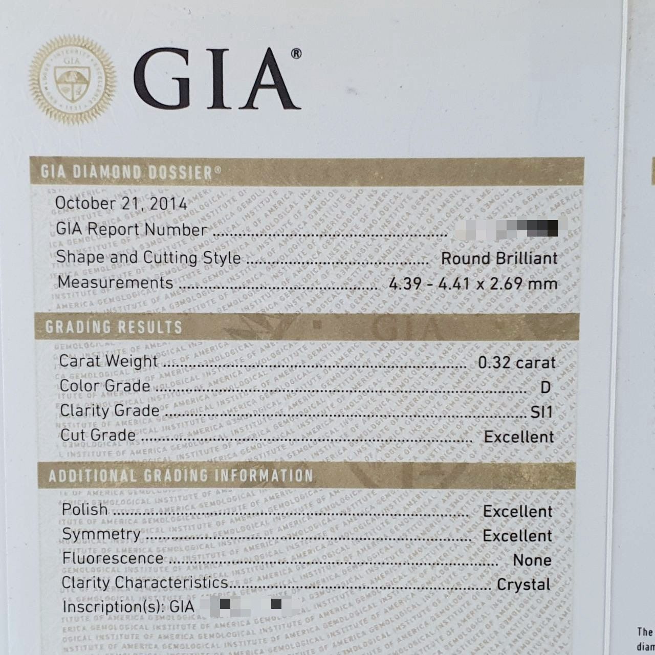 GIA鑽石戒指 主鑽0.32克拉 最高D色SI1 3EX完美車工 14K金戒台 國際圍12號 面寬0.65cm 重1.69錢 附GIA證書 精美盒裝