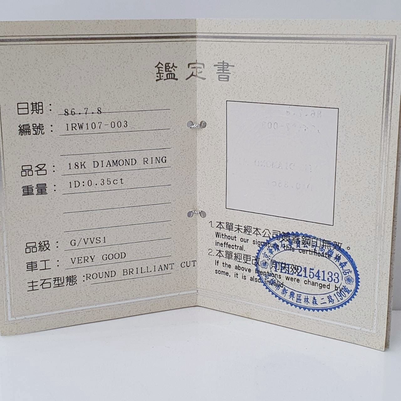 主鑽0.35克拉 G/VVS1 京華鑽石 |