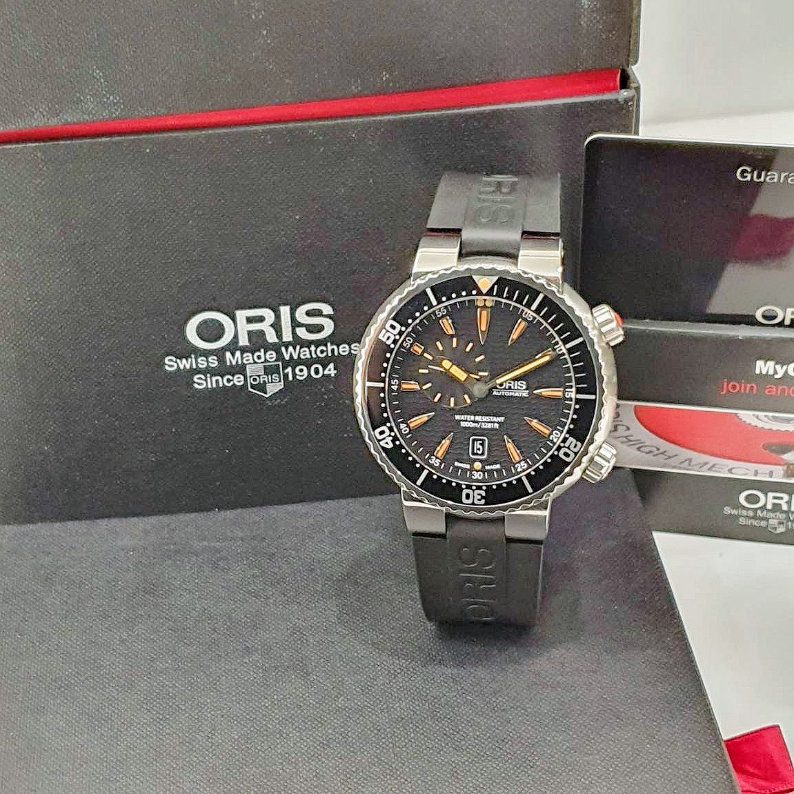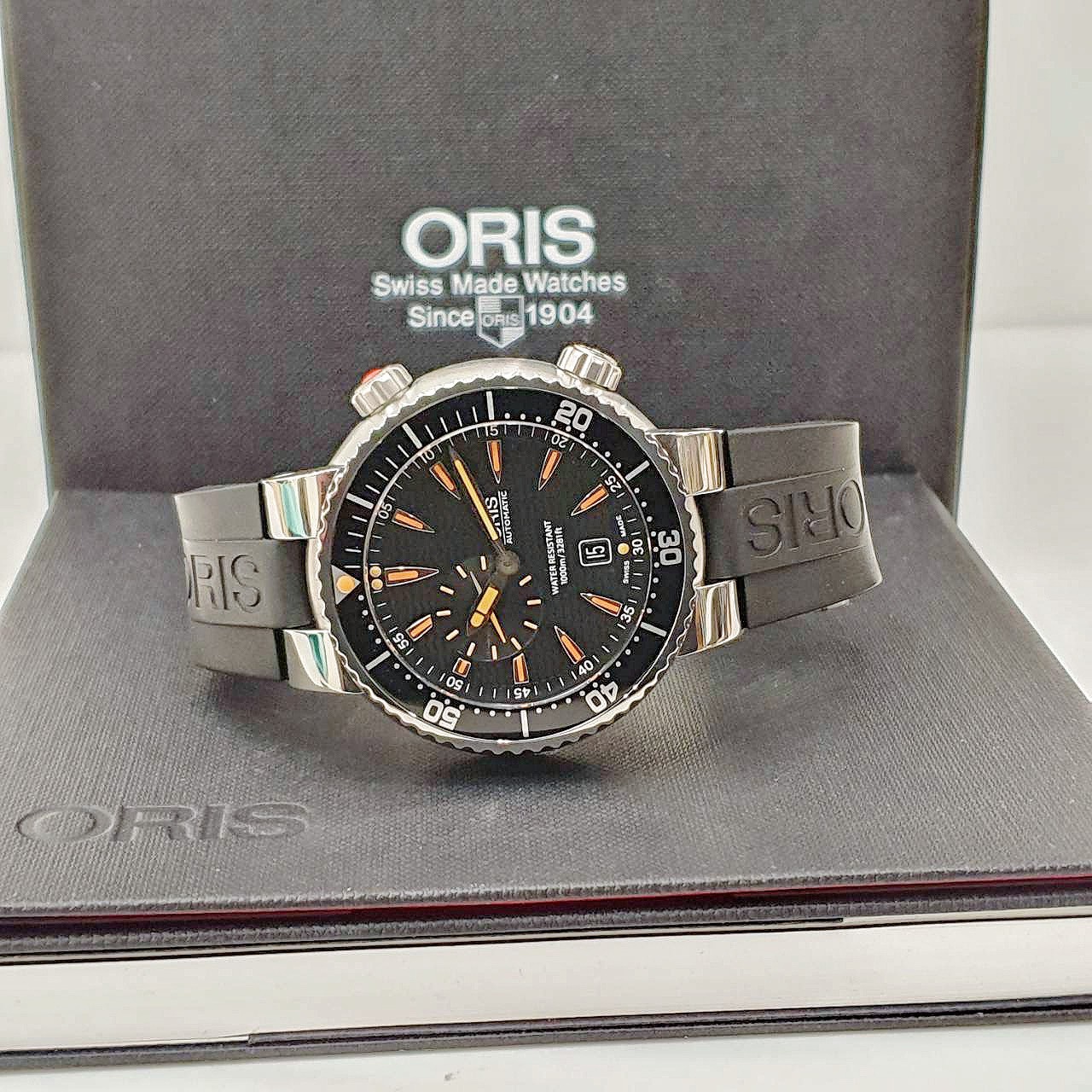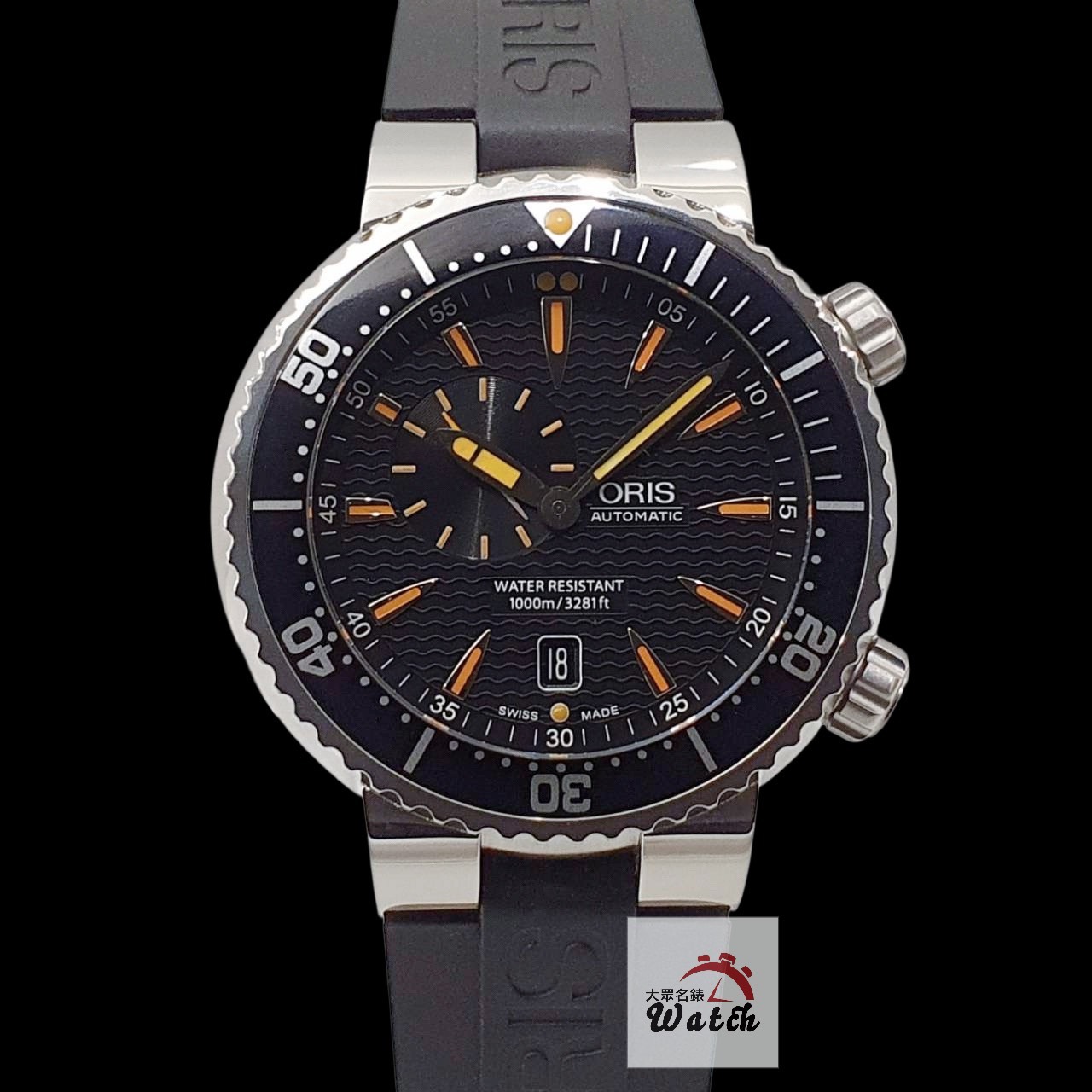 ORIS豪利時 0164376098454 Divers系列 黑面波浪紋 橘色時標 2011/01 潛水錶 小秒針 日期窗 原廠帶/錶扣 附原廠鋼帶 錶徑47mm 自動上鍊 不鏽鋼材質 防水1000米 原廠盒單齊全 保養完成